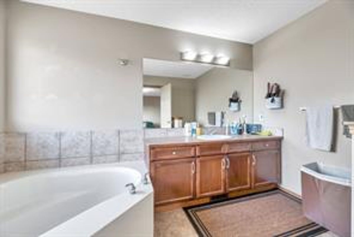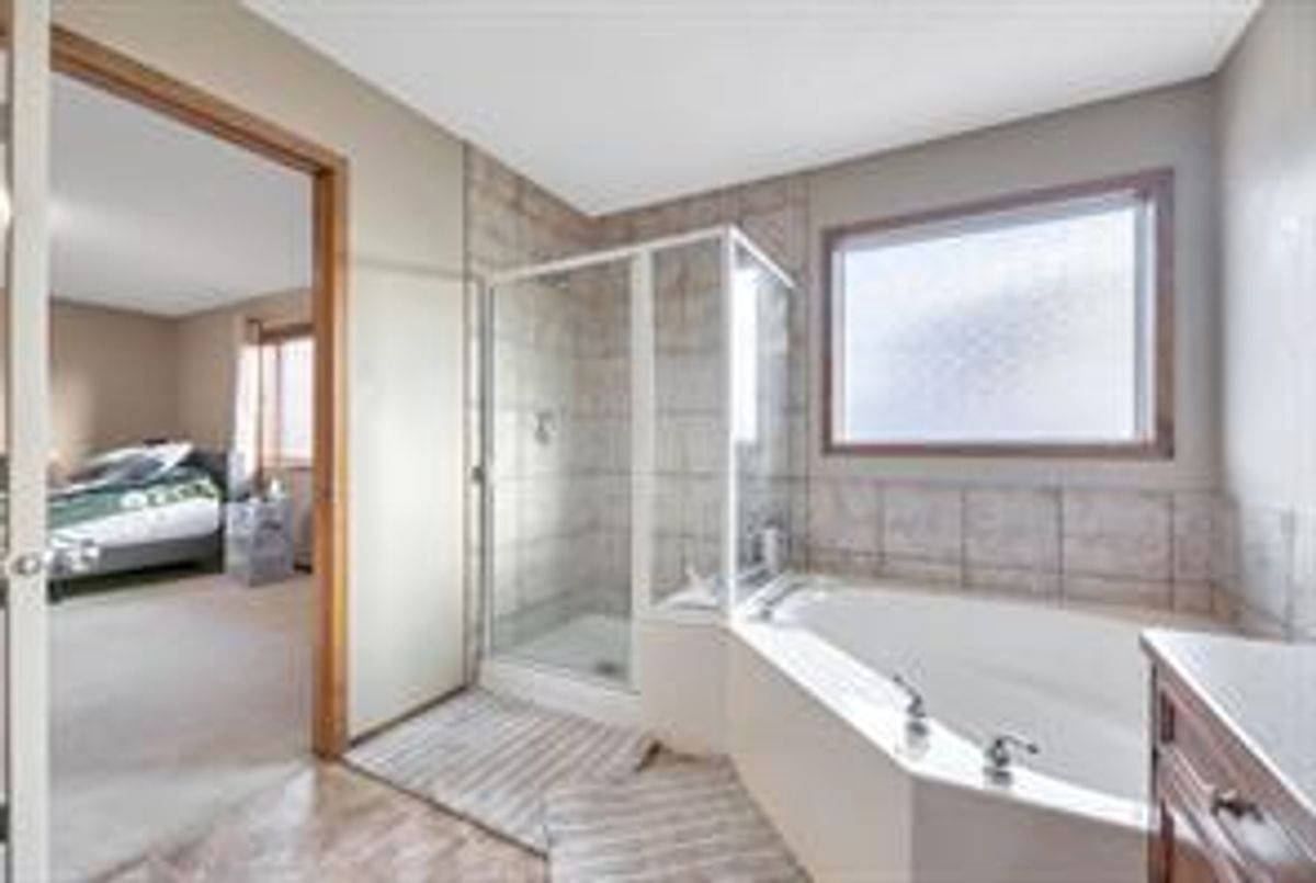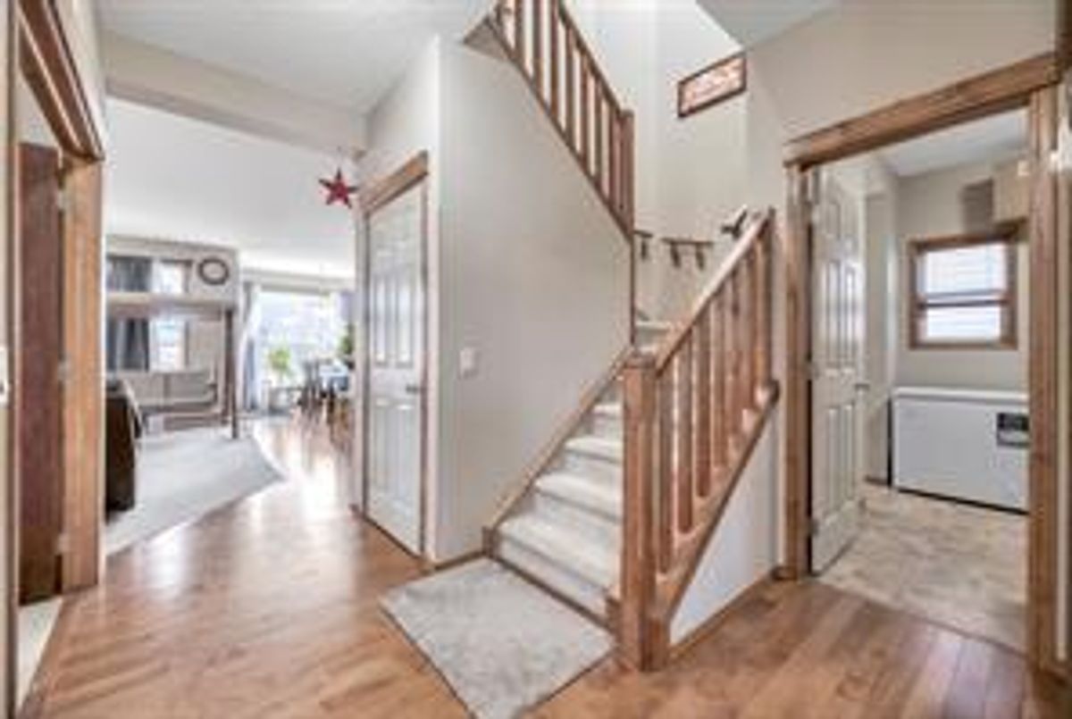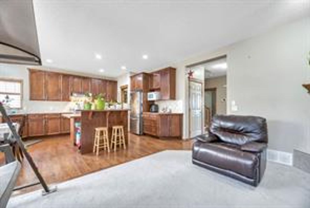 AMAZING PRICE for this spacious floorplan in this thoughtfully designed living space. This fully developed home offers just over 3200 sq. ft. of total living area, 5 bedrooms, and 3.5 bathrooms—ideal for growing families or those who love to entertain. Notable features include hardwood flooring, air conditioning, a cozy gas fireplace, and a vaulted bonus room that adds both space and architectural interest. Recent updates include new Class 4 shingles, gutters as well as partial siding completed in 2025. The main floor is functional and inviting, featuring a roomy foyer, a front home office/den, 2-piece powder room, main-floor laundry at the back entrance, and a spacious living room centered around the gas fireplace. The kitchen is well-appointed with an endless amount of cabinetry and counter space, central island, walk-through pantry, and a bright nook with access to the deck and backyard—perfect for everyday living and entertaining. Upstairs, you’ll find three generously sized bedrooms, a 4-piece bathroom, and a vaulted bonus room ideal for family movie nights or a kids’ retreat. The double door entry primary bedroom is complete with a walk-in closet and a full ensuite with corner soaking tub, glass enclosed shower and a sizable vanity. The fully developed lower level adds excellent flexibility with two additional bedrooms, a 3-piece bathroom, a comfortable family room, plus a lot more available storage. The front and back yard have great spaces for gardening and the front attached garage plus longer driveway has window for natural light as well as extra storage racks. Ideally located close to schools, parks, green spaces, shopping, transit, community centres, the library, theatres, and Vivo Place, this home offers exceptional convenience and lifestyle appeal.