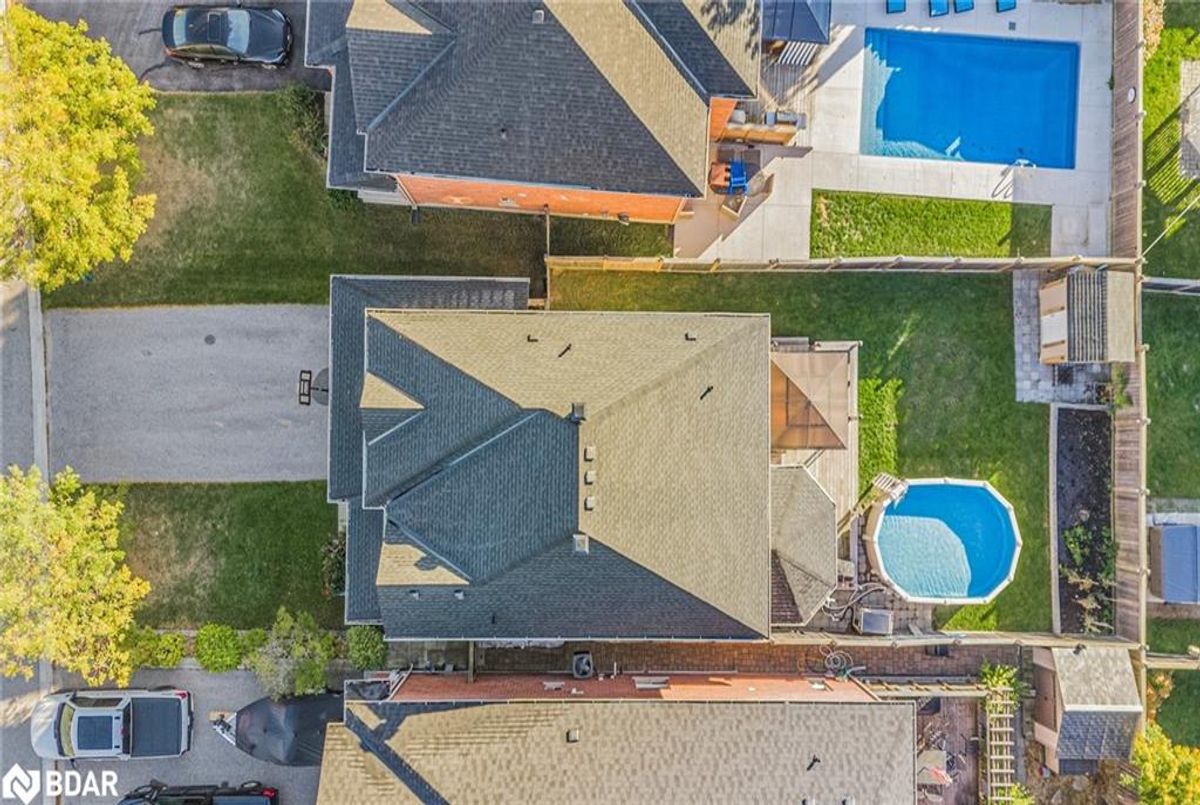 Welcome to this spacious and fully finished 2-storey home in the highly sought-after InnisShore neighbourhood of South East Barrie.Tucked away on a quiet, family-friendly street, this property offers great curb appeal with a charming covered front porch - the perfect spot for morning coffee. Inside, the main floor boasts a bright open-concept layout with 9 ft ceilings, a spacious eat-in kitchen, inviting living areas, a formal dining room, and convenient main-floor laundry with inside access to the 2-car garage. A bathroom on every level adds to the home’s practicality. Upstairs, you’ll find 4 generously sized bedrooms, including a primary suite with a walk-in closet and a large ensuite, with 4 bathrooms in total, this home is designed for busy families. The fully finished lower level provides even more living space with a large family room, dedicated office area, and home gym setup - ideal for work, play, and wellness all under one roof. Step outside to a fully fenced, private backyard featuring an above-ground pool for summer fun, a garden shed for extra storage, and plenty of room for entertaining. The wide 4-car driveway (no sidewalk!) plus garage ensures ample parking for guests or multi-vehicle households. Well loved and maintained and move-in ready, this home truly has it all - space, style, and location. Close to top-rated schools, parks, the GO Station, shopping, and Lake Simcoe, highway 400 - it’s both a commuter’s dream and a family’s paradise.