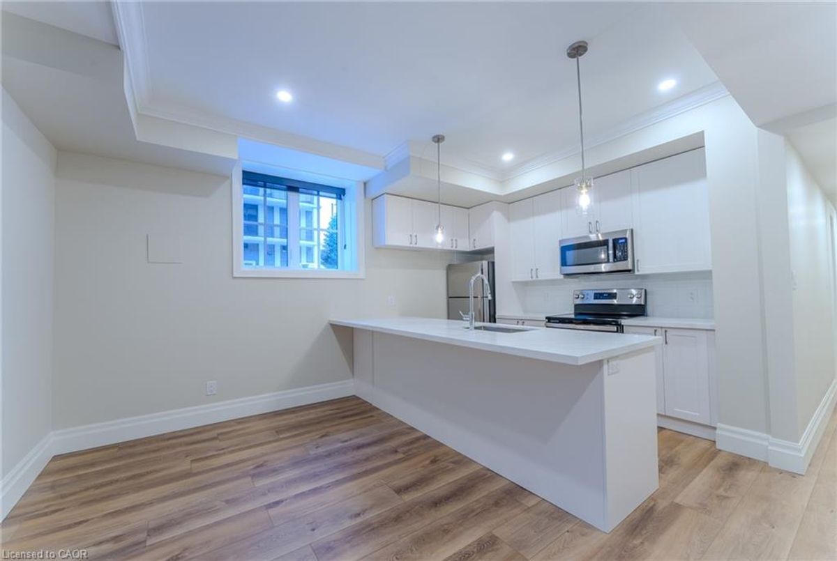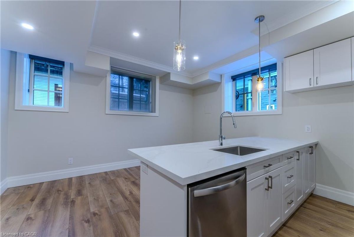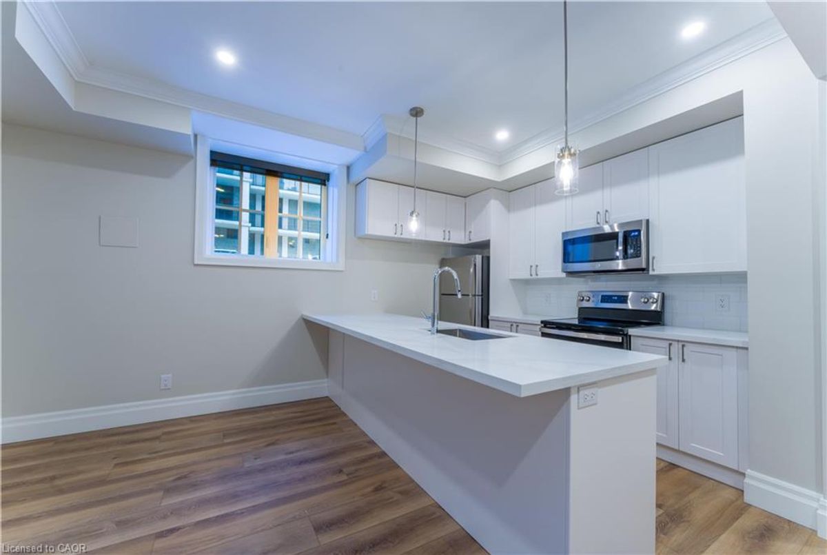 Thoroughly renovated one bedroom apartment in Hamilton's one and only Durand Neighborhood! Enjoy a wealth of amazing local cafés, restaurants, boutiques, and grocery options - all within walking distance! This well appointed apartment is equipped with high end finishings throughout. From the luxurious plank flooring to the brand-new stylish light fixtures, you can confidently call 100 Charlton Avenue West home. The kitchen features expansive quartz countertops, a sleek backsplash, a breakfast bar for seating, and full size stainless steel appliances including a dishwasher. The well-lit bedroom comes with window coverings pre-installed for your convenience. Enjoy the convenience of in-suite laundry, and the comfort of year-round temperature control. Tenant to pay heat & hydro.