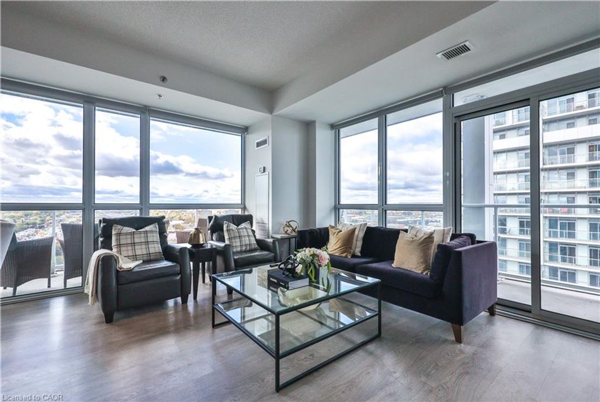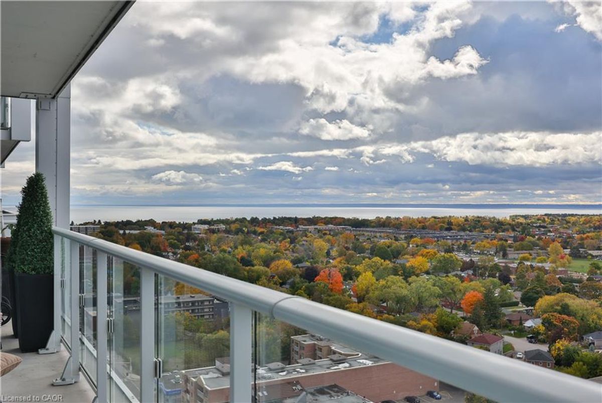 Spectacular 1,305 sqft+ Corner Condo with Two Balconies & Premium Upgrades -Experience the very best of luxury condo living in this spectacular and spacious 2-bedroom, 2-bathroom corner suite-a rare gem located in one of Oakville's most desirable communities.This beautifully maintained residence offers the perfect blend of style, comfort, and convenience, featuring a storage locker and two premium parking spaces located just steps from your entry door.Step outside and enjoy the outdoors from your expansive wrap-around balcony, ideal for entertaining or relaxing, or retreat to your private balcony off the primary bedroom-the perfect spot for morning coffee or peaceful evening sunsets. This corner suite faces west with a southern view of Lake Ontario, filling the space with natural light and scenic beauty.Inside, you'll find 9-foot ceilings, floor-to-ceiling windows, upgraded flooring thought out. An open, airy layout that's both elegant and functional. The modern kitchen features dark cabinetry with custom pullouts, dual garbage bins, a spice drawer, pot drawers, and upgraded stainless steel Whirlpool and Bosch appliances. Granite countertops and a glass tile backsplash add the perfect finishing touch.The primary bedroom suite includes two closets-one a walk-in with built-in organizers, and the other with an upgraded mirrored door-plus a luxurious ensuite with contemporary grey tiles and sleek white finishes. The guest bedroom offers a large walk-in closet, and the in-suite laundry features an upgraded washer and dryer for everyday convenience.Additional highlights include modern roll-down blinds, custom floor-to-ceiling blackout drapery, and upgraded light fixtures and chandelier, all enhancing the home's refined, contemporary appeal.Residents enjoy resort style amenities includingIndoor pool, hot tub, cold plunge pool, and sauna, Fully equipped fitness centre with yoga and Pilates room, Rooftop patio with BBQs, fireplace, outdoor TV, and lounge seating.