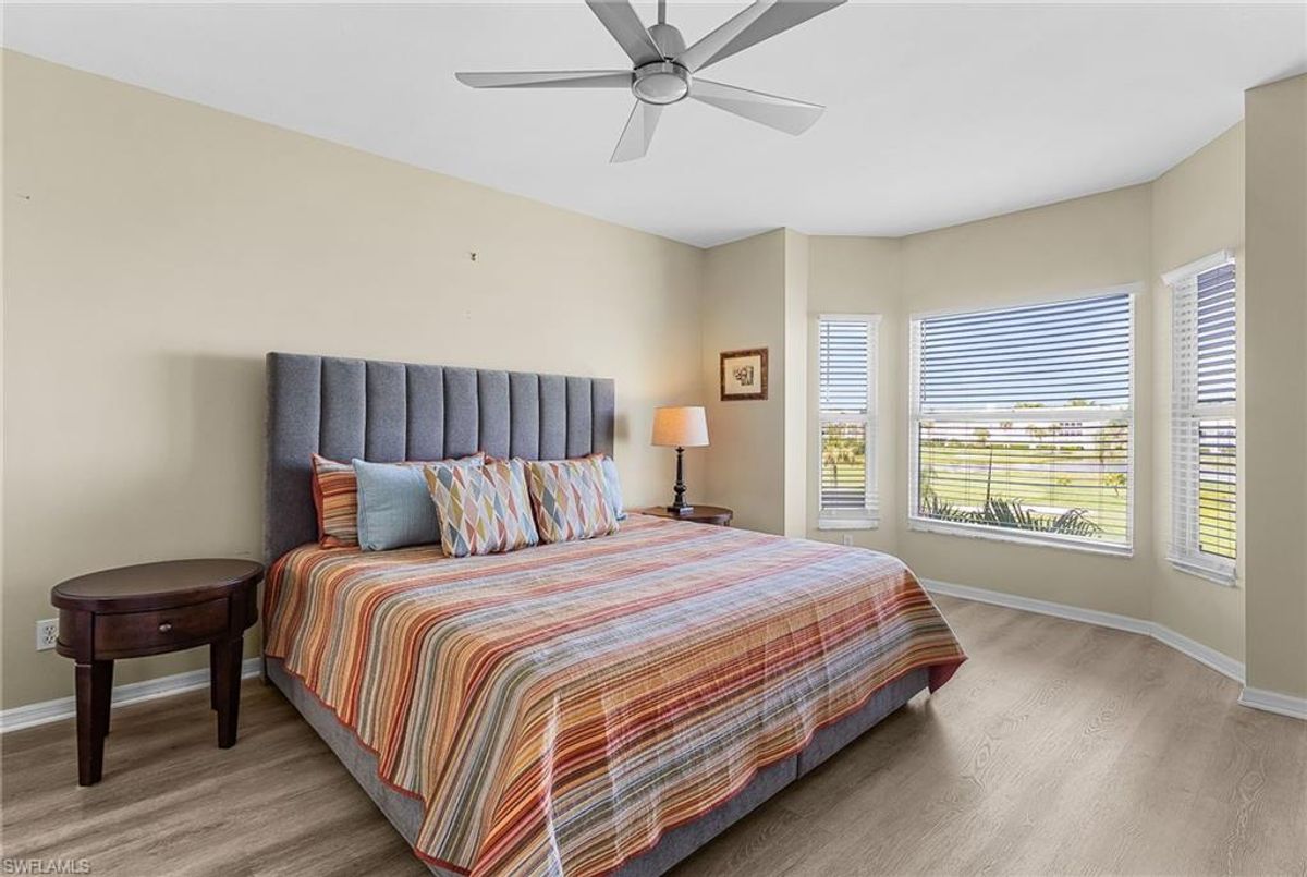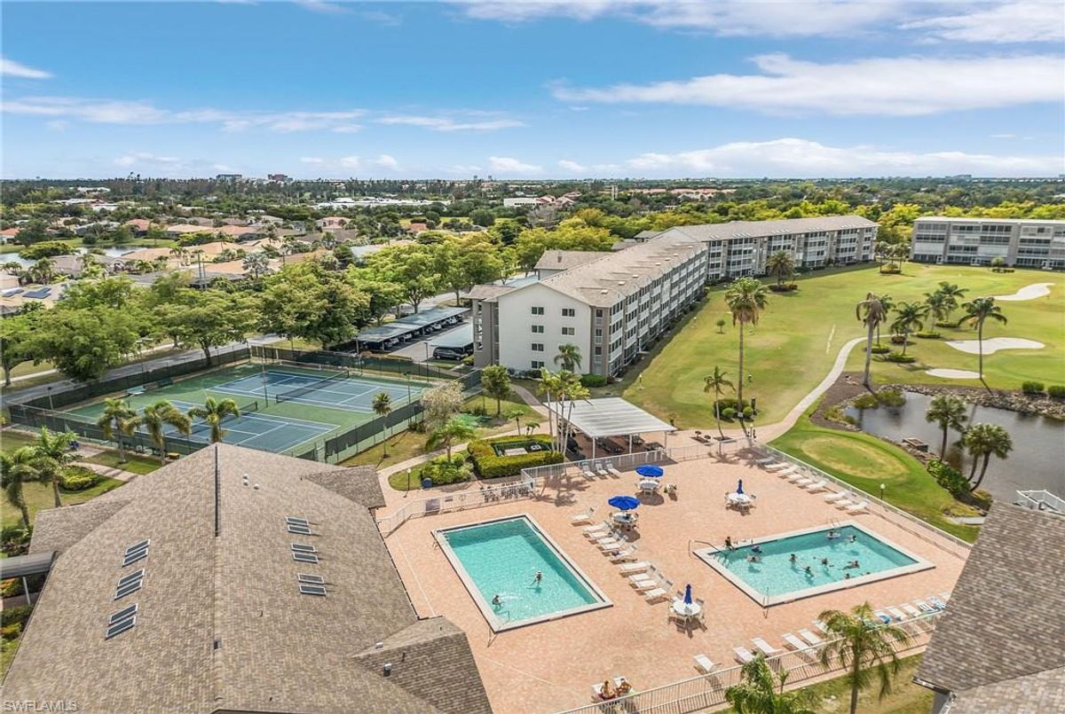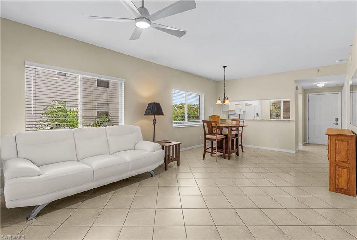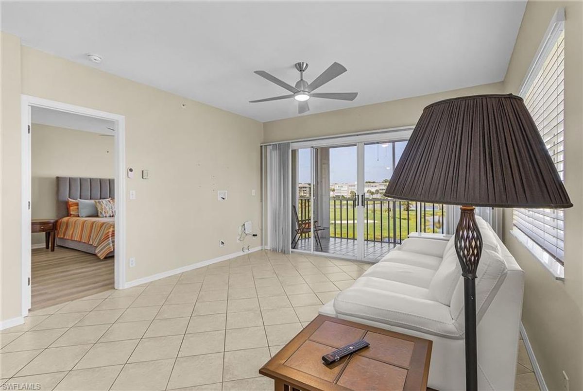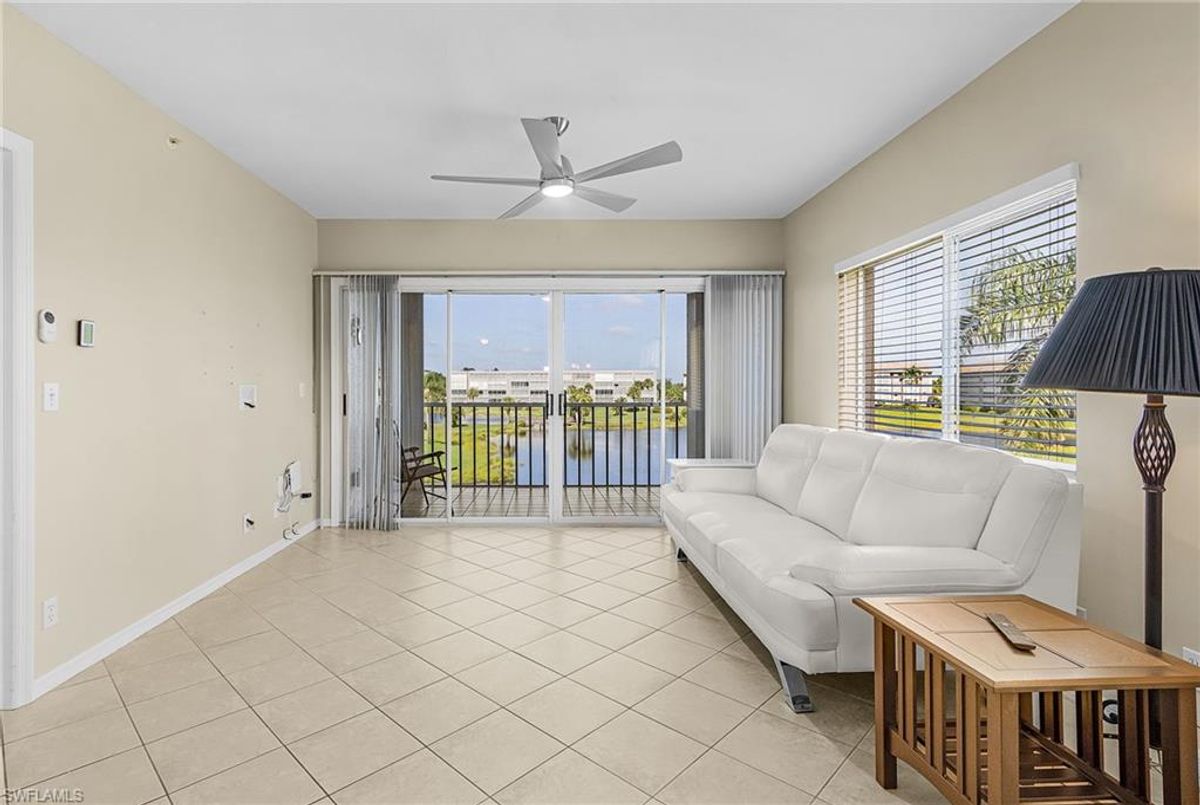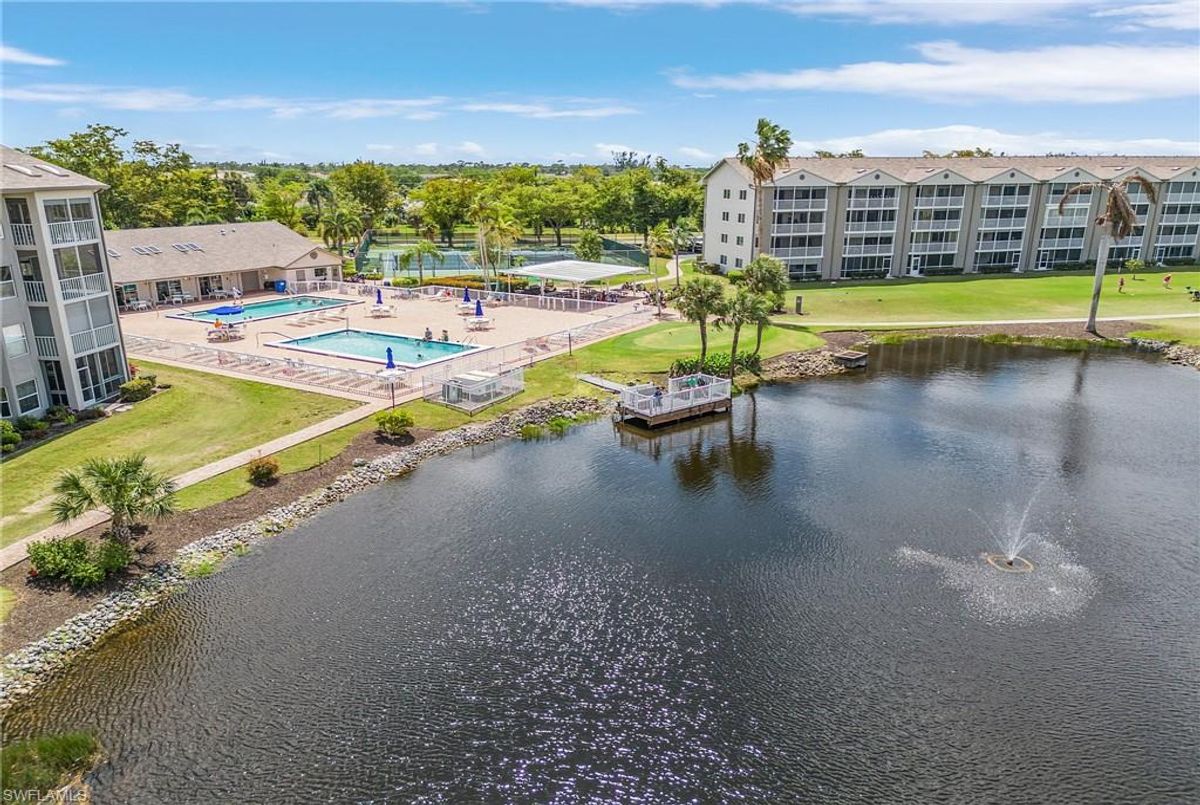 Seller said, "REDUCE THE PRICE AGAIN!" Same great property but now with a $30,000 total price reduction! Welcome to 'Muirfield @ Golfview'! 2BR 2BA END/CORNER unit overlooks a lovely pond w/water feature. The entire course can be seen from the private lanai that is protected by new remote controlled Hurricane Shades. Lovely diagonal tile and LVT adorn the floors throughout. The bigger ticket items have already been done! The extra windows allow natural light and beautiful views to pour in and enhance the livability of this condo. The kitchen boasts granite countertops which complement the wood trim beautifully, recessed lighting and NO DOME. Newer white appliances. Master Bathroom has a new vanity & top, comfort height toilet (in guest bathroom, too). New Water Heater was installed in June of 2025. Property is partially furnished and appointed - notice the newer leather sofa in the family room? Colorful and fantastic sunsets can be the highlight of every evening as the property is situated with a western exposure. Reasonable HOA fees include all the golf you want to play on the fun but challenging par 3 / 9 hole course. No extra green or tee fees are required. New parking structures and parking lot 2024. Muirfield neighbors have a delightful gathering spot featuring brick pavers, a gas grill, a fire feature, and gorgeous views of the golf course. Near the clubhouse there is a covered dining pavilion, a putting green and driving cage. Tournaments and community events abound during "Season". Lighted tennis & pickleball courts are newly resurfaced. The community has 3 pools. Bocce and shuffleboard are also on-site. Golfview is located less than a mile from Lakes Park. BBMann PAH, Suncoast CU Arena are on the nearby FSW campus. It is just off both main thoroughfares to Fort Myers, Sanibel, and Captiva beaches! World-class shopping, dining, and entertainment are nearby. RSW is a short 20 -25 minute drive. PGD is about 45 minutes away. The enchanting river district, Cape Coral, houses of worship, library, rec and fitness centers, and health care facilities are also nearby. Property is priced BELOW what current owner paid in 2022. Milestone Inspection & SIRS report are in supplements. This is NOT a 55+ community.