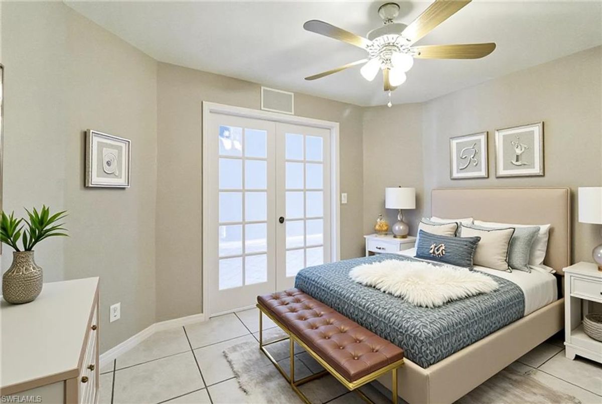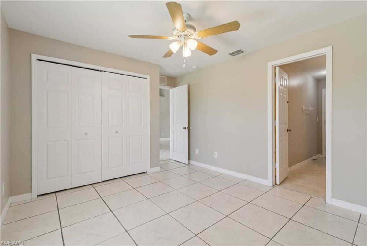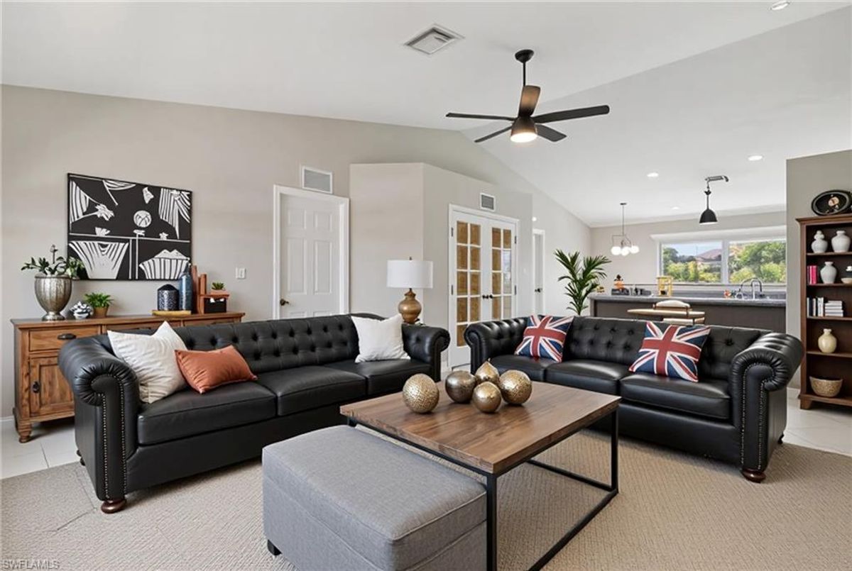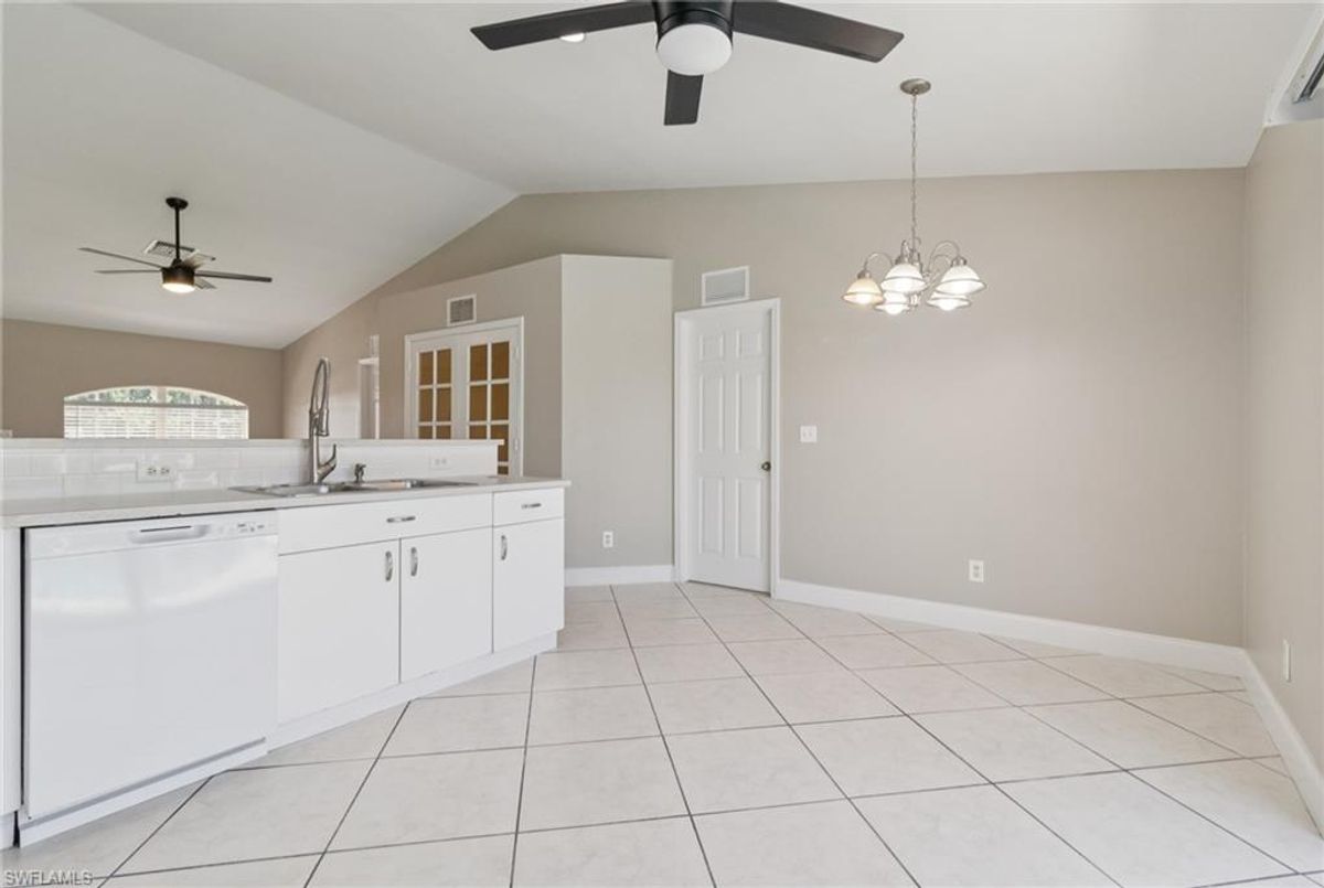 Welcome to this Cape Coral property complete with sparkling pool and screened lanai beautifully situated on a corner lot. Soak up some sun and enjoy a refreshing swim or relax in the shade on the patio. Take a peaceful stroll around the neighborhood and take in the canal views. You'll appreciate the crisp, clean feel of this updated home with vaulted ceilings and tile floors throughout giving this home an open, flowing appeal. The split floorplan preserves the privacy of the owner's suite with walk-in closet and ensuite bath. A charming den with French doors is the perfect gathering space, along with the spacious living room. 2 additional bedrooms and a second full bath round out the living space. You will certainly appreciate the separate laundry room storage and the 2 stall garage with room for your tools and storage. Just minutes from shopping, local eateries, groceries and the Caloosahatchee River.