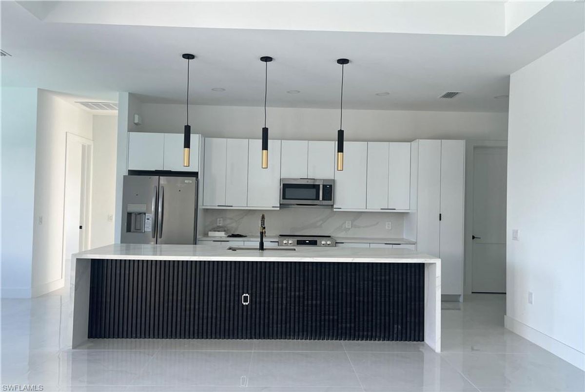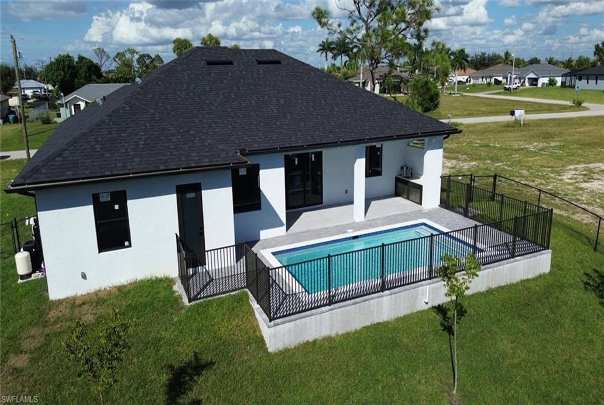 STUNNING MODERN NEW CONTRUCTION with POOL!! NO FLOOD ZONE. SELLER IS OFFERING UP TO $8,000 toward buyer's closing costs. this move-in ready home features a bright open-concept layout, with 4 bedrooms 3 bath. Kitchen with stainless steel appliances, QUARTZ countertops, pantry closet. Relax or entertained in the backyard oasis, overlooking the FENCED POOL and peaceful canal views. The primary suite boasts a walk-in closet, dual shower, dual sinks and tub with gold faucets for more elegance. IMPACT DOORS & WINDOWS, 2- car Garage with Epoxy floor add to the appeal. Enjoy a day of fishing for Bass, blue Gills, Catfish and Gar. convenient to pine Island Road for Shopping, dining and Entertaiment.