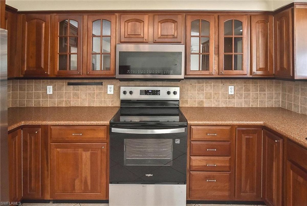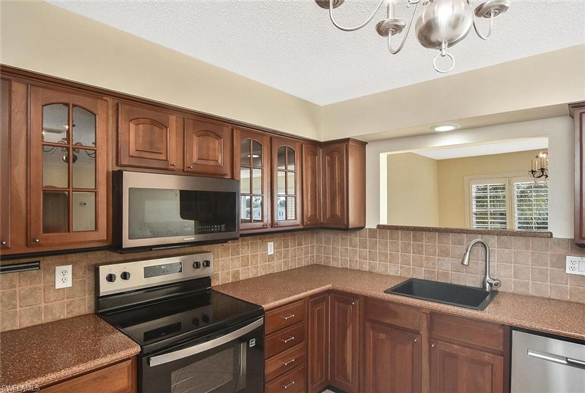 Welcome to luxury lakefront living in the heart of Stratford Place Condos. This beautifully maintained third-floor residence offers breathtaking views of the lake, pool, and fountain, creating a serene retreat within one of South Fort Myers’ most desirable 55+ communities. Step inside the freshly painted interior to discover a spacious open floor plan that seamlessly blends comfort, functionality, and style. The home features tile flooring throughout and elegant plantation shutters that add a touch of sophistication and privacy.The well-appointed kitchen boasts solid-surface countertops, stainless steel appliances including a brand-new stove, and a breakfast island with a built-in drink refrigerator, providing the perfect setting for entertaining or enjoying casual meals. Just off the kitchen, you’ll find a laundry room with a utility sink and additional storage for everyday convenience.Through the double sliding doors, step out onto your private balcony and take in the peaceful sunrise views over the lake while sipping your morning coffee. This spacious home offers two generous bedrooms and two beautifully updated bathrooms, providing both comfort and privacy. Just steps away on the third-floor terrace is your own private storage closet, along with covered carport parking equipped with water and electricity. You’ll also enjoy additional storage in the Carriage House West, ideal for a golf cart, motorcycle, bicycles, kayak, or beach gear.Community amenities include a new roof installed in 2023, convenient elevator access, a resort-style saltwater pool overlooking the lake, and a beautifully updated clubhouse with a modern kitchen and outdoor grill area, perfect for relaxing or gathering with friends and neighbors. The HOA covers water, trash, pest control, lawn maintenance, and recreational facilities, allowing for a truly maintenance-free lifestyle. Pets are welcome with some restrictions.Perfectly located off Cypress Lake Drive, Stratford Place offers convenience to Cypress Lake Golf & Tennis Club, as well as nearby shopping, dining, entertainment, medical facilities, the Barbara B. Mann Performing Arts Hall, Southwest Florida’s beautiful beaches, and the airport. Whether you’re seeking a seasonal getaway or a year-round home, this condo delivers comfort, elegance, and exceptional value. Come experience this lovely residence today and see why it’s the perfect place to call home.