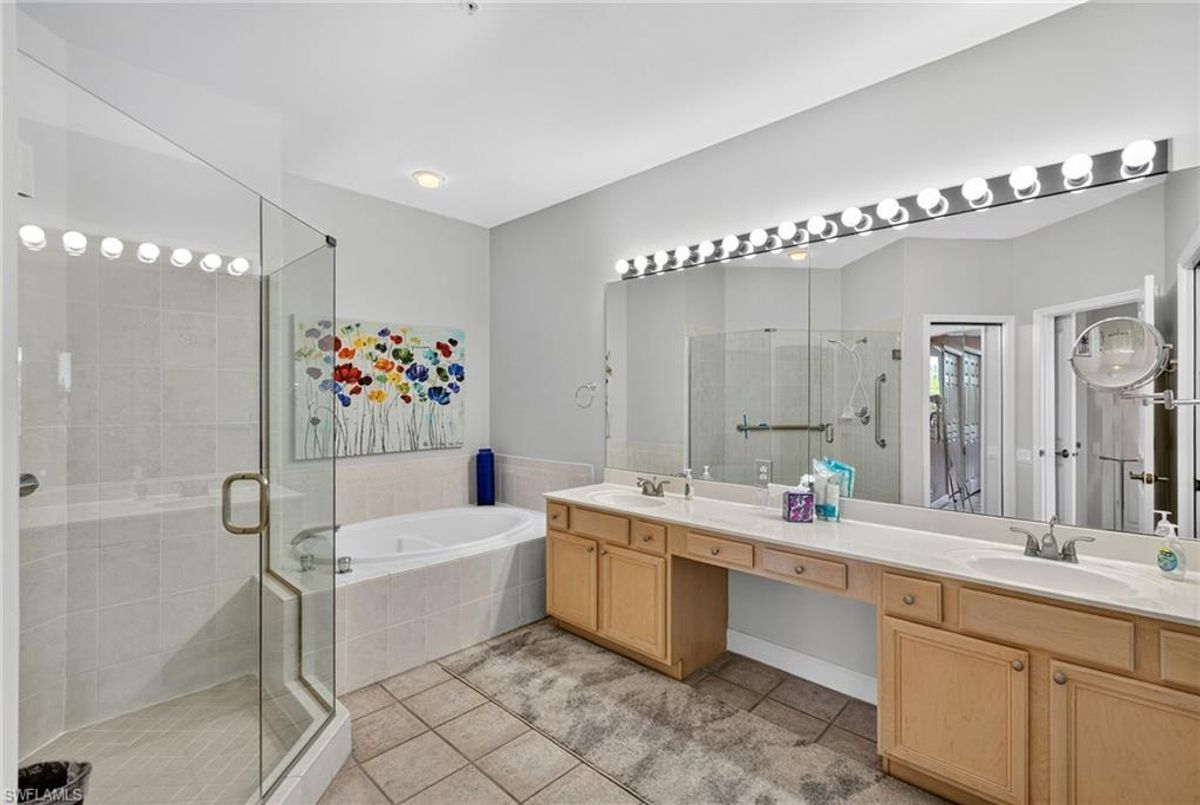 Enjoy peaceful preserve views and quiet living from this very clean, furnished end-unit condo in Lexington Country Club. This spacious 2-bedroom, 2-bath plus den floor plan offers a great room design that blends the kitchen, dining, and living areas seamlessly — all opening to a large screened lanai overlooking the tranquil preserve. The kitchen features wood cabinetry, a center island, solid surface countertops, and newer white appliances. The den includes bamboo flooring, ideal for an office or reading space. Tile runs throughout the living area, entry, and wet zones, with tile also extending into the bedrooms. The primary suite offers generous closet space — including a linen closet, a walk-in closet, and an additional oversized closet — along with a large ensuite bathroom featuring a frameless glass shower enclosure with tile surround, a soaking tub, dual sinks, and a private water closet. The guest bath includes wood cabinetry, a comfort-height toilet, and a shower/tub combo with tile surround. Additional highlights include a screened entry, wet bar, and a mezzanine sitting area at the building entrance — a perfect spot to enjoy your morning coffee, read a book, or dine outdoors. This end unit provides wonderful privacy, a serene view, and exceptional value within Lexington Country Club. Lexington Country Club is one of Fort Myers’ premier resort-style communities, offering an 18-hole championship golf course, tennis and pickleball courts, multiple heated pools, a fitness center, tiki bar, and full-service restaurant. Located just minutes from Fort Myers Beach, Sanibel Island, shopping, dining, and RSW Airport, it’s the perfect blend of convenience, comfort, and Southwest Florida lifestyle.