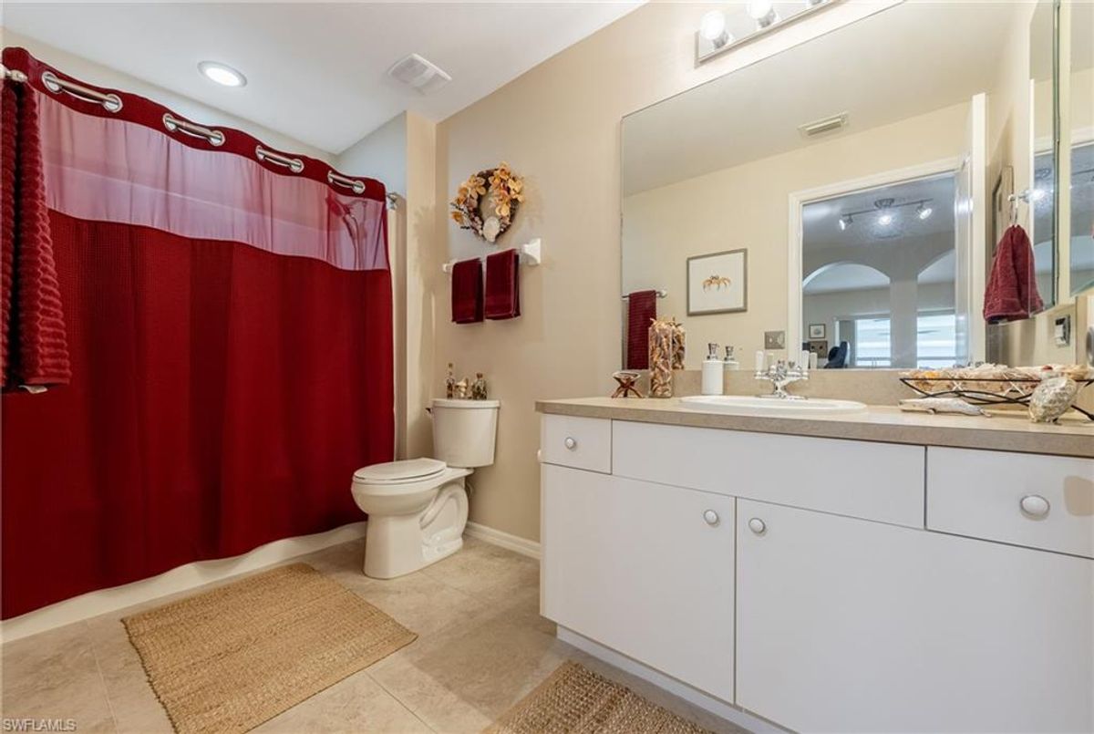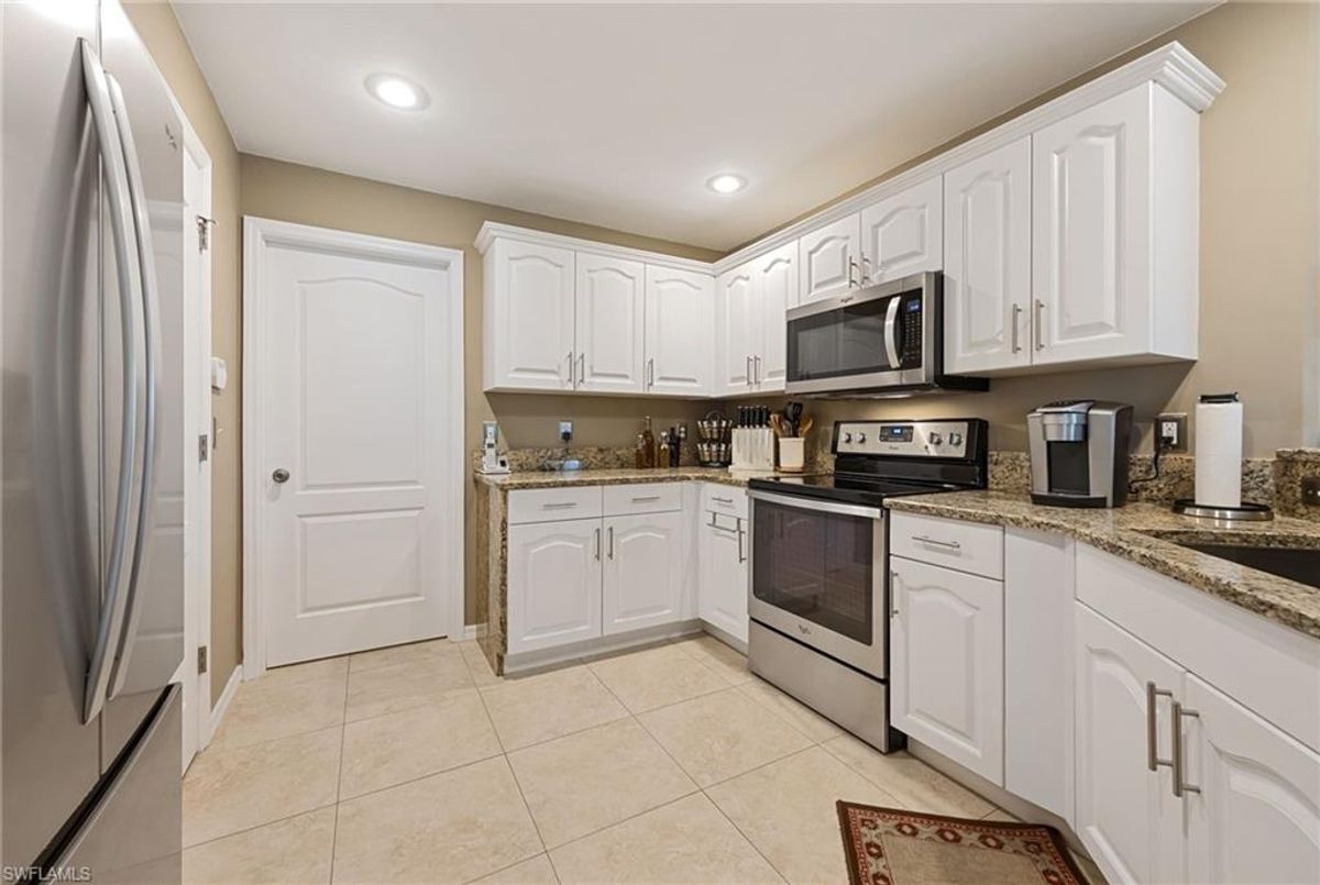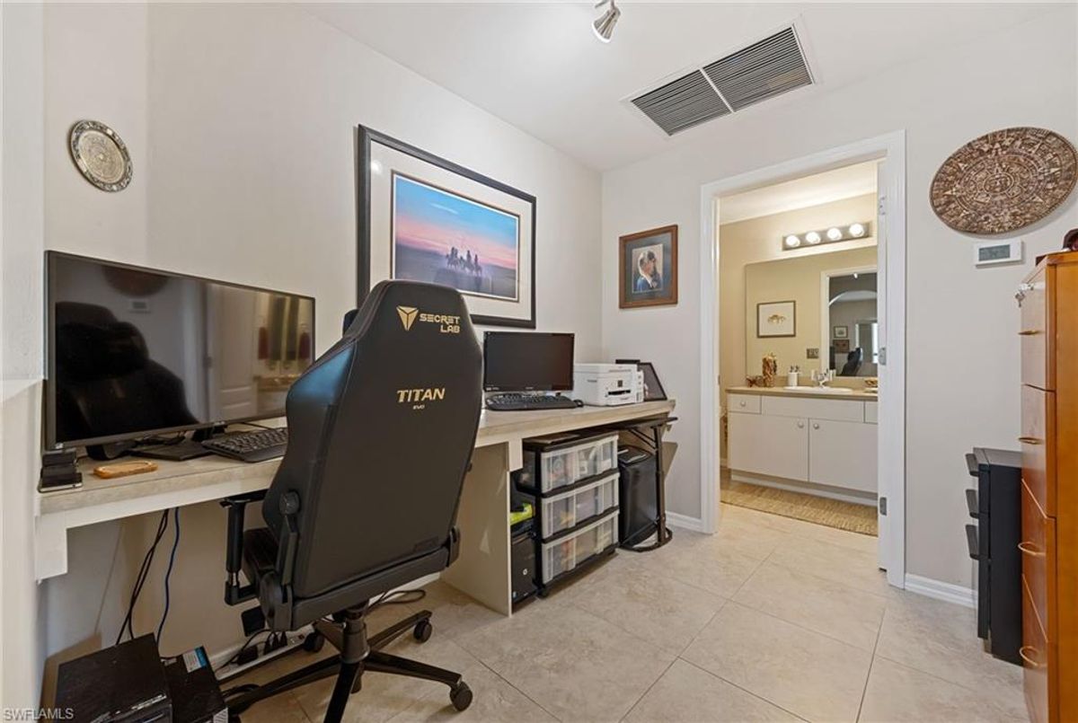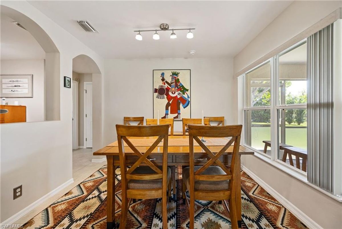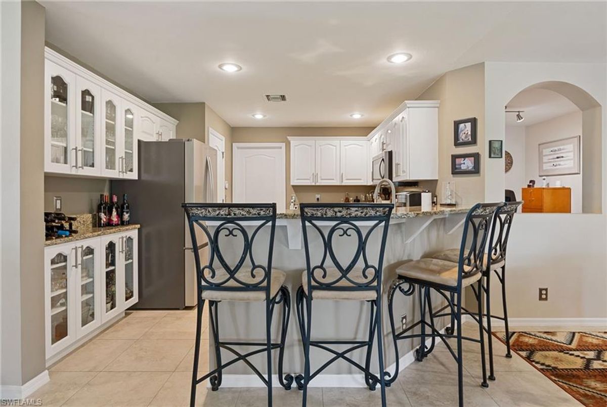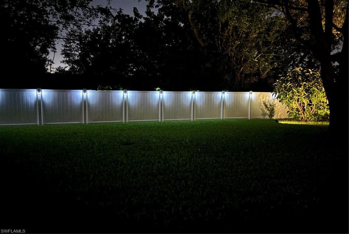 Lovingly maintained and move-in ready, this beautiful 3 bedroom, 2 bathroom home in desirable SW Cape Coral Florida offers comfort, style, and attention to detail at every turn. From the moment you arrive, you’ll be drawn to the lush, tropical landscaping featuring a striking Washingtonia palm in the front yard, complemented by graceful royal palms that create exceptional curb appeal. A beautiful open front porch welcomes you home. Inside you’ll find a spacious open floor plan with 20 inch tile throughout for easy maintenance and timeless appeal. The kitchen is upgraded with Whirlpool stainless steel appliances, including a 31 cubic foot refrigerator and a convection oven, paired with elegant glass front and raised panel cabinets topped with crown molding, 78 feet of granite countertops featuring a waterfall edge, a Kraus dual bowl stainless steel sink, and a pantry, this kitchen perfectly blends functionality and beauty for both everyday living and entertaining. The large primary suite, approximately 16x13, easily accommodates a king sized bed and features sliding doors to the lanai. While the primary bath includes a granite vanity, a walk-in shower with glass doors, and a spacious walk-in closet. Two guest bedrooms, a second full bath and a linen closet are situated on the opposite side of the home, providing a true split bedroom floor plan ideal for family or guests. A dedicated home office features an 8.5 foot built in desk wired for high speed internet, cable, and Ethernet, perfect for remote work, daily organization or school work. The open living and dining areas flow seamlessly together and open through sliding glass doors to an expansive 25 foot under truss lanai with privacy screens and remote controlled ceiling fans, it’s ideal for relaxing or entertaining outdoors. The laundry room off the kitchen gives access to the garage and a storage closet. The fully fenced backyard offers a 6 foot vinyl privacy fence along the back with solar lighting and is stunning at night. There are gates on both sides of the home, ample room for a pool. Majestic oak trees, mature landscaping, and fragrant jasmine and passion flower vines create a tranquil private retreat. Additional upgrades include, a Clopay hurricane rated garage door with battery back up, a Rudd 14 seer air conditioner, a side door in the garage for added convenience, easy install hurricane panels, a 10K electric start Generac generator for peace of mind, and an Aquaboon whole-house water filtration system providing clean, high-quality water throughout. The home also features an architectural shingle roof with a secondary water barrier and a 130 MPH limited lifetime manufacturer warranty, a Rain Bird automatic irrigation system, an Arlo security system with motion lights on all corners, and a renewable flood policy. This exceptional Cape Coral home offers both comfort and value in one of the areas most desirable locations. Close to shopping, dining, parks, and the beautiful Gulf beaches.