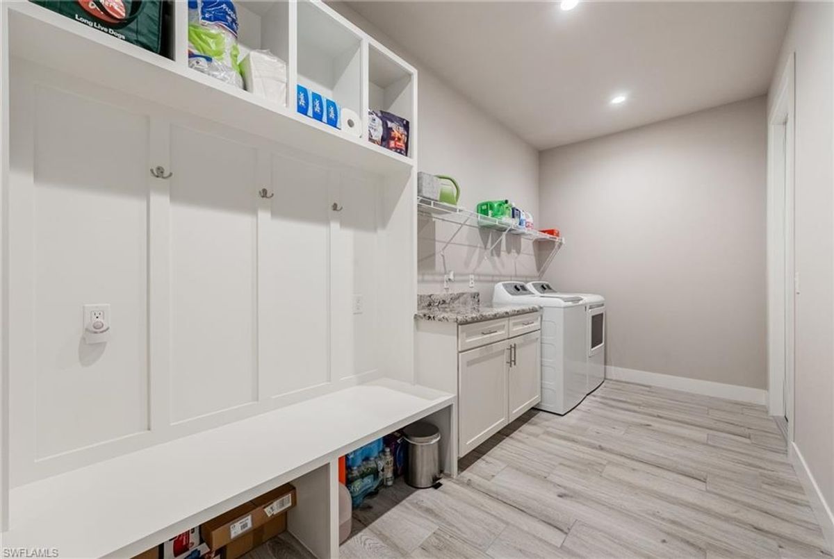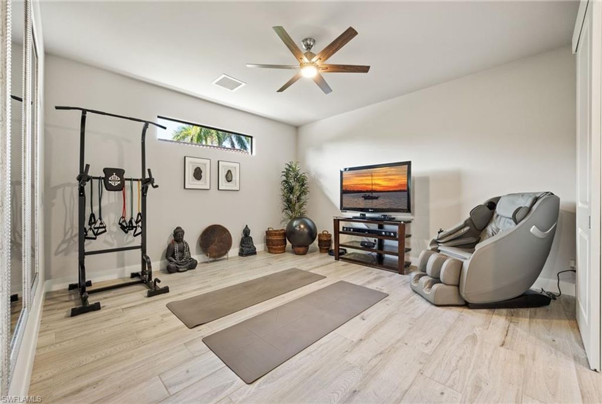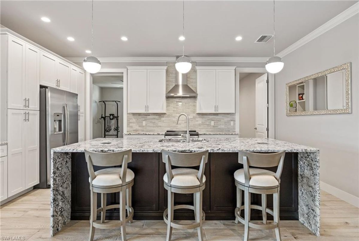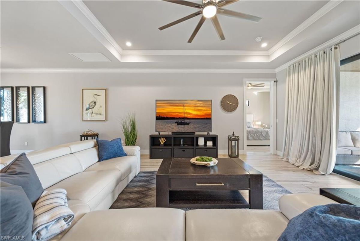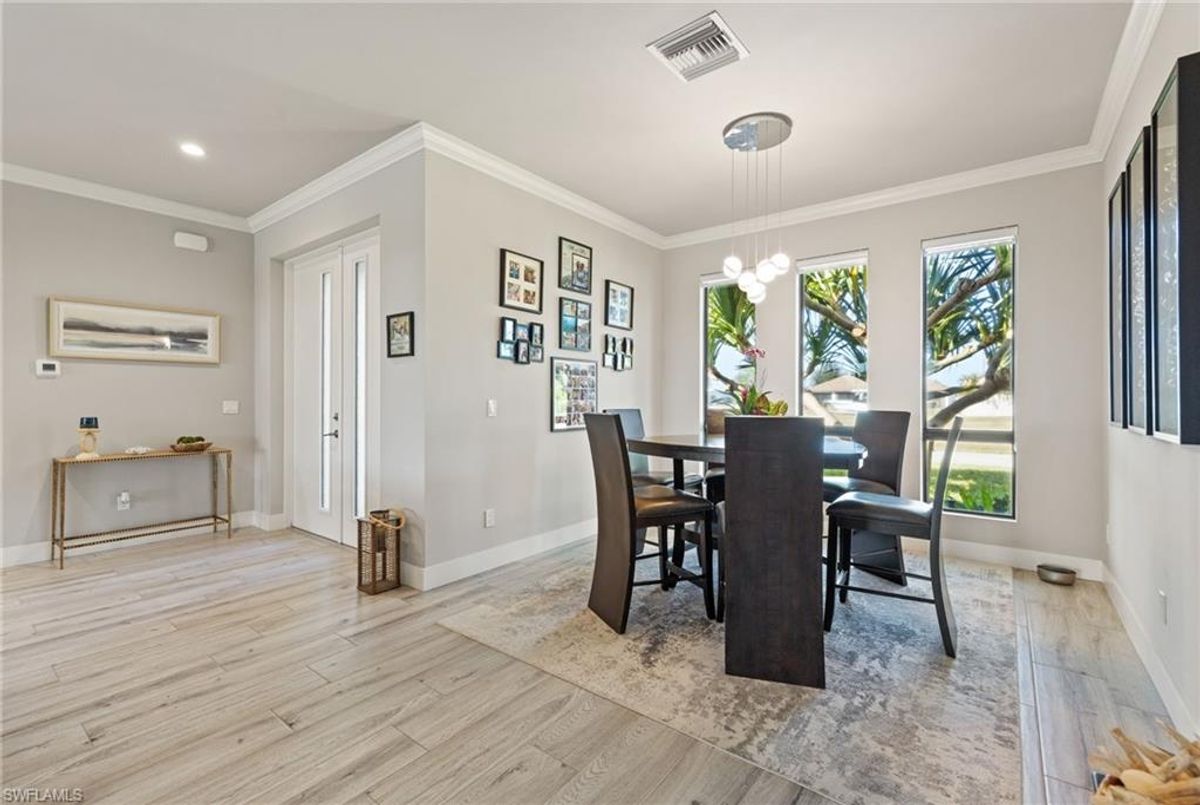 Your dream home and move in ready! Impeccably maintained, this one-owner custom-built 2020 contemporary pool home offers intersecting canal views and over 2,200 sq ft of luxurious living space. Designed for comfort and functionality, it features 3 spacious bedrooms—all with walk-in closets—and 2 large bathrooms, including a guest-accessible pool bath. The flexible floor plan includes a Bonus Room perfect for an office, family room, home gym, playroom, den, or even a mother-in-law suite/wing. Additional highlights include an extra-deep 3-car garage, a family-style kitchen ideal for gatherings, and a distinctive mudroom/laundry room with a built-in drop zone for everyday convenience. Enjoy finishes like tile flooring throughout, crown molding, tray ceilings, impact doors and windows, and an added benefit, a whole-house reverse osmosis system. The open great room flows seamlessly to a screened lanai with a wood-inlaid ceiling, a panoramic pool cage with super screen, and a sparkling pool—your private oasis for entertaining or relaxing in the sun. Outside, you'll find a composite captains walk dock with custom lighting and a 10,000 lb boat lift. Prime location with effortless Gulf of America boating access — only one 10' bridge (the highest max water height in the NW) between you and open water. Cast off and you’re instantly on your way to incredible boating, world-class fishing, and endless sunshine. Plus, affordable flood insurance at just $968 annually provides peace of mind. Located in a rapidly growing area of Cape Coral, surrounded by newer homes and close to exciting developments like the Seven Islands Project and the recently completed Crystal Lake Park. Check out the video link! This isn’t just a listing—it’s a lifestyle!