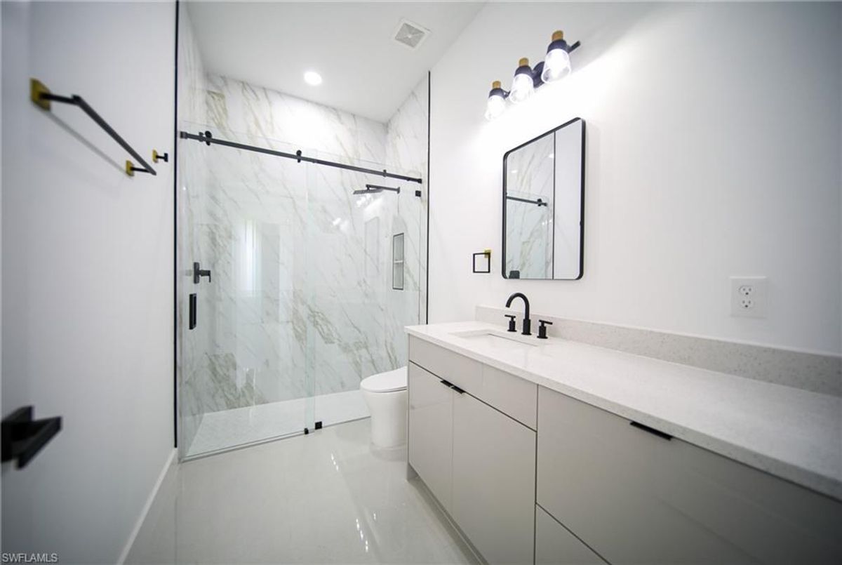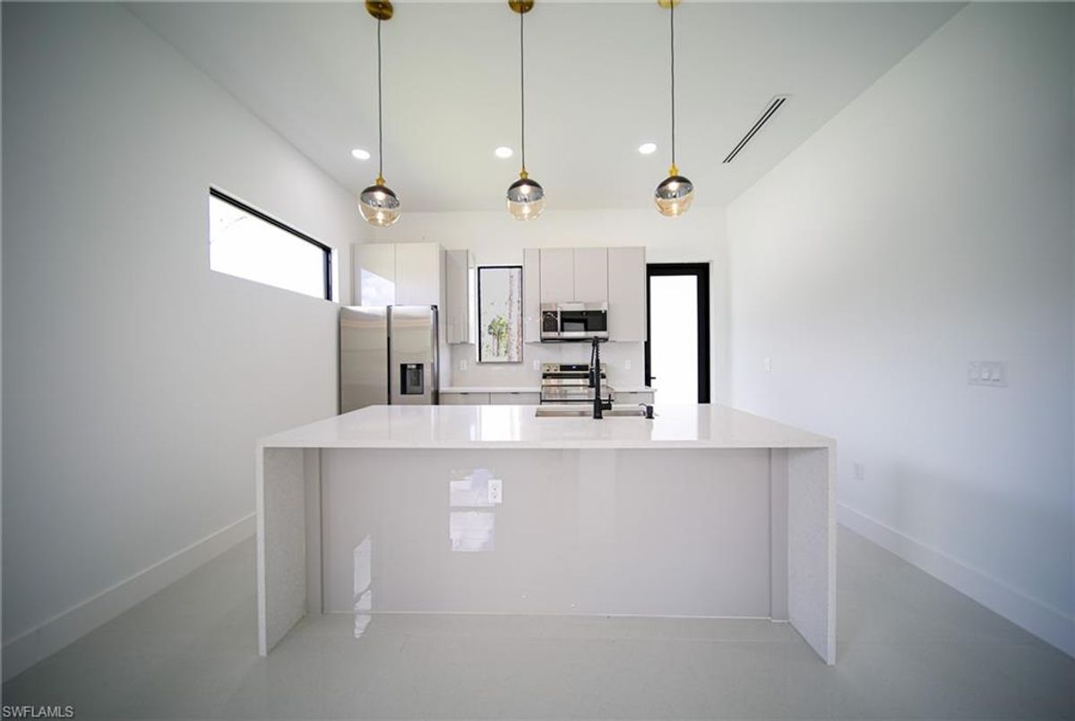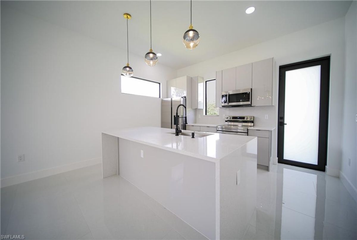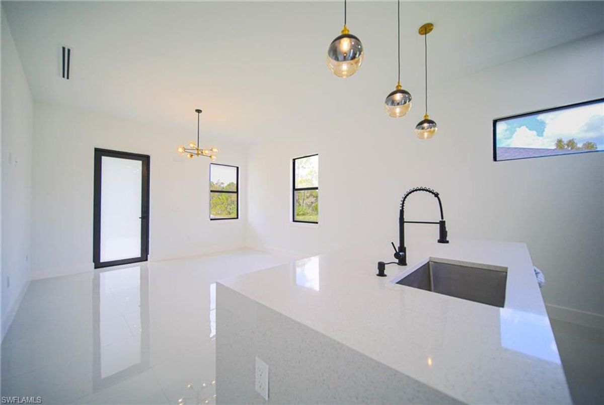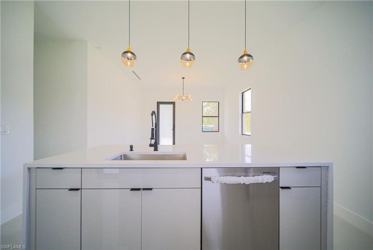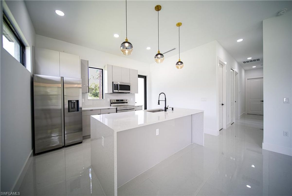 Brand-new construction — just completed! This beautifully crafted home offers three bedrooms, two full baths, and a one-car garage on a canal-front lot. Every detail has been thoughtfully selected to provide premium style and lasting quality. Step inside to find oversized luxury tile flooring flowing seamlessly through every room, paired with impact-rated windows that fill the interior with natural light. The kitchen is a true centerpiece, featuring custom cabinetry, waterfall-edge quartz countertops, and special-order stainless-steel appliances — all designed for both function and elegance. Each bathroom showcases custom designer tile-work and custom cabinetry with quartz vanity tops that elevate the living experience. The open-concept floor plan allows effortless transitions between the kitchen, dining, and living areas — perfect for entertaining or relaxing at home. Situated on a rare quarter-acre canal lot, the property offers plenty of outdoor space. Impact glass.The seller is willing to contribute up to $10,000 in concessions toward buyer closing costs and prepaid