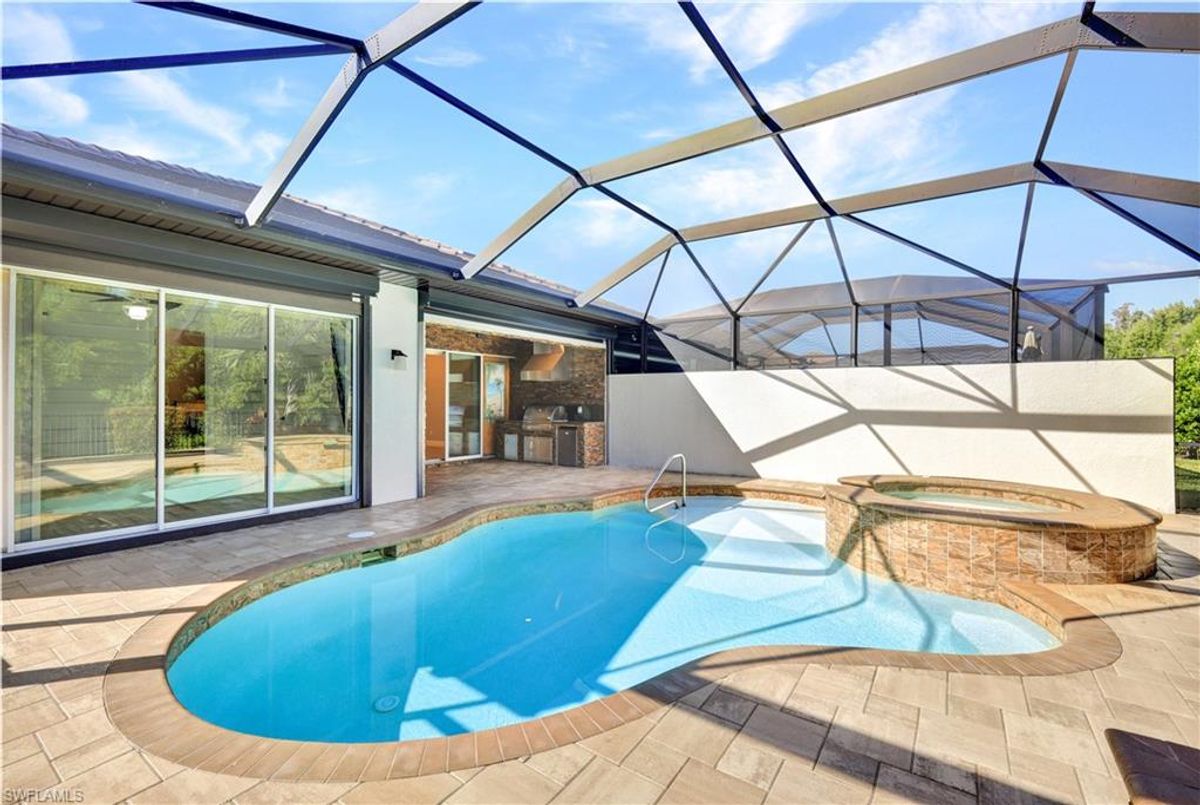 Spectacular Villa with Private Pool, Spa & Prime Fort Myers LocationThis stunning end-unit villa offers the perfect blend of privacy, elegance, and Florida living. Featuring 2 bedrooms plus a spacious den with a Murphy bed and room for two desks, this home adapts beautifully for guests or a home office.Step outside to your private pool and spa, surrounded by a wrap-around fence, preserve views, and lush landscaping for a truly secluded retreat. Enjoy the outdoor kitchen with built-in grill and custom fire pit—perfect for entertaining or peaceful evenings on the lanai.Inside, every detail has been thoughtfully designed. The upgrades go on and on, including a top-of-the-line kitchen with premium finishes and meticulous attention to design and craftsmanship throughout. The split-bedroom layout features 2 full baths, a custom walk-in closet in the primary suite, and 10-foot sliders leading to the pool area. The great room impresses with a coffered ceiling, built-in entertainment center, and abundant storage.Location is everything—you’re just minutes from some of Fort Myers’ best restaurants, shops, and world-famous beaches. Spend the day at Fort Myers Beach, Sanibel, or Captiva, all within 20 minutes, where you can relax, soak up the sun, or collect your favorite shells.This home truly captures the best of Southwest Florida luxury living—a private, upgraded retreat in an unbeatable location.