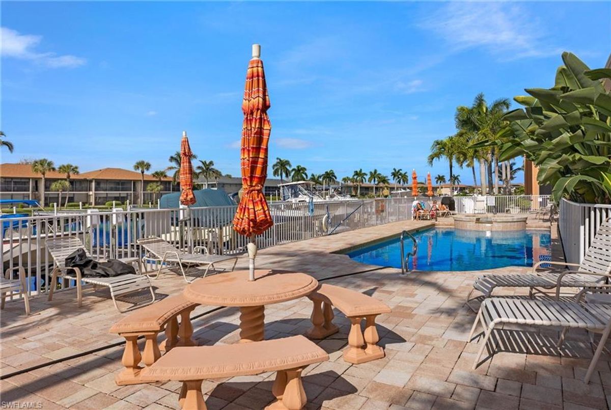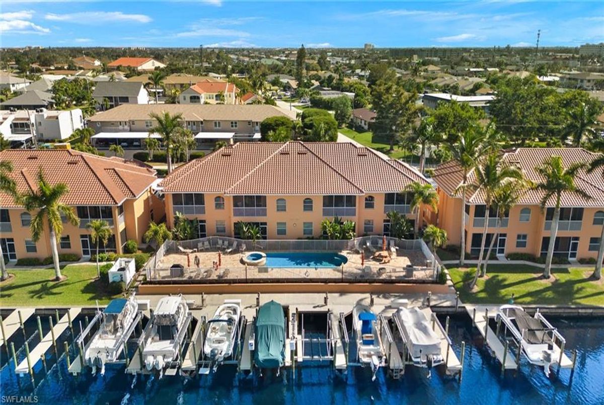 Immerse yourself in Florida living at its finest! Cozy 2-bed, 2-bath condo in Cape Coral's beautiful Tuscany Village. Located on the first floor, this spacious unit boasts ceramic tile flooring keeping the place cool with easy maintenance. The master bedroom features a walk-in closet and an ensuite bathroom with dual sinks and a separate shower. Brand new AC, and newer appliances. Easy access in-residence laundry and great place to whip up meals for the cook! Step onto your private enclosed lanai, where you can unwind with a view of the canal and the community pool. Tuscany Village is not just a home; it's a lifestyle. Enjoy access to fantastic amenities, including a community boat dock for water enthusiasts, a sparkling pool for relaxation, and a rejuvenating spa/hot tub. Experience the ultimate in Florida resort-style living - make this condo your new home today!
