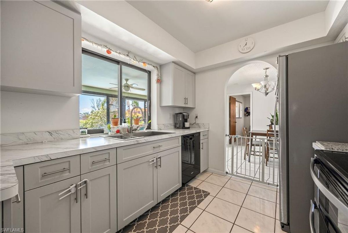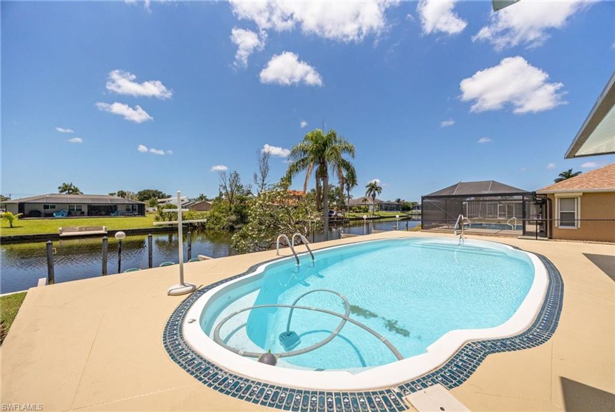 Gulf Access Pool Home with Endless Sunshine! This bright and breezy 3 bedroom, 2 bath home is waterfront with Gulf access and located on a peaceful canal just off Santa Barbara Blvd. Minutes from Cape Coral’s best dining, shopping, and entertainment. A spacious layout offering two living areas and a vibrant dining room that is ideal for entertaining or relaxing. The updated kitchen shines with a double oven, modern cabinetry, a pantry, and a sunny pass-through window to the lanai. Split bedrooms giving privacy for everyone, with a versatile guest room (featuring a Murphy bed) and a pool access bathroom. The primary suite includes a walk in closet, dressing vanity, and serene views of the pool and water. Open the pocket sliders to your expansive lanai that's perfect for year round indoor and outdoor living. Enjoy sun filled days by the sparkling pool, cast a fishing line from your private dock, or simply unwind in your fenced backyard oasis. Updates include: 2023 roof, brand new 2025 HVAC system, fresh exterior paint, new fence, Maytag washer & dryer, and updated blinds. City water & sewer with No Assessments! The owner has transferable flood insurance. Don’t miss your chance to own this waterfront gem in sunny Cape Coral!