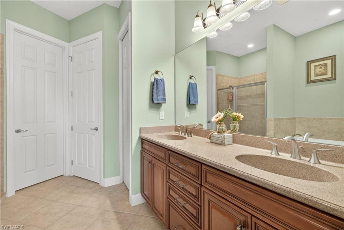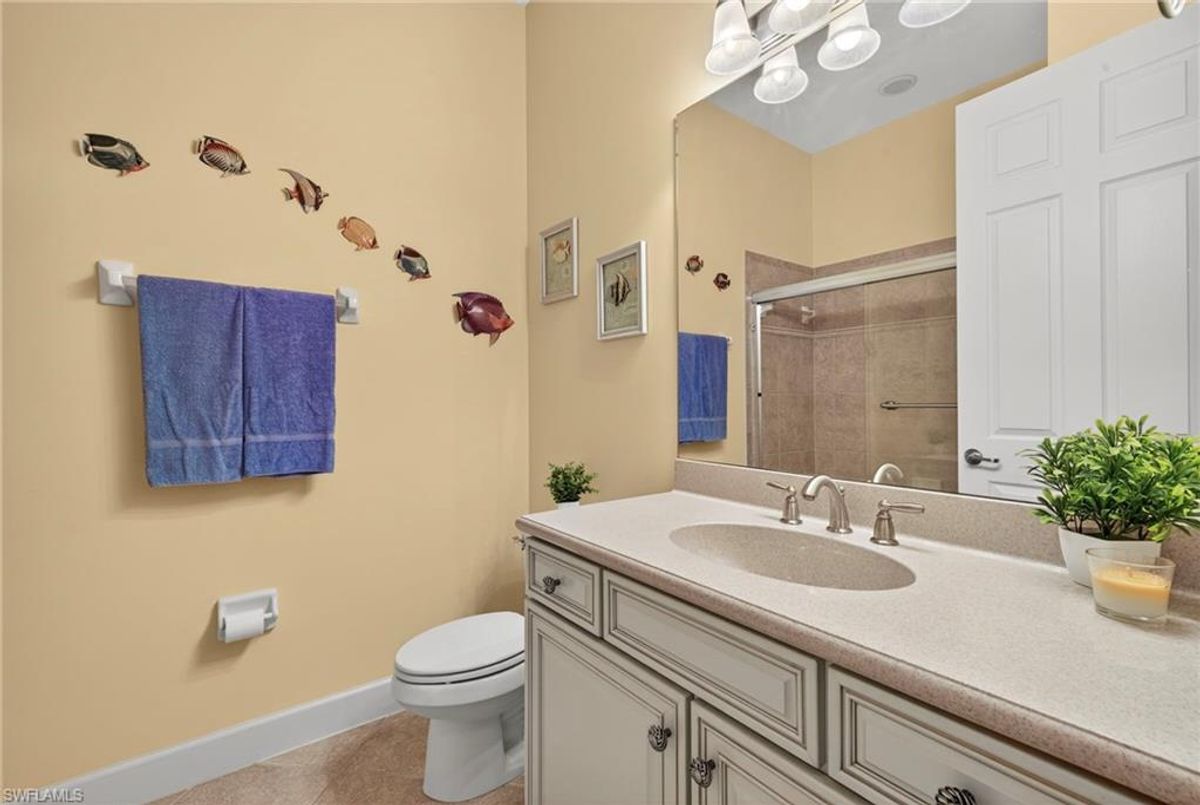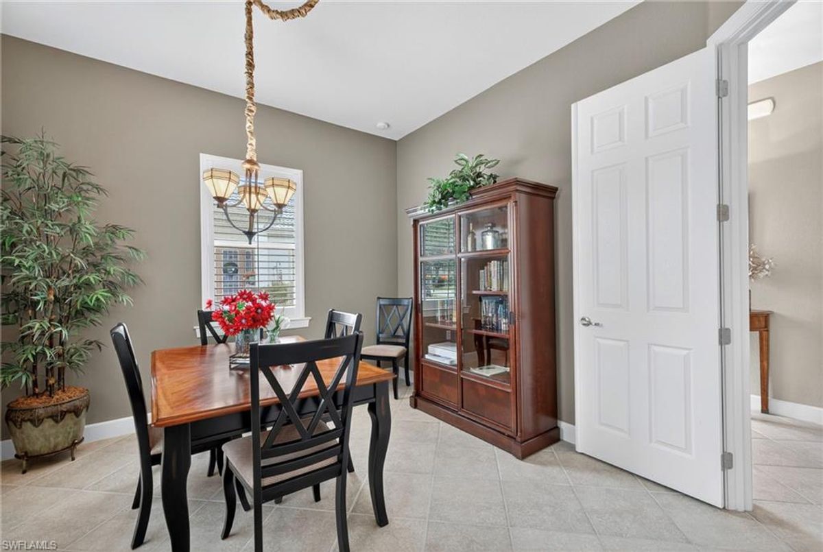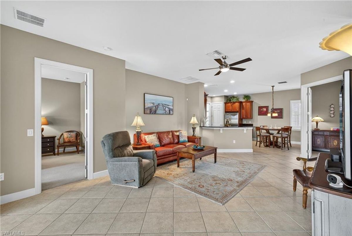 Welcome to this spacious TURNKEY villa in the highly sought-after community of Bridgetown. With 3 bedrooms plus a den and 1,813 sq. ft. of living space, this home is designed for comfort and style — and your family and friends will love to visit! Step through the front door and take in the sunlight streaming through the open-concept living, kitchen, and dining areas. The den with French doors offers flexibility as additional dining space or an office for those who work from home or simply want a quiet space to unwind. The chef’s kitchen features an island, pantry, granite countertops, and upgraded cabinetry — ideal for entertaining or casual family meals. From there, your eyes are drawn to the extended lanai with a private pool and gorgeous lake views, creating the perfect backdrop for relaxing or hosting guests. The primary suite offers serene lake views, abundant natural light, and plenty of room to spread out. The ensuite bath includes a soaking tub, separate shower, and a large walk-in closet. Two spacious guest bedrooms and a full bath on the opposite side of the home provide privacy and comfort for visitors. At Bridgetown, resort-style living is part of everyday life. Enjoy two community pools — one chilled lap pool and one resort-style pool with a spa, plus a state-of-the-art fitness center, pickleball, tennis, bocce, and a play area. Gather with neighbors at the clubhouse, BBQ/fire pit area, or tiki bar, and experience the warm, welcoming Bridgetown lifestyle. Don’t miss this opportunity to own a beautiful furnished villa in one of Southwest Florida’s most desirable communities. Schedule your private showing today!