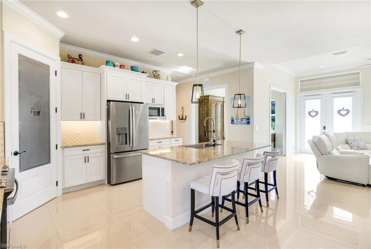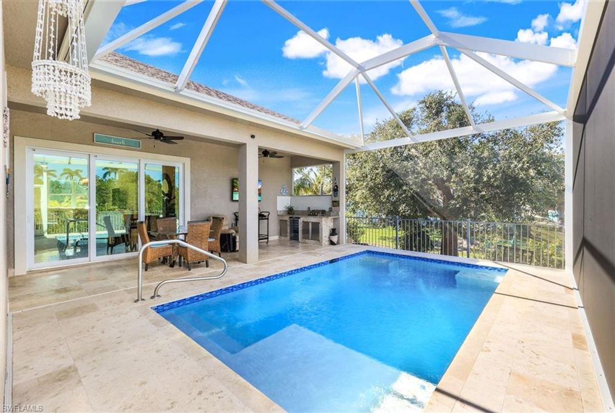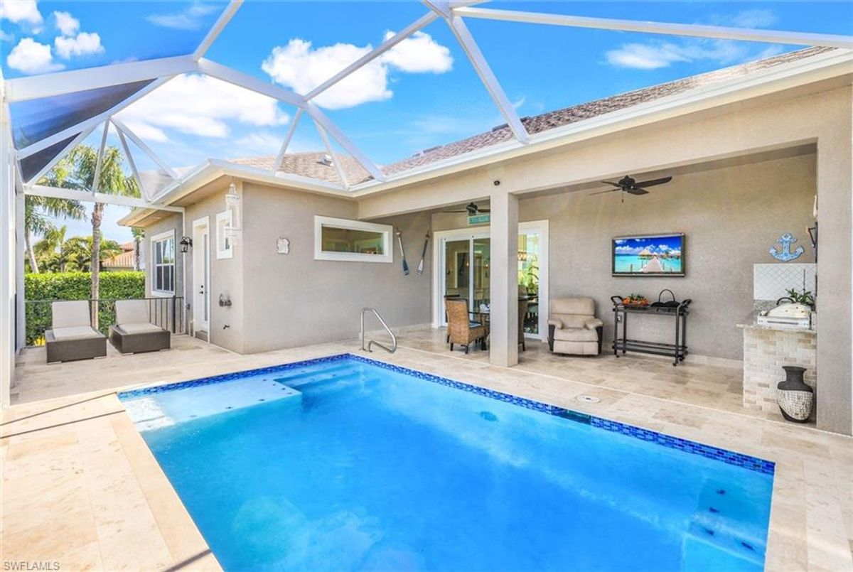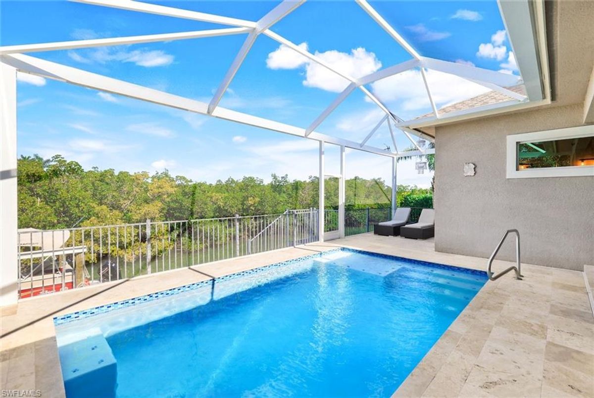 Welcome to your waterfront, DIRECT GULF ACCESS (no bridges), Marco Island, FL hideaway with no HOA. This newer build's foundation sits on a reinforced stem wall supported by concrete pilings with bottom floor elevation of 11.4' above sea level! This stunning 3-bed, plus den, 2.5-bath custom home is the epitome of coastal living. Newly built in December 2022, it features high-end finishes and upgrades throughout. The heated and salt water pool offers year-round swimming opportunities. For nature enthusiasts and bird watchers, this home offers the privacy of mangroves right in your backyard. Most direct access canal homes have other homes as their backyard view, but not this one! The home is also conveniently situated just minutes away from Publix Supermarket, Resident's Beach, dining, and shopping. The outdoor space offers a built-in kitchen, screen enclosed lanai, and 4 new pilings that hold the boat lift. Schedule a visit today!