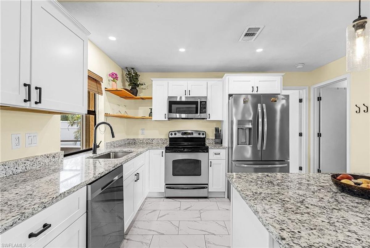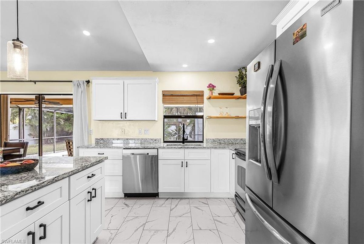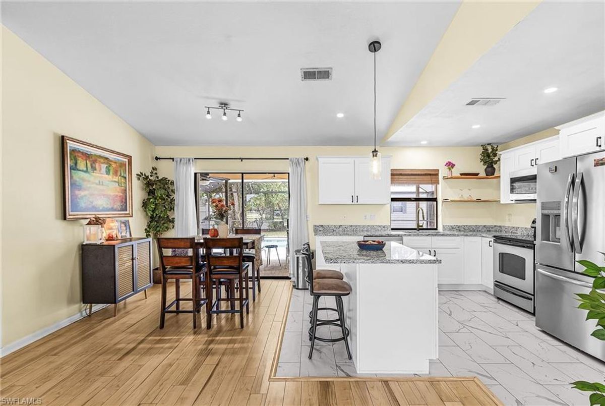 Welcome to this beautifully REMODELED POOL home, perfectly positioned on a FENCED CORNER lot in highly desirable SE Cape Coral. This home combines modern upgrades, privacy, and outdoor living—offering the IDEAL Florida lifestyle. The kitchen was remodeled in 2024, perfect for casual dining and entertaining! Master bath 2024 and guest bathroom in 2021, beautifully remodeled with tile accents, modern vanities, and updated fixtures. ROOF 2023, REPLUMBED 2021, A/C 2020 & DUCTWORK REPLACED 2025. The home’s open layout brings in abundant natural light and offers seamless flow between the kitchen, living, and outdoor areas. Enjoy RELAXED swimming and entertaining in the LARGE AND SPACIOUS screened lanai, complete with a sparkling pool and plenty of seating area. The LARGE, FULLY FENCED yard offers exceptional privacy, room to play, space for pets, or potential for future additions—RARE TO FIND ON A CORNER LOT!! CLOSE to shopping, parks, restaurants and hospitals—with easy access to FT MYERS BEACH, SANIBEL & CAPTIVA! and CLOSE TO historic downtown FT MYERS AND DOWNTOWN Cape Coral! Enjoy the W FLORIDA LIFESTYLE in your beautiful POOL HOME!