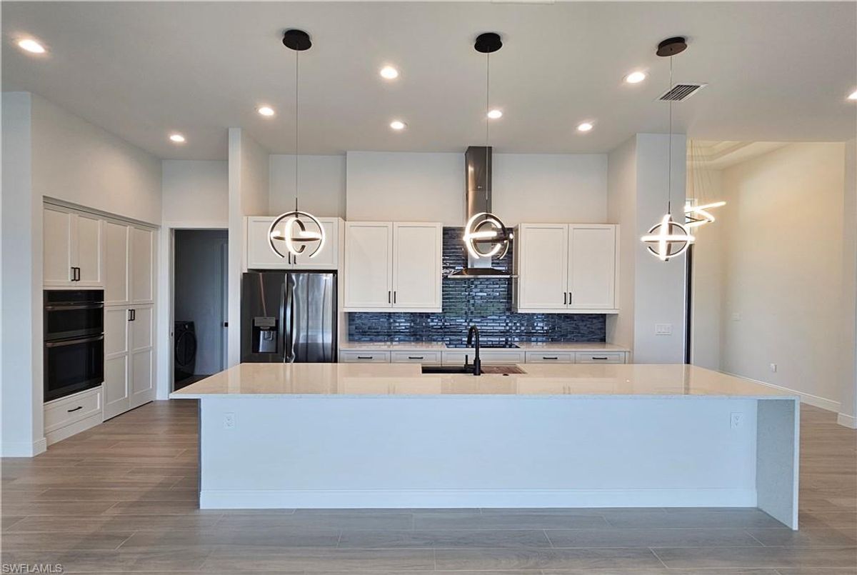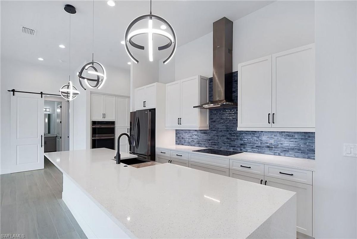 *** Prime unrestricted & direct boating access within a few minutes to the river. *** Move-in ready! *** Newly constructed custom contemporary home in the prestigious Cornwallis area! This luxury new home was built by Tundra Homes and has never been occupied. It features 2,501 sq.ft. of living area with a master-suite, a junior-suite, a guest-suite, 3 full bathrooms, a den, a gourmet kitchen with a 'waterfall' quartz countertop at the huge center island and a 'hidden' walk-in pantry, high end LG appliances in black stainless steel finish, a double oven/microwave combination with 'air frying' feature, super quiet dishwasher and custom kitchen cabinets. Good size laundry with built-in cabinets, sink and modern large capacity front loading washer and dryer. The spacious great room and the master suite offer 10' tall 'pocketing' sliding impact glass doors. The dining area has a niche for a wine bar. All windows and doors are hurricane impact rated. The front entry door and pool bath door are top of the line and were imported from Germany. The flooring in the main living areas are finished with porcelain plank tiles showing a wooden character. Many high coffered and tray ceilings. Enjoy colorful Florida sunsets with this western rear exposure western rear exposure from the spacious 53' x 12' covered lanai with a built-in outdoor kitchen, Weber grill, stainless steel refrigerator, sink and granit bar top. The oversized 36' x 13' pool offers 6-person rectangular '360 infinity edge' spa with sparkling glass tiles, a sun-shelf, multi-colored LED lights, electric heater and Jandy automation. There is plenty of room for your cars & toys in the 3-car garage with epoxy floring and quiet belt-driven garage door openers. The boat dock features a wrap-around design with composite decking, a 10,000 Lbs lift with remote control and the framing for a canopy is already in place. All electrical parts at the dock were replaced two years ago. The seawall was replaced in December 2018, so no worries there! High and dry, this home was never flooded in any of the hurricanes! All 'city utilities' are paid in full. The landscaping was just updated with multiple palm trees, many small plants and new black mulch. Don't delay & enjoy the sunny Florida lifestyle!