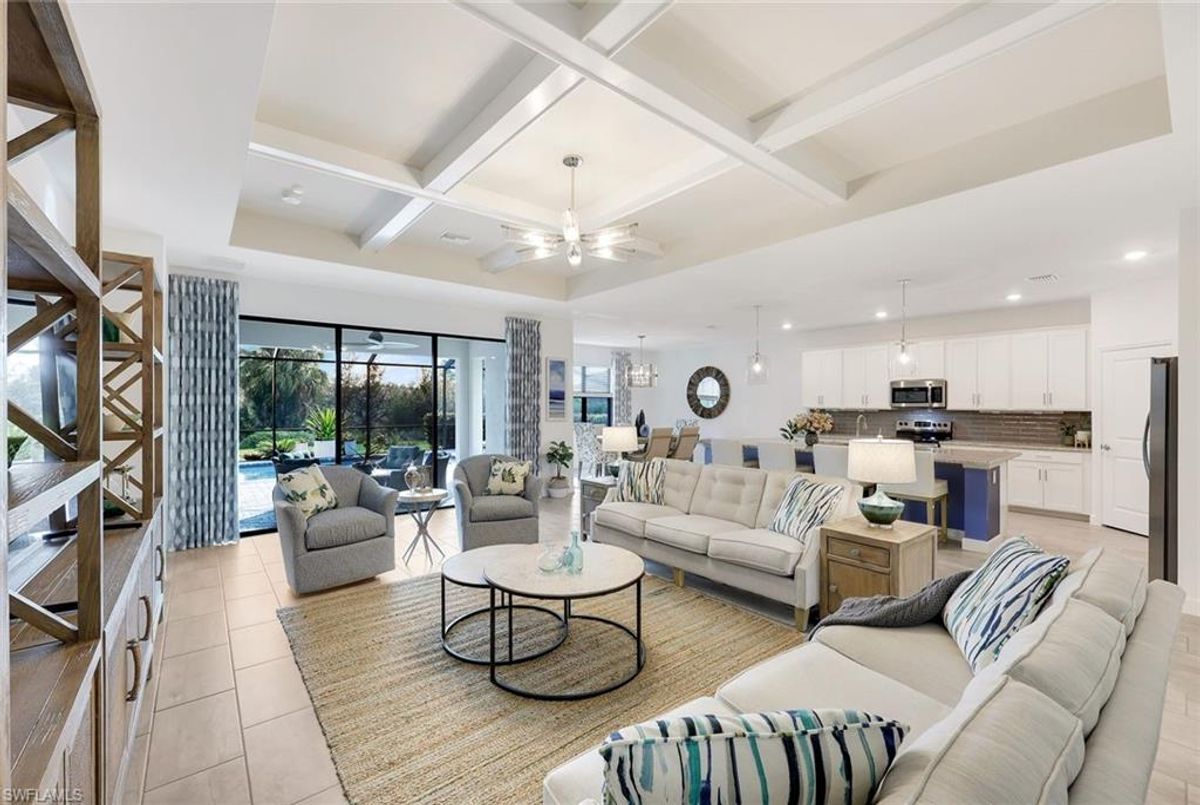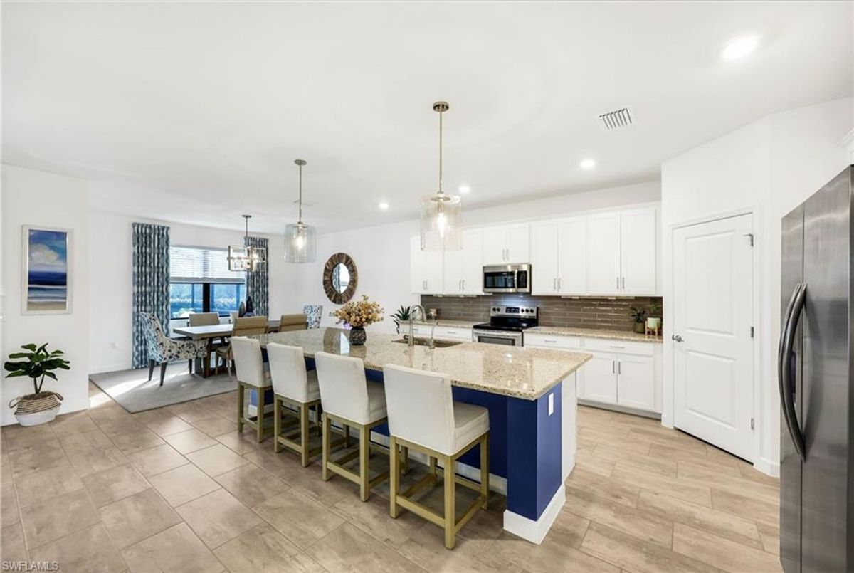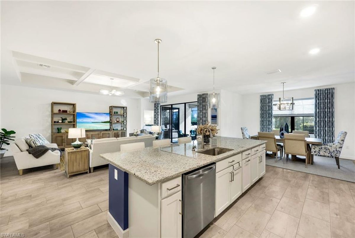 Step into this stunning modern coastal retreat, where bright open spaces, elegant finishes, and timeless design come together to create the perfect home and Southwest Florida Lifestyle! Every detail of this exquisite Summerville has been thoughtfully curated from coffered ceilings at the entry and living, to custom window treatments and designer fixtures which result in a space that feels both luxurious and livable! The gourmet kitchen is the heart of the home featuring white shaker cabinetry, granite countertops, subway tile backsplash, and a massive, bold navy island that adds coastal flair! Primary suite showcases a warm LVP flooring, tray ceilings and trim accents, and has direct access to the lanai! Expansive sliders make way to the outdoor private retreat and saltwater pool with peaceful preserve view--ideal for entertaining or relaxing under the Florida sky! This home features a Culligan Water Softener and Reverse Osmosis, High Wind Roll Down and Accordion Shutters, and other conveniences like built-in cabinetry and laundry sink. Sophisticated yet relaxed, and has been meticulously maintained, this home is truly ready to move in, live, and enjoy! If that's not enough, take your golf cart to the clubhouse resort, where it's a vacation every day! A lifestyle director brings the restaurant bar & grill and resort pools to life with calendarized social events and activities! Other amenities include 2 separate gyms, saunas & locker rooms, full court indoor basketball/volleyball court, arcade, social hall, 4 pickleball courts, tennis courts, playground, putting green, event lawn, splash pad, 2 bocce courts, sand volleyball court, firepit and more! Quick access to I75, airport, Jet Blue Park, and all the daily stops and convivence along the Daniels and Colonial Corridors! There's truly no place this like place, and no home like this home!