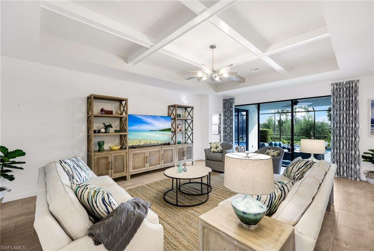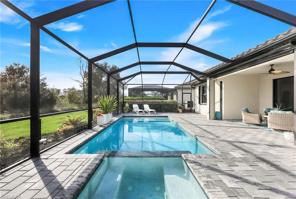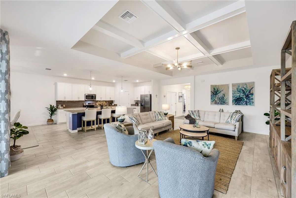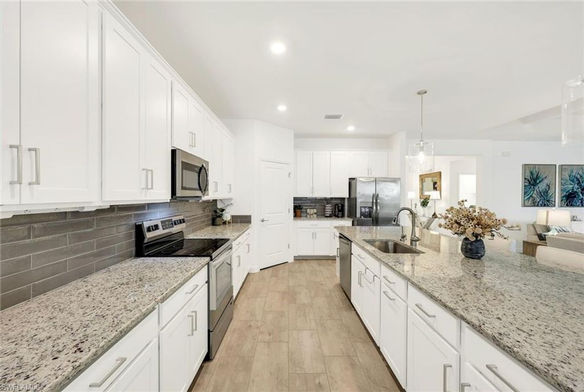 Step into this stunning modern coastal retreat, where bright open spaces, elegant finishes, and timeless design come together to create the perfect home and Southwest Florida Lifestyle! Every detail of this exquisite Summerville has been thoughtfully curated from coffered ceilings at the entry and living, to custom window treatments and designer fixtures which result in a space that feels both luxurious and livable! The gourmet kitchen is the heart of the home featuring white shaker cabinetry, granite countertops, subway tile backsplash, and a massive, bold navy island that adds coastal flair! Primary suite showcases a warm LVP flooring, tray ceilings and trim accents, and has direct access to the lanai! Expansive sliders make way to the outdoor private retreat and saltwater pool with peaceful preserve view--ideal for entertaining or relaxing under the Florida sky! This home features a Culligan Water Softener and Reverse Osmosis, High Wind Roll Down and Accordion Shutters, and other conveniences like built-in cabinetry and laundry sink. Sophisticated yet relaxed, and has been meticulously maintained, this home is truly ready to move in, live, and enjoy! If that's not enough, take your golf cart to the clubhouse resort, where it's a vacation every day! A lifestyle director brings the restaurant bar & grill and resort pools to life with calendarized social events and activities! Other amenities include 2 separate gyms, saunas & locker rooms, full court indoor basketball/volleyball court, arcade, social hall, 4 pickleball courts, tennis courts, playground, putting green, event lawn, splash pad, 2 bocce courts, sand volleyball court, firepit and more! Quick access to I75, airport, Jet Blue Park, and all the daily stops and convivence along the Daniels and Colonial Corridors! There's truly no place this like place, and no home like this home!