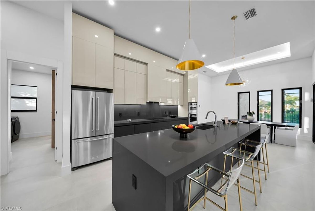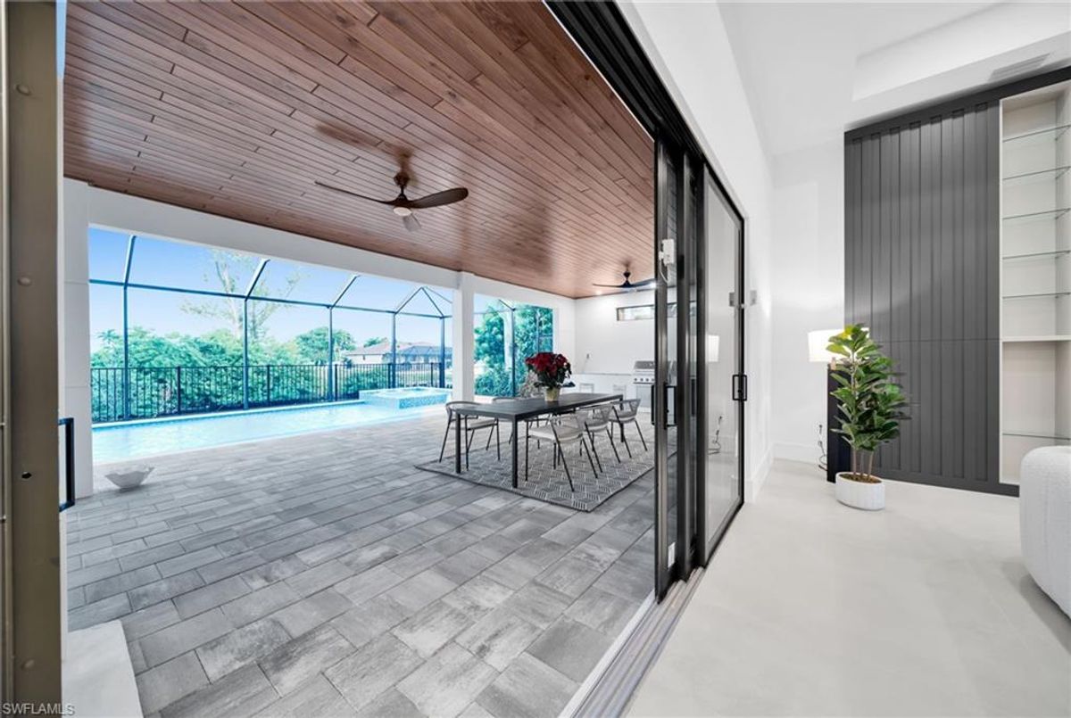 Gulf-Access Contemporary Estate – Luxury Waterfront Living at Its Finest Discover the perfect blend of modern design, coastal sophistication, and Florida comfort in this custom-built Gulf-access residence. Every detail of this home reflects thoughtful craftsmanship and timeless style.Set on a prime waterfront lot, the exterior showcases striking architectural tile accents, a durable tile roof, and impact-resistant doors and windows, offering both elegance and peace of mind. Step inside to a breathtaking open-concept layout with high ceilings and walls of built-ins that fill the space with elegance. Expansive 90-degree sliders open completely, creating a seamless transition between indoor and outdoor living and framing serene canal views. The owner’s suite serves as a luxurious retreat with dual rain shower heads, double vanities, and custom walk-in closets. Three additional bedrooms provide comfort and privacy for family and guests.At the heart of the home, the chef-inspired kitchen combines beauty and performance with European-style cabinetry, waterfall-edge island, and premium KitchenAid appliances, including a glass cooktop—a space designed for both entertaining and everyday living.Enjoy Florida’s outdoor lifestyle with a covered lanai, wood-accented ceilings, fireplace and a fully equipped summer kitchen. The resort-style pool offers the perfect setting to unwind and soak in the sunshine while overlooking the tranquil waterway.For boating enthusiasts, Gulf access provides a gateway to endless waterfront adventures right from your backyard .This home represents modern waterfront luxury at its peak—crafted with superior finishes, elegant design, and effortless functionality.Schedule your private tour today and experience the refined elegance and coastal charm that define this modern Gulf-access masterpiece.