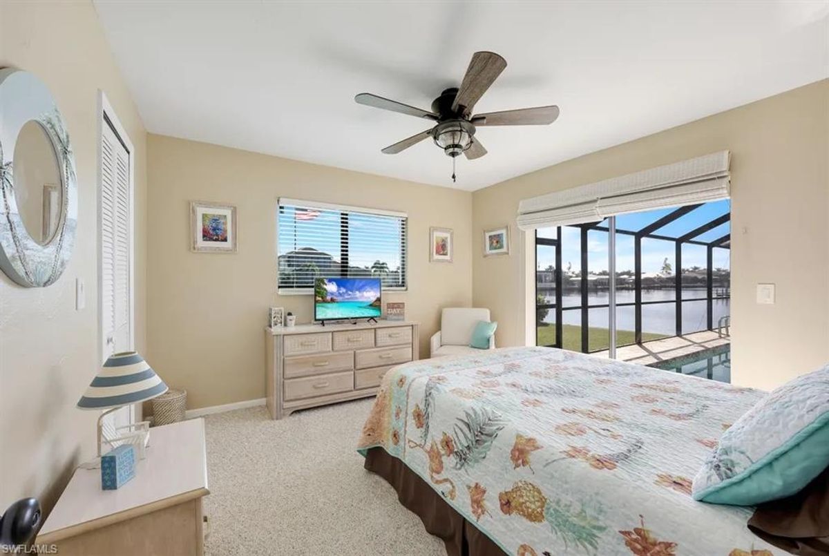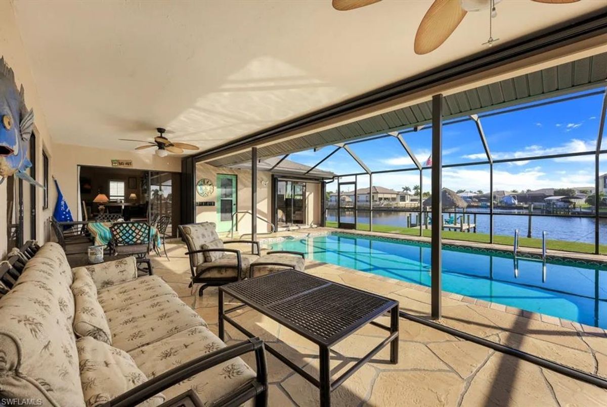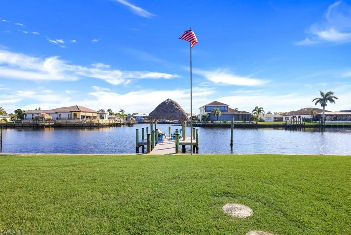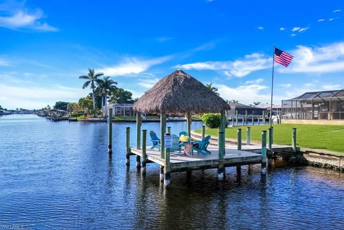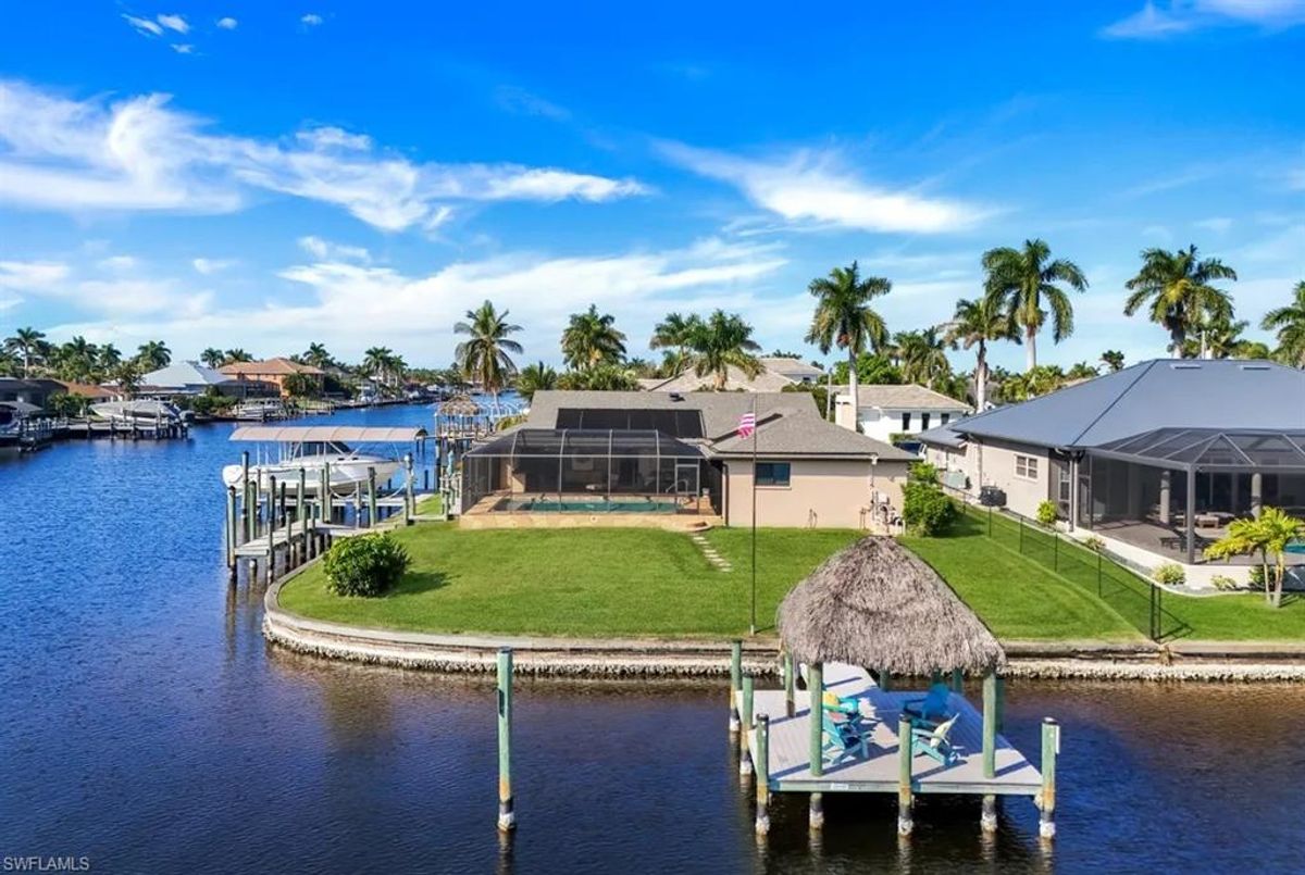 A Boater’s Paradise in an Upscale, established Waterfront Community with Many new homes. Thinking of building? This home sits on the homesite you’ve dreamed about! Perfect for the avid boater seeking an upscale coastal lifestyle, this property sits in one of Cape Coral’s most desirable waterfront areas—surrounded by newly built luxury homes and offering unmatched access to world-class boating, dining, and recreation. Enjoy effortless boat trips to Tarpon Point and Cape Harbour, where you’ll find outstanding waterfront restaurants, marina amenities, and entertainment. Excellent fishing waters are just minutes from your dock. Outdoor enthusiasts will also appreciate being able to walk to Rotary Park, featuring scenic walking trails, exercise classes, a butterfly house, and a popular dog park. This RARE one-of-a-kind CUL- DE-SAC lot is situated at the intersection of TWO 200-ft wide canals and offers over 240 ft of waterfront—an extraordinary setting with room for all your boating needs. Accommodate a 54' Hatteras, plus a 10,000-lb lift for your Boston Whaler Outrage, with plenty of space for additional watercraft. The home itself is impeccably maintained and features valuable upgrades: New roof (2022) New A/C (2024), boat canopy 2022 Impact windows (2019), impact front door, accordion shutters at patio with all pocket sliding doors. Create your own "fishing" photo wall from endless catches at the dock and nearby island of Sanibel, Captiva and Fort Mers beach and Boca Grande. Relax in your large solar heated pool or have sunset drink at your patio bar. Use it possibly as a seasonal rental now while you design your future dream home—this flexible opportunity fits both investors and long-term planners. Enjoy Cape Coral’s beloved holiday Christmas boat parade right from your dock. Take in breathtaking sunrises in the morning at your large tiki and unwind with sunsets from the south-side dock later in the day. A 35-ft patio provides the perfect place to relax and watch the avenue of multi boats glide by. This property blends exceptional waterfront living with investment potential—a true gem for those who want the ultimate boating lifestyle.