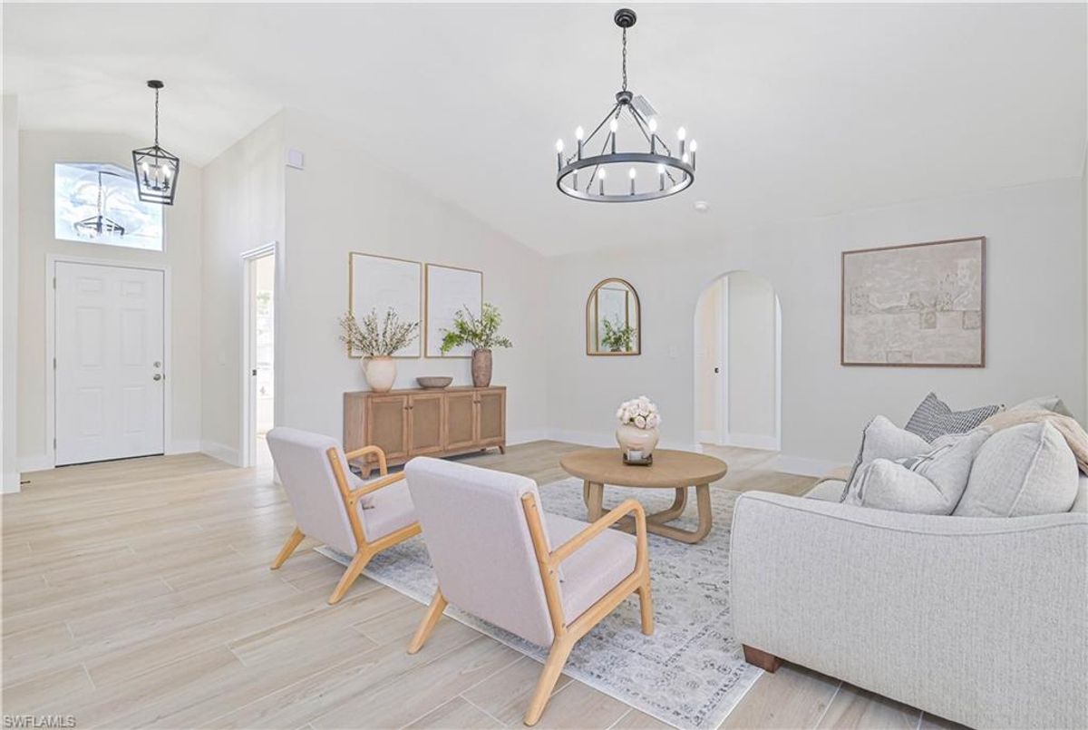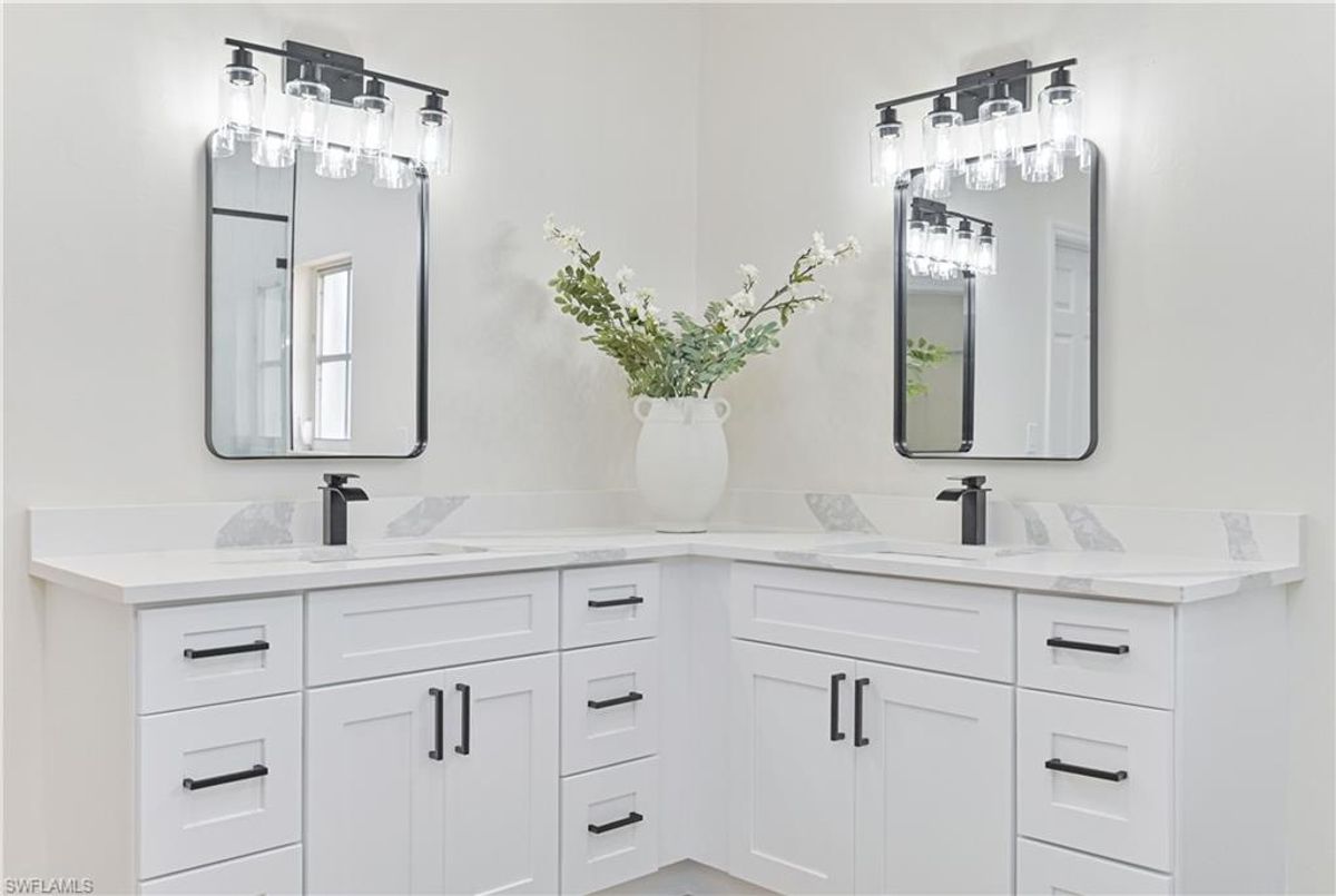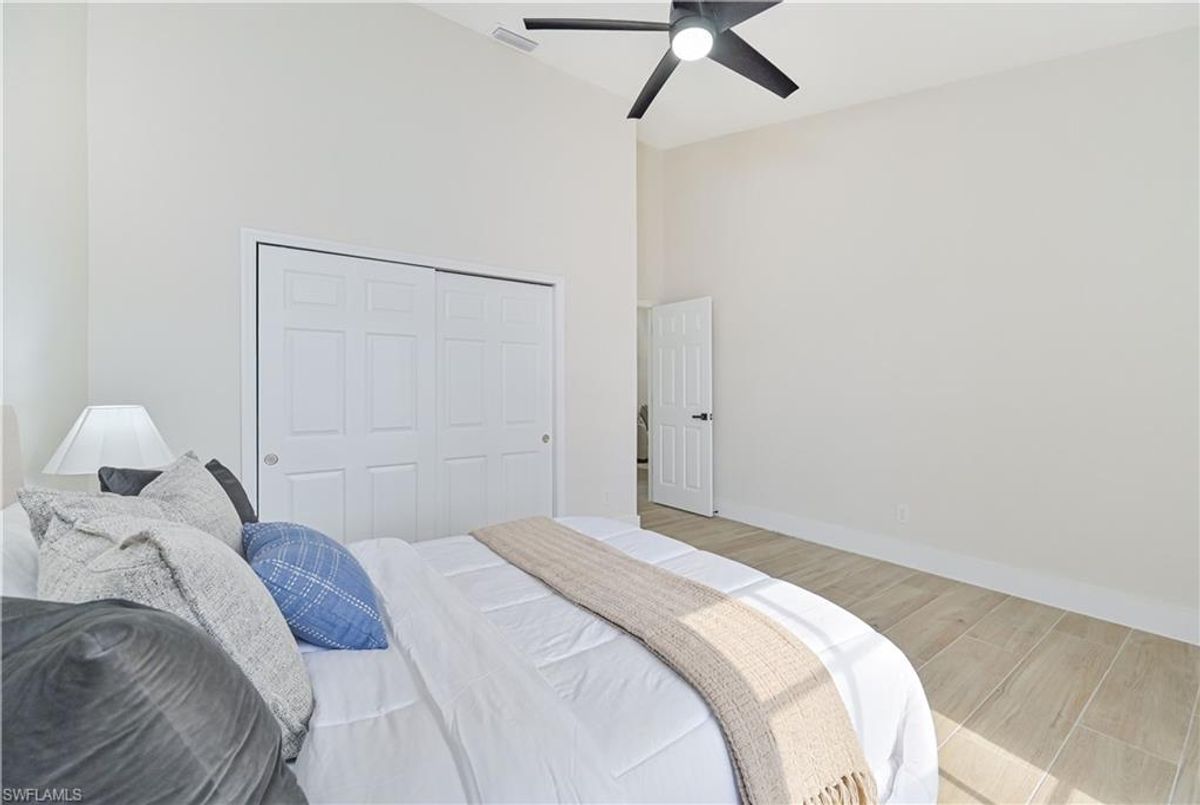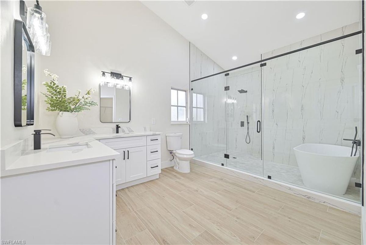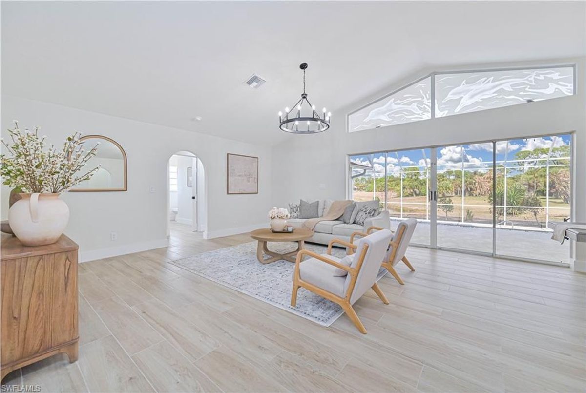 Multiple offers! Welcome to this Stunning renovated Pool home in Lehigh Acres. Huge property with 3 bedrooms+ den, 3 bathrooms and 2 car garages. Very rare opportunity with 2 primary suites with Pool bath and one of the kind huge outdoor pool area! The property has been totally renovated from top to bottom, Step inside, you'll be greeted by stunning wood plank tile that graces the entire house with 5 inches base board gives it the modern feel. The living room, open concept with kitchen and dining area offers great practical space for family and friends gathering and partying. Nice den/office in the front of the home give it much needed separation for all the work to be done. This luxury kitchen carries brand new hardwood cabinets with soft closing features, beautiful calacatta quartz countertop with waterfall, up to the ceiling backsplash with floating shelve, not to mention 2 huge pantries just off the kitchen and brand-new stainless-steel appliances. Step inside the huge primary bedroom with vaulted ceiling and the one of the kind spas like primary bathroom literally take your breath away when you step in. The shower and tub area is the largest I have ever seen. Every bedroom is very large along with second primary tuck away that comes with the pool bathroom. Home has brand-new LED lighting throughout the entire house. Property is in X zone, so you don’t have to worry about flood insurance. Perfect screen in cage with large cover area oversees practical backyard and lake provides endless Florida outdoor living lifestyle with privacy. This is a very rare large property with 2 primary suites and pool bathroom with a huge outdoor patio area. You do not want to miss this one of the kind properties