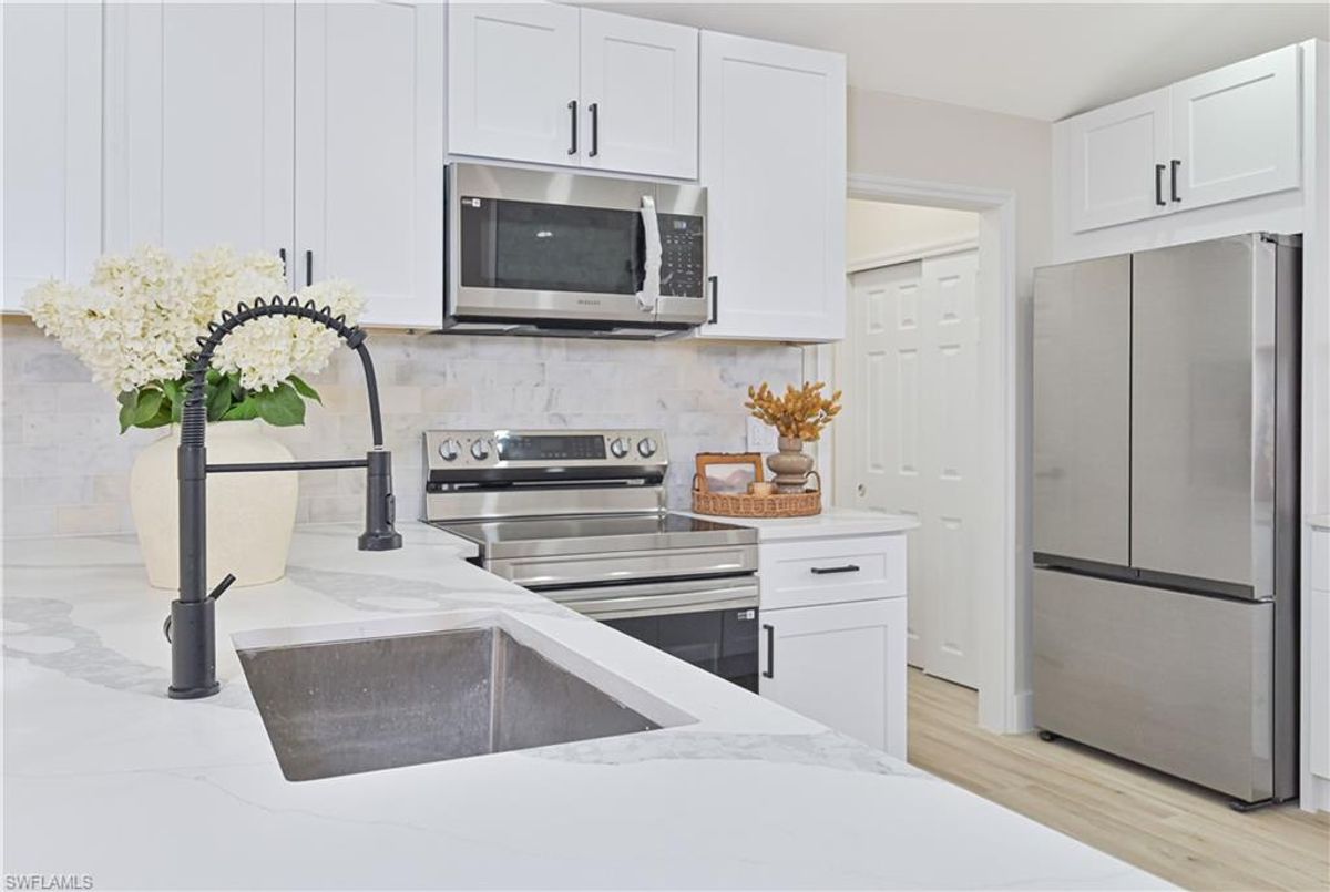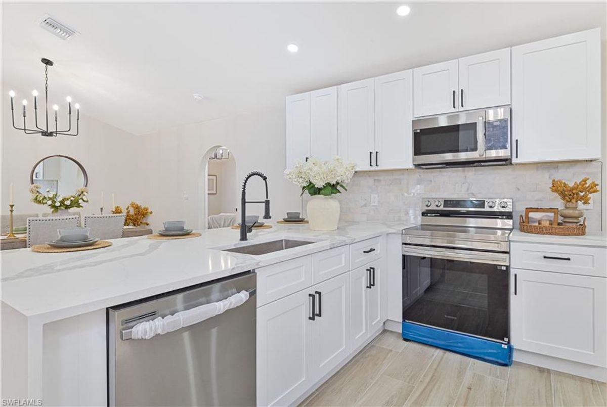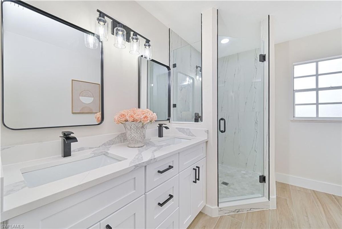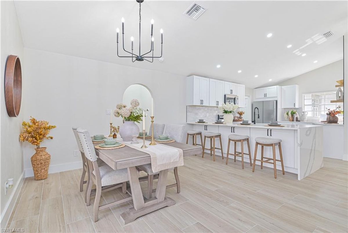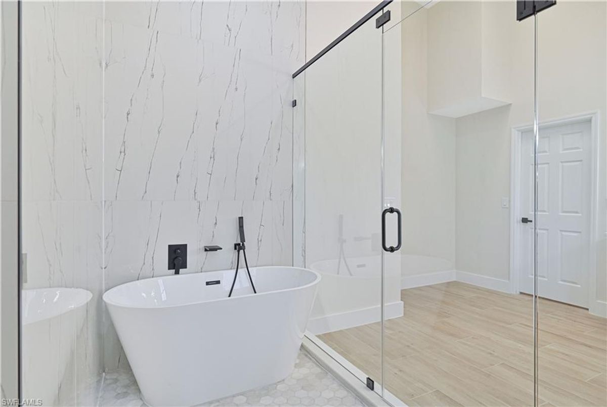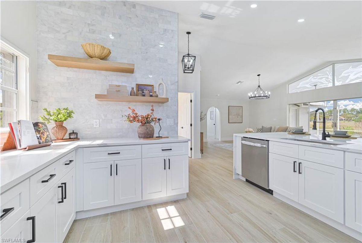 Multiple offers! Welcome to this Stunning renovated Pool home in Lehigh Acres. Huge property with 3 bedrooms+ den, 3 bathrooms and 2 car garages. Very rare opportunity with 2 primary suites with Pool bath and one of the kind huge outdoor pool area! The property has been totally renovated from top to bottom, Step inside, you'll be greeted by stunning wood plank tile that graces the entire house with 5 inches base board gives it the modern feel. The living room, open concept with kitchen and dining area offers great practical space for family and friends gathering and partying. Nice den/office in the front of the home give it much needed separation for all the work to be done. This luxury kitchen carries brand new hardwood cabinets with soft closing features, beautiful calacatta quartz countertop with waterfall, up to the ceiling backsplash with floating shelve, not to mention 2 huge pantries just off the kitchen and brand-new stainless-steel appliances. Step inside the huge primary bedroom with vaulted ceiling and the one of the kind spas like primary bathroom literally take your breath away when you step in. The shower and tub area is the largest I have ever seen. Every bedroom is very large along with second primary tuck away that comes with the pool bathroom. Home has brand-new LED lighting throughout the entire house. Property is in X zone, so you don’t have to worry about flood insurance. Perfect screen in cage with large cover area oversees practical backyard and lake provides endless Florida outdoor living lifestyle with privacy. This is a very rare large property with 2 primary suites and pool bathroom with a huge outdoor patio area. You do not want to miss this one of the kind properties