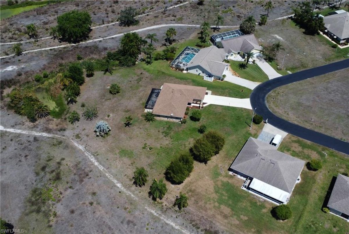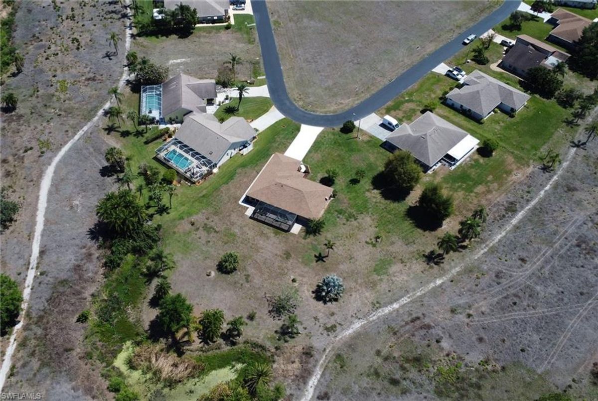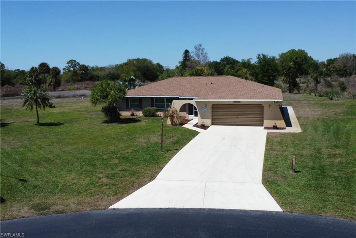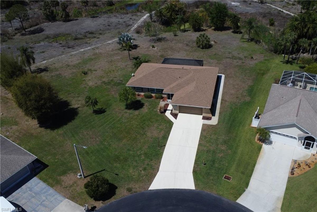 Welcome to your private slice of paradise in the heart of Lehigh Acres! Situated on an oversized 0.73-acre homesite, this beautifully maintained and fully furnished 3-bedroom + OVERSIZED Den, 2.5-bath home offers exceptional space, privacy, and true Florida lifestyle living. The property backs to a former golf course, providing peaceful views and no rear neighbors, creating a quiet and open setting rarely found in the area. Inside, the home features 2,134 square feet of living area under air, including a bright and versatile enclosed sunroom with French doors and hurricane-impact windows that is fully incorporated into the home’s main air-conditioned living space. This flexible area is perfect for a home office, fitness room, media lounge, or additional entertaining space. Outdoor living is a highlight with a spacious 15’ x 36’ screened lanai finished with pavers, ideal for relaxing or hosting gatherings while enjoying the serene backyard setting. The home is further enhanced with hurricane-impact windows and doors throughout and a newer roof, offering both comfort and long-term peace of mind. The property offers approximately 3,181 total square feet of overall structure, which includes the screened lanai and attached 2-car garage, providing generous indoor and outdoor usability. The expansive lot allows ample room for a future pool, detached garage, workshop, or extended outdoor entertaining area while maintaining exceptional privacy. Move-in ready and offered furnished, this property presents a rare opportunity to own a spacious upgraded home on a large estate-style lot with scenic surroundings and strong lifestyle appeal.