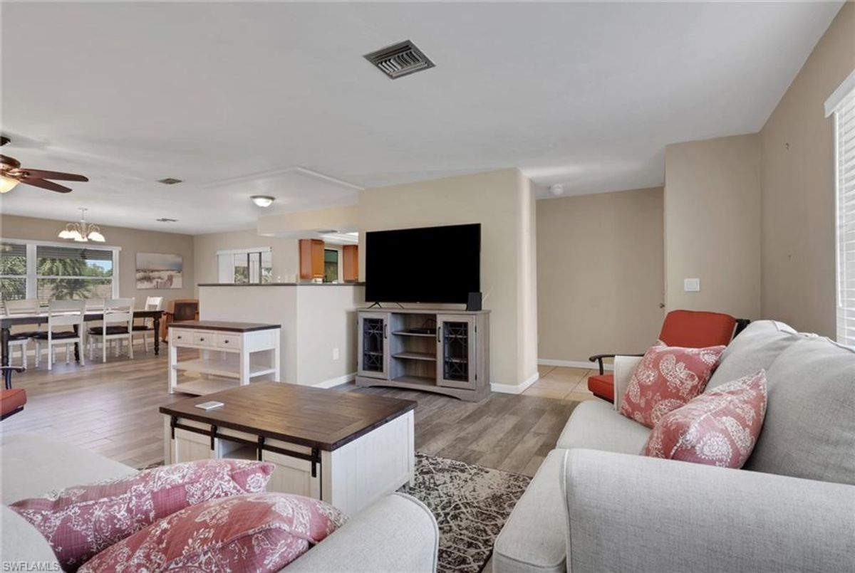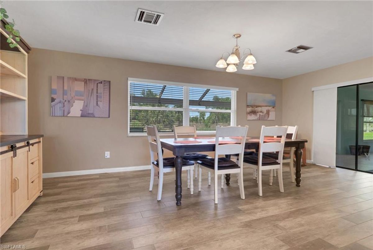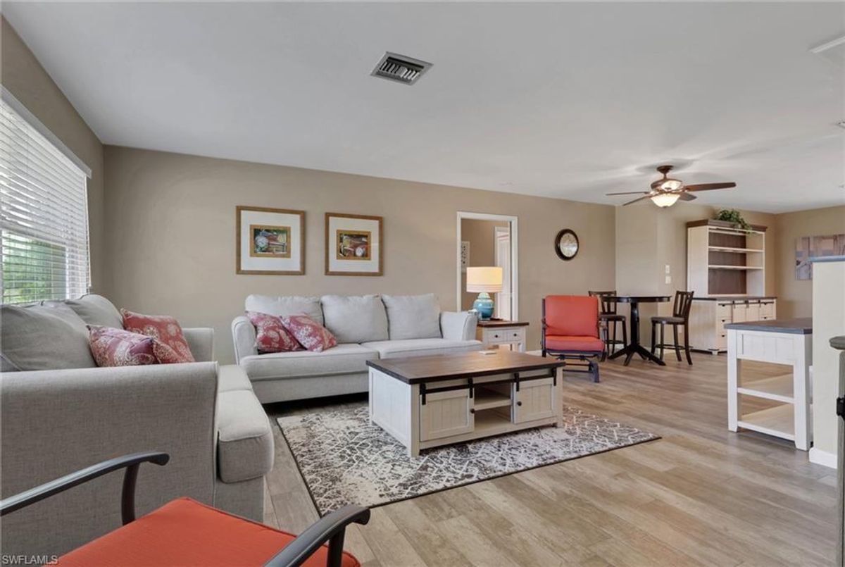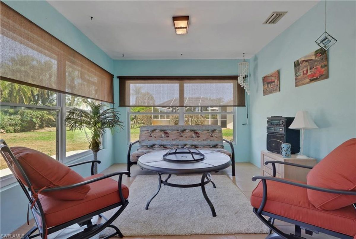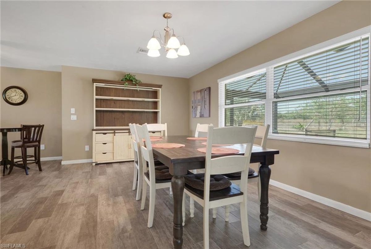 Welcome to your private slice of paradise in the heart of Lehigh Acres! Situated on an oversized 0.73-acre homesite, this beautifully maintained and fully furnished 3-bedroom + OVERSIZED Den, 2.5-bath home offers exceptional space, privacy, and true Florida lifestyle living. The property backs to a former golf course, providing peaceful views and no rear neighbors, creating a quiet and open setting rarely found in the area. Inside, the home features 2,134 square feet of living area under air, including a bright and versatile enclosed sunroom with French doors and hurricane-impact windows that is fully incorporated into the home’s main air-conditioned living space. This flexible area is perfect for a home office, fitness room, media lounge, or additional entertaining space. Outdoor living is a highlight with a spacious 15’ x 36’ screened lanai finished with pavers, ideal for relaxing or hosting gatherings while enjoying the serene backyard setting. The home is further enhanced with hurricane-impact windows and doors throughout and a newer roof, offering both comfort and long-term peace of mind. The property offers approximately 3,181 total square feet of overall structure, which includes the screened lanai and attached 2-car garage, providing generous indoor and outdoor usability. The expansive lot allows ample room for a future pool, detached garage, workshop, or extended outdoor entertaining area while maintaining exceptional privacy. Move-in ready and offered furnished, this property presents a rare opportunity to own a spacious upgraded home on a large estate-style lot with scenic surroundings and strong lifestyle appeal.