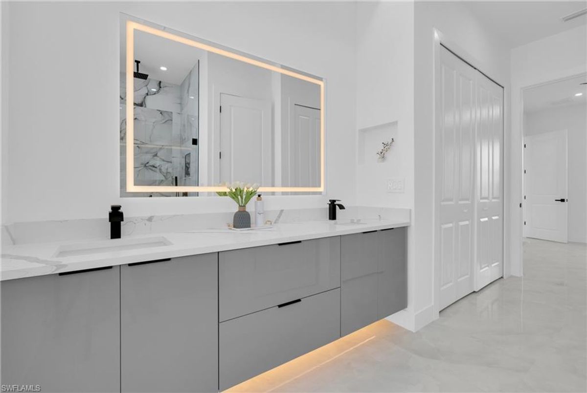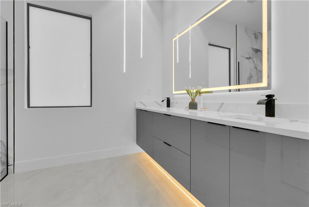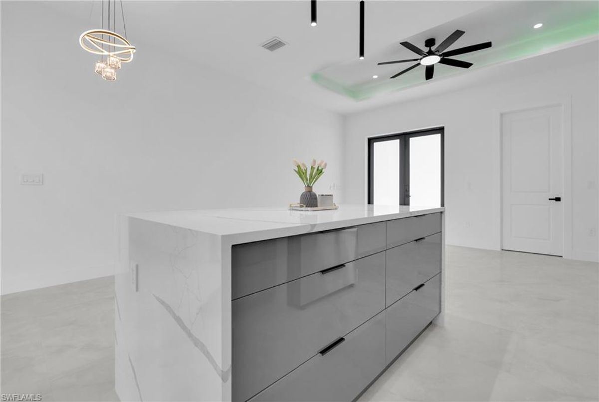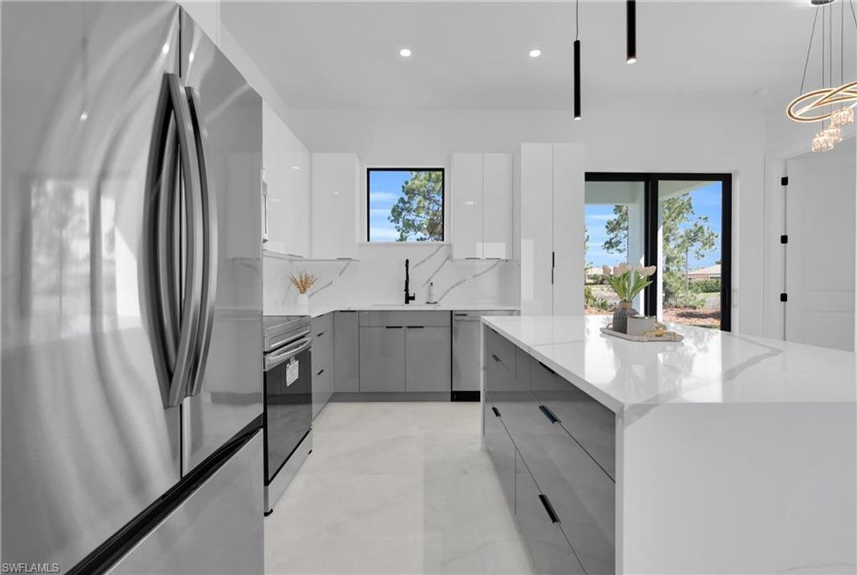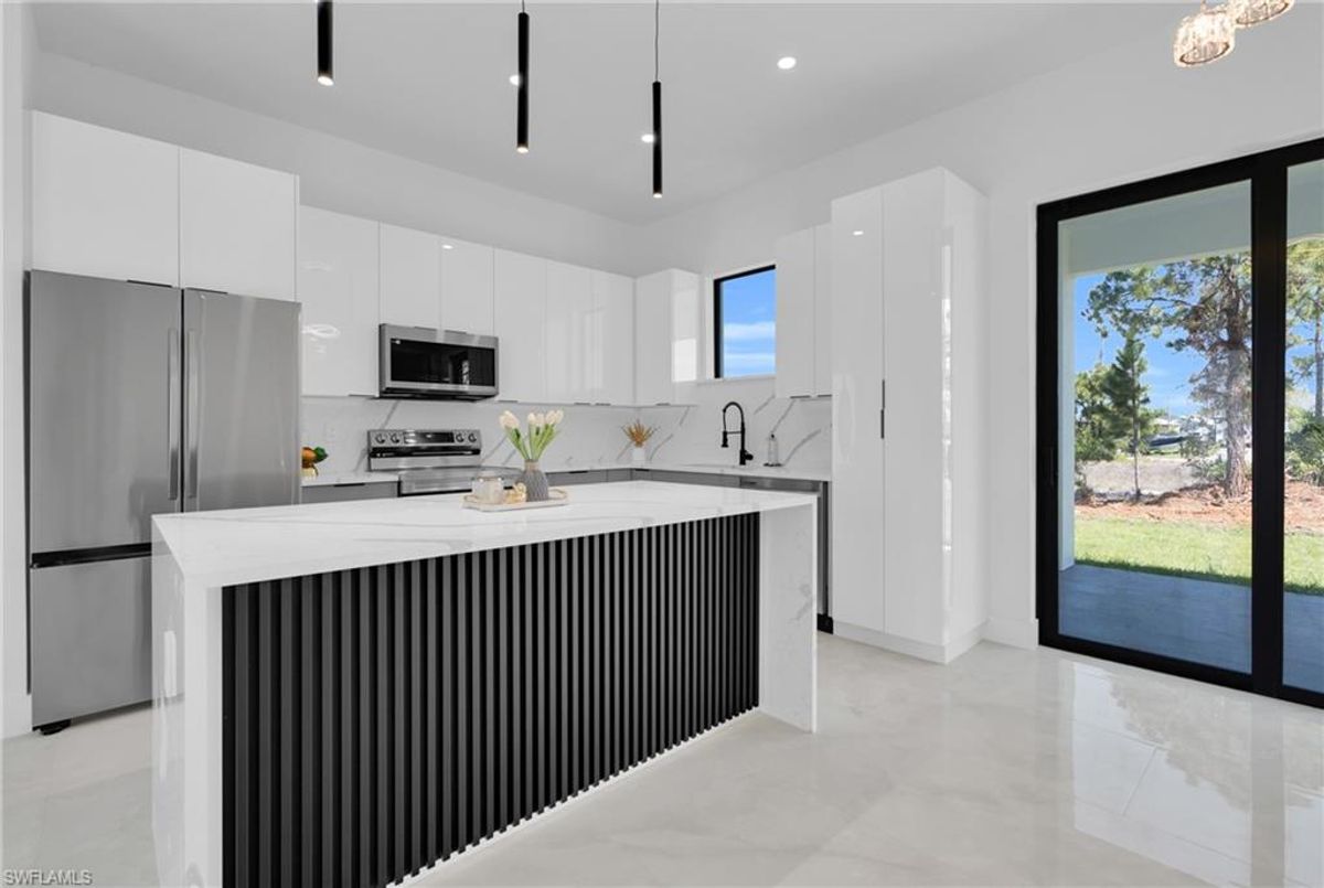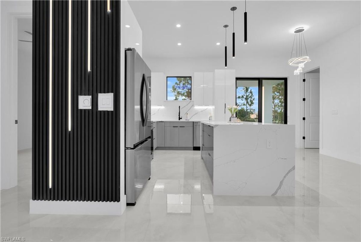 Beautiful home for sale in one of the best location in Lehigh Acres. This modern residence features impact windows and doors, porcelain tile throughout, and elegant, high-end finishes. The kitchen and bathrooms showcase stunning calacatta surfaces, complemented by custom cabinetry throughout the home. Designed with clean, contemporary style, every space feels bright, functional, and refined. This beautiful home features a modern LED lightning design. The property also includes a fully automatic sprinkler system covering the entire home and yard for easy maintenance. A perfect combination of style, comfort, and location. Make your offer today!!!