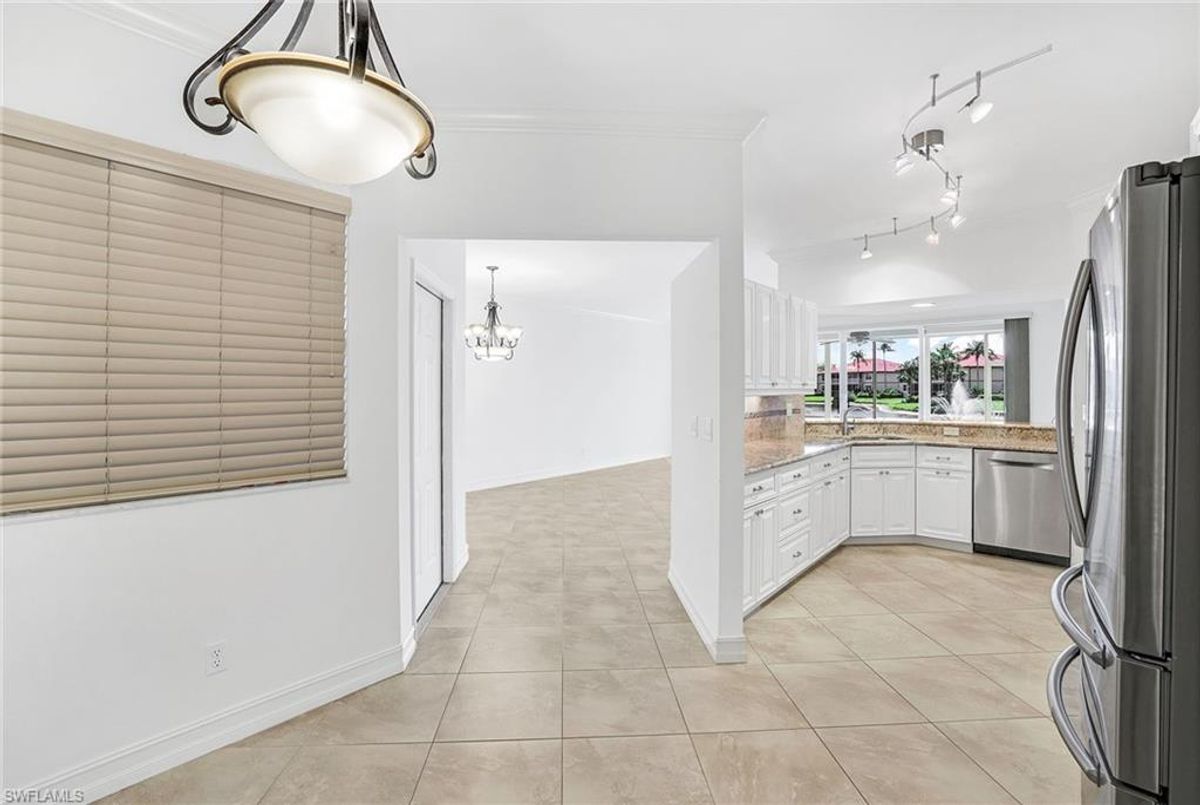 This exceptional three-bedroom villa offers a rare opportunity with its sought-after southwest-facing position, providing breathtaking long lake views and a serene, private setting. Recent upgrades include a fully redesigned kitchen featuring white wood cabinetry, under-cabinet lighting, a convenient trash rollout system, modern appliances and elegant granite countertops. The primary bath has been transformed with new vanities and a spa-like shower. Additional enhancements include upgraded electrical systems, new ceiling fans, light fixtures and fresh flooring throughout, low-maintenance decorative tile in the living areas and plush upgraded carpet in the bedrooms. New 5-inch baseboards, crown molding, and recently replaced roofs, paint and landscaping further elevate this home’s appeal. The lanai is equipped with electric shutters, and the home features custom Hunter Douglas window treatments. The association has recently re-landscaped the grounds, enhancing the overall charm of the community. A one-car garage offers direct access to the villa. Enjoy the convenience of single-family home living without maintenance. This pet-friendly community welcomes two dogs or cats up to 50 pounds combined. Docks are also available for lease or purchase from other owners.