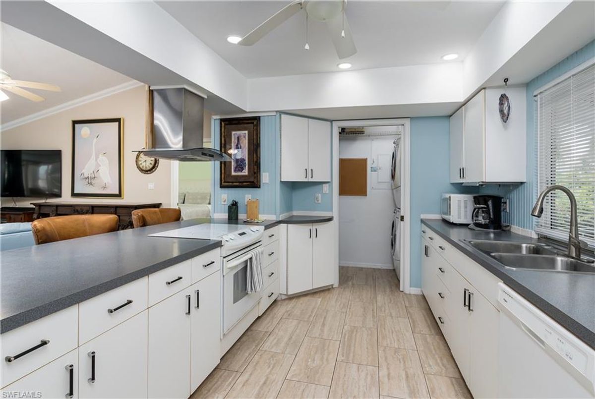 JUST 2 BLOCKS TO THE BEACH! Location! Location! Location! Live the Florida lifestyle in this spacious Key West style home situated on a quiet street just 2 blocks from Marco's gorgeous, white sand beach and the sparkling Gulf of Mexico! Enter into the spacious foyer with closets, take the short flight of stairs to a fantastic Great Room with vaulted ceilings and natural light from two skylights. 16 ft sliding glass doors lead to a 41'x10' screened-in lanai; the perfect place to enjoy your favorite morning beverage and watch the sunrise. You can also wake up to those gorgeous orange sunrises from your primary bedroom. Adjacent to the Great Room is a dining area with slider to yet another screened-in lanai; this one facing west for spectacular sunsets. Kitchen boasts an abundance of counter space, including large breakfast bar, and pass-thru window to the west facing lanai. In the kitchen there is a pantry and laundry closet with newer washer and dryer. The Primary Bedroom sits on its own separate wing giving you privacy when entertaining guests. It also has a sliding door to front lanai. In the primary bath you will find dual sinks, 2 closets, new tile flooring, and large walk-in tiled shower. Bedrooms 2 and 3 have impressive bay windows offering tropical views. Newer wood-look and tile flooring. HUGE covered area fits 6 cars plus has a separate storage room. The pool and chain linked fence were installed in 2020. This is a perfect home to call your own or a great investment property. Walking distance to the 'Marco Walk' aka 'Plaza' where you can enjoy a movie, fine dining, great happy hours, holiday festivities and boutiques. Also nearby is the Art League and mini golf. This home is located in Unit 10; one of the most sought after areas on the Island...Beach and Activities a 'rock throw' away. Own your own beach house today!