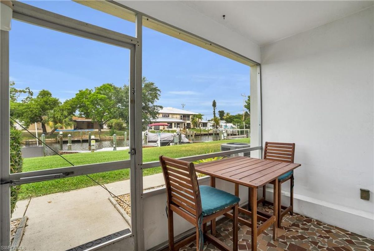 Calling all boaters! This condo offers direct sailboat access with no bridges to open water, a rare find in Cape Coral's highly desirable Yacht Club area. Newly updated and turnkey ready, it features a new stainless steel refrigerator and dishwasher, impact resistant windows, and a remodeled kitchen with granite countertops and ample counter space. AC 2022 & HOA covers flood insurance. Enjoy stunning sunsets from your lanai and take advantage of the new 10,000-pound deeded boat lift, with just 15 minutes to the Gulf of Mexico. Conveniently located near restaurants, grocery stores, and shopping, it's a short drive to Cape Coral Beach, downtown Cape Coral, Fort Myers Beach (20 minutes), and Sanibel (30 minutes). Both bedrooms offer water views and large closets. The community pool overlooks the canal and includes a grill area, perfect for outdoor entertaining. Future developments, including the $100 million Bimini Square Project, The Cove Community, Yacht Club renovation and beach expansion, and Deep Lagoon waterfront restaurant, retail shops, luxury apartments, and Lee Health Medical facility, add to the appeal. These units do not become available often. This home is perfect for a second home, vacation rental, or long-term investment. Don't miss this fantastic opportunity to live in a boater's paradise!