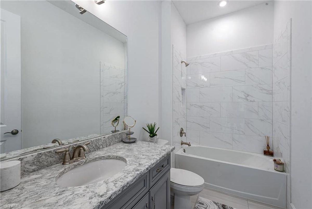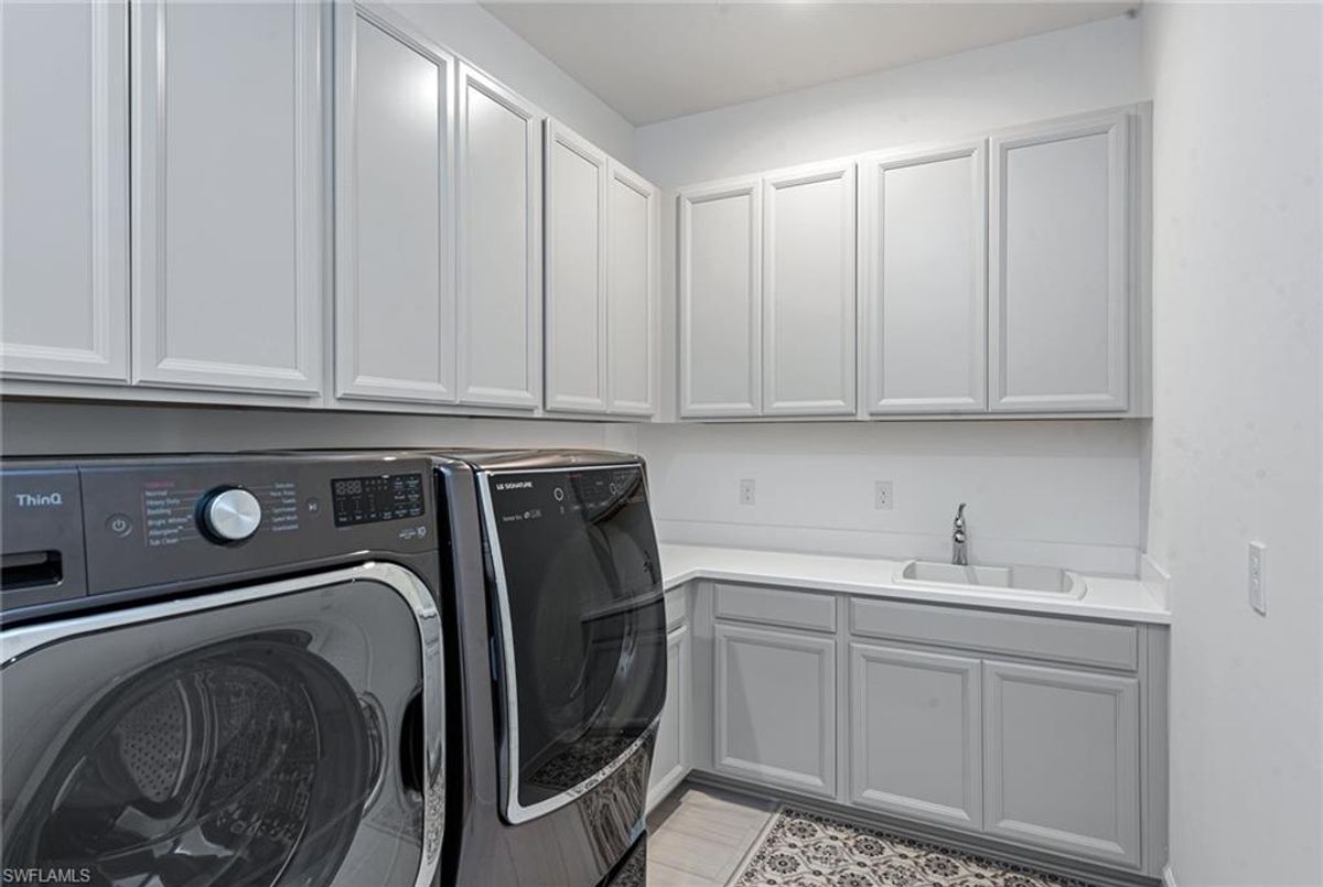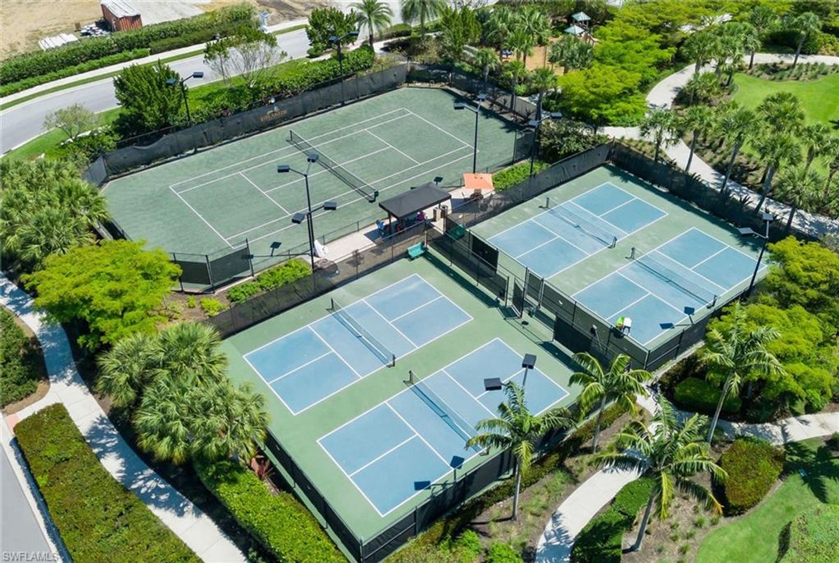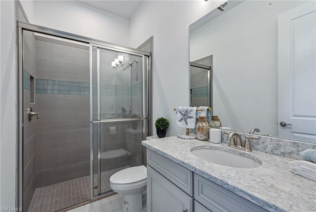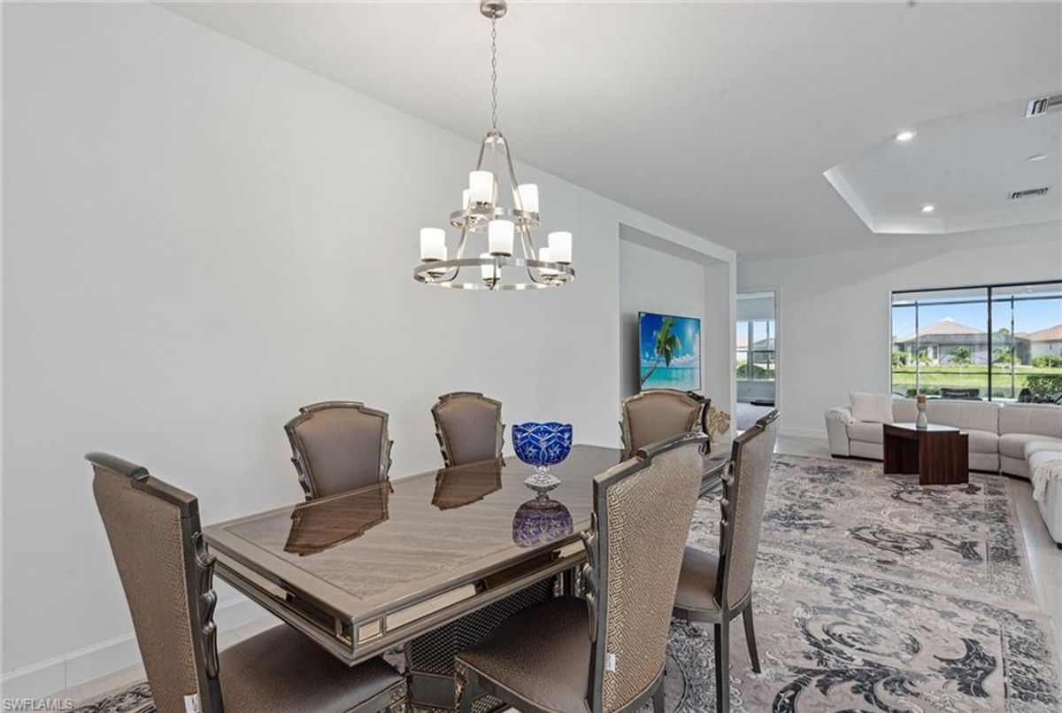 This stunning like-new modern single-family pool home, built in 2022, is in the highly sought-after Esplanade at Hacienda Lakes. With tranquil water views, this 2,929-square-foot popular Pallazio residence offers three bedrooms plus a den, three full baths and a two-car garage. Designed with a dramatic double door entry into a massive great room that opens up to the outside, this home ideally blends comfort with sophisticated style. Inside, you’ll find extensive custom details and a thoughtfully designed split-bedroom layout with 10-foot ceilings, elegant tile flooring and recessed lighting. Natural light floods the living areas through abundant windows. The kitchen is a chef’s dream, featuring an extended layout with shaker-style cabinets with under-cabinet lighting, a tile backsplash, quartz countertops, exquisite fixtures, walk-in pantry and a large island with a prep sink with storage. The upgraded appliances include a gas cooktop with a warming tray and hood, double-wall oven, microwave, French door refrigerator, dishwasher and a wine refrigerator. The heart of the home is the expansive great room, with upgraded pocket sliders on both sides that open to the extended lanai, offering seamless indoor-outdoor living. The screened lanai, with brick pavers, boasts a heated pool and spa with a waterfall feature, and a large covered outdoor living area for ultimate relaxation. Additionally, plumbing and electrical are installed for a future outdoor kitchen. The owner’s suite is a luxurious retreat with tray ceilings, bay windows and an en-suite bath that includes a huge walk-in shower with multiple shower heads, a rainfall showerhead and benches. The dual sink vanity with a makeup counter and full-width mirror, along with a linen closet and a large walk-in closet with shelving, completes this elegant space. The guest bedrooms are well-appointed, one featuring an adjacent bath with a shower-tub combo and the other offering an en-suite bath with a walk-in shower with glass enclosure. The versatile den can serve as an office or study, providing additional space to suit your needs. Practical features include a central vacuum system, security system, and storm protection with impact windows and shutters. The laundry room offers a utility sink with counter space, ample storage cabinets, and extra-large capacity LG front-load washer and dryer units. The wide brick paver driveway and tile roof enhance the home's exterior appeal, and the exterior bricks, including those on the lanai, were recently sealed for added durability. Residents enjoy a resort lifestyle with access to the clubhouse, planned events, a well-equipped fitness room, a resort-style heated pool and spa, cabanas, a fire pit, tennis and illuminated pickleball courts, a dog park and a playground. Near downtown Naples and Marco Island, this home offers an exceptional lifestyle with easy proximity to beaches, dining, shopping, boating, golf, parks and museums. Furnishings negotiable.