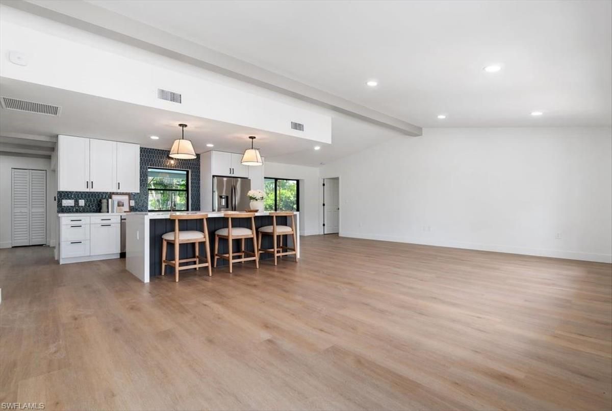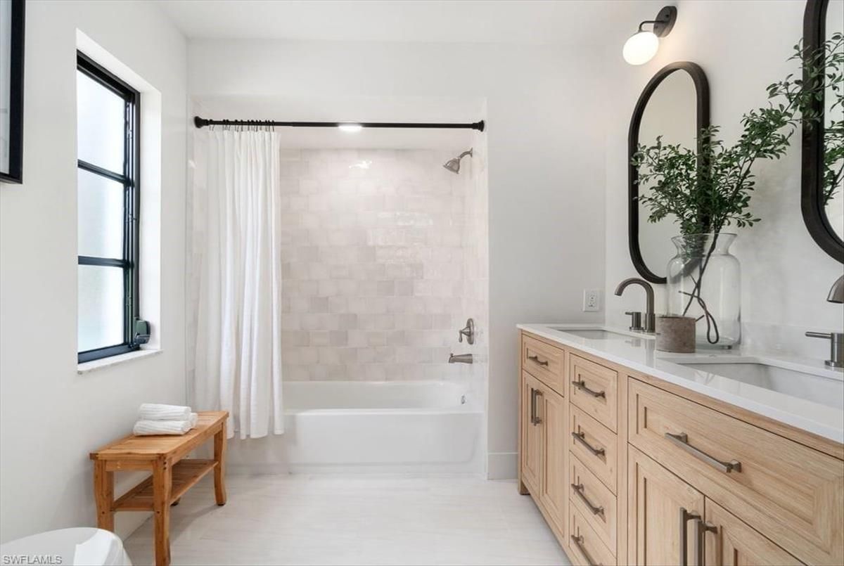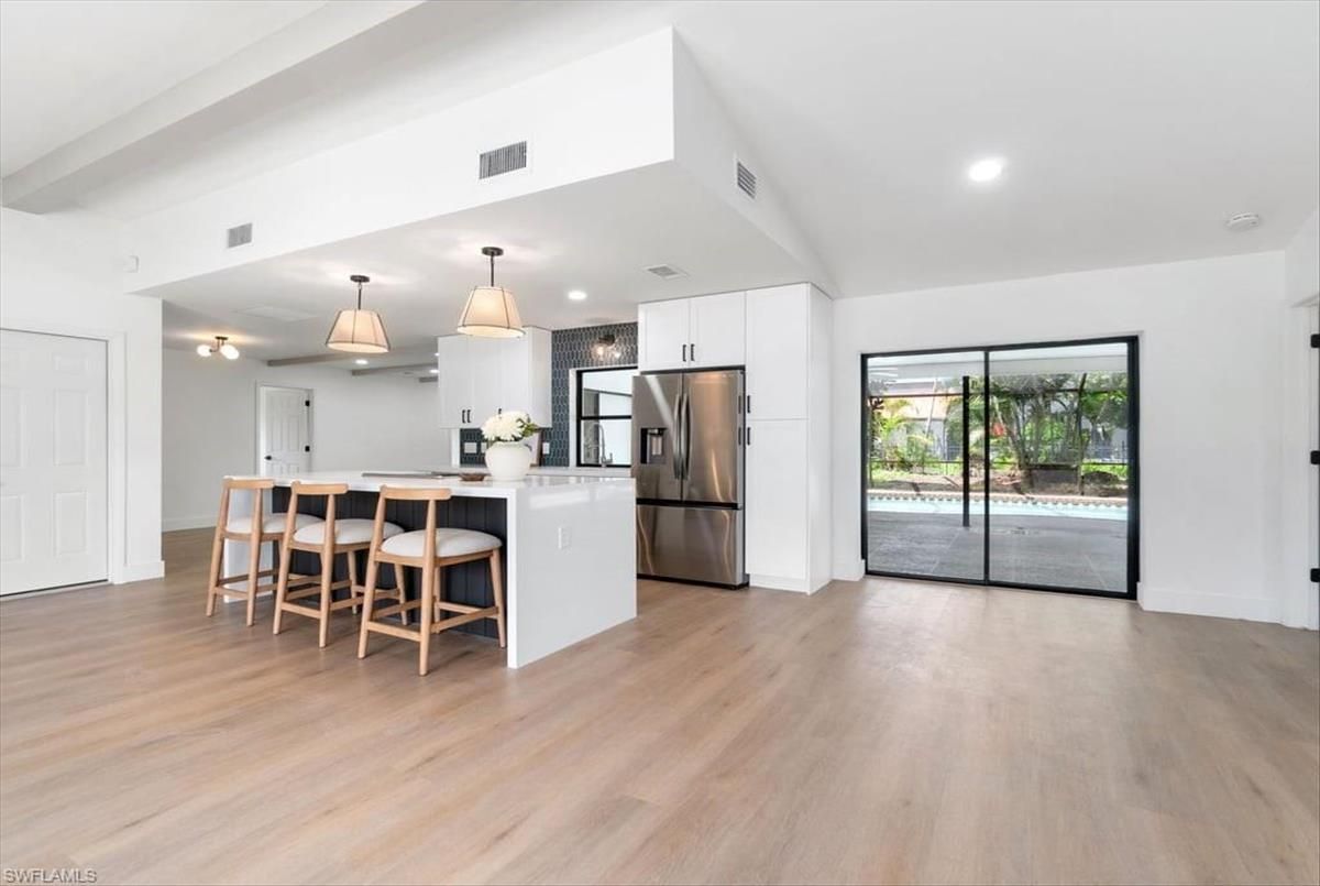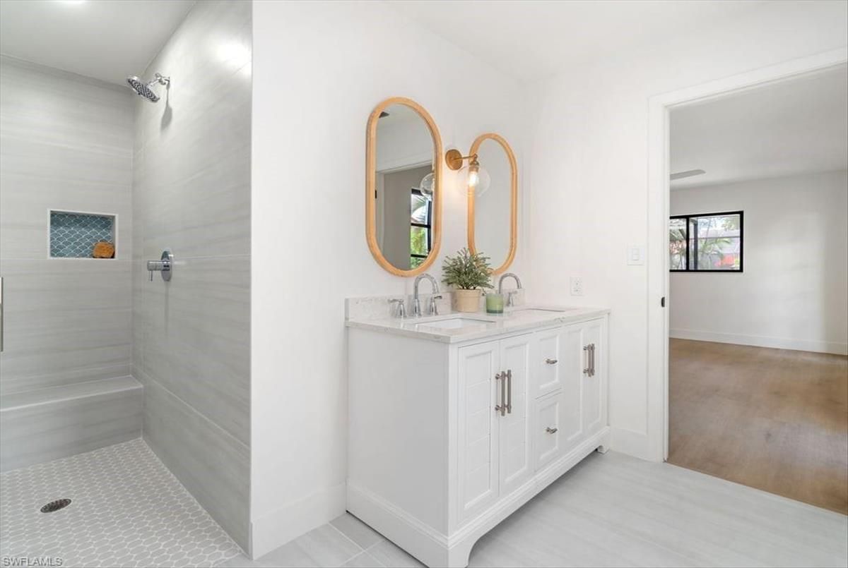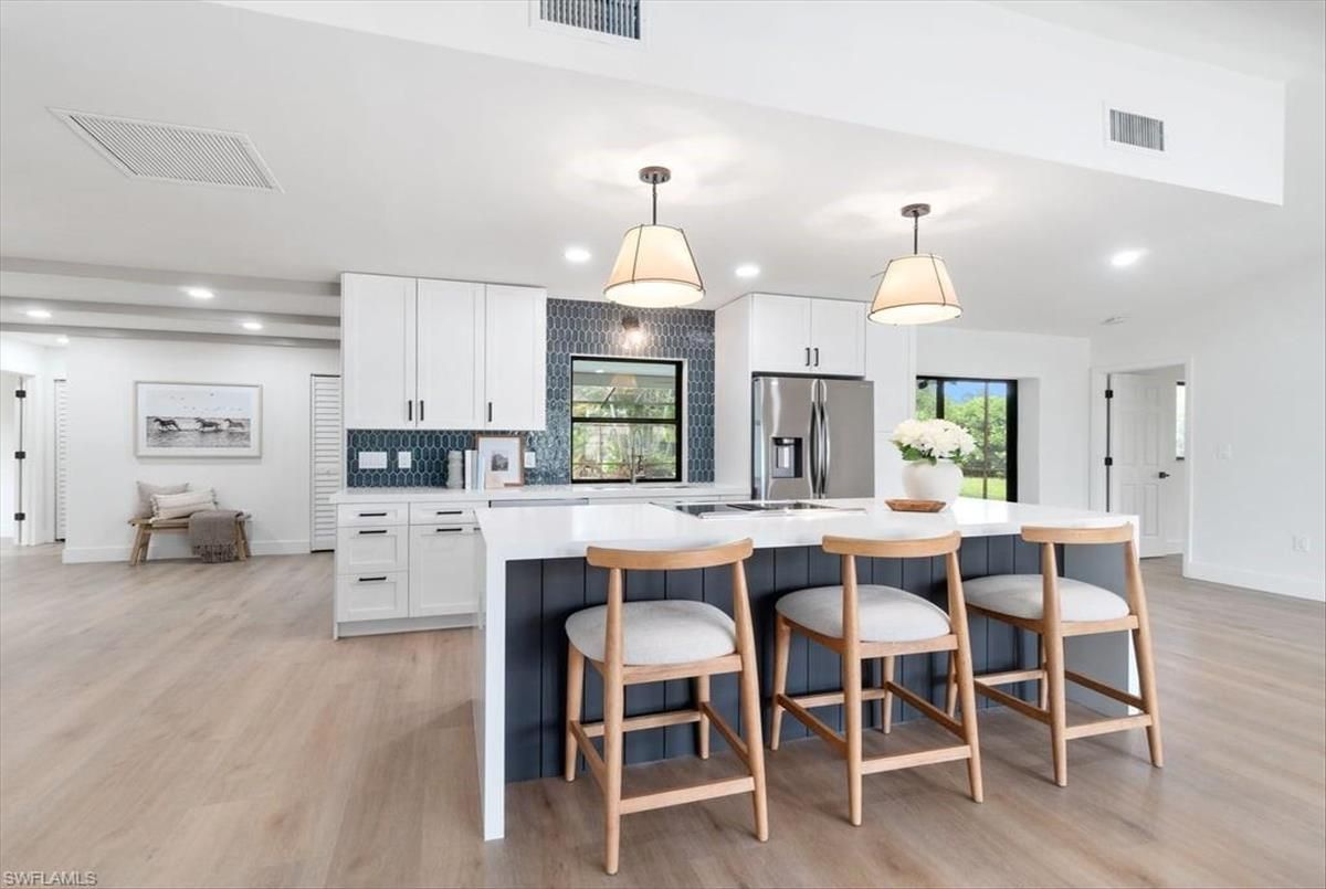 Welcome to your dream home in the sought-after Whiskey Creek community! This stunning 3-bedroom, 2-bathroom house offers a blend of modern elegance and comfortable living. Upon arrival, you'll appreciate the convenience of a circle driveway leading to a spacious 2-car garage. Step inside to discover a beautifully updated interior featuring luxury vinyl plank flooring throughout the living areas and pristine tile in the bathrooms. The heart of the home is the exquisite kitchen, complete with white shaker cabinets, a waterfall quartz countertop island, and new stainless-steel appliances. The open-plan design flows seamlessly into both the family and living rooms, each with sliding pocket doors that open to a screened-in lanai and sparkling pool—perfect for entertaining or relaxing. The primary bedroom is a true retreat, boasting a walk-in closet, dual sinks, and a walk-in shower. Guest bedrooms are thoughtfully located off the family room, providing privacy and convenience. The guest bathroom is equally impressive, featuring dual sinks and a combined tub and shower with a beautiful tile surround. Whiskey Creek is a deed-restricted community with a voluntary membership fee of just $125. Enjoy walking distance to the Whiskey Creek Country Club, ideal for golfers or those looking to dine at its fantastic restaurant. Located just 7 miles from downtown Fort Myers and 10 miles from Fort Myers Beach, this home offers the perfect blend of tranquility and accessibility. Don’t miss the opportunity to make this exquisite house your new home.