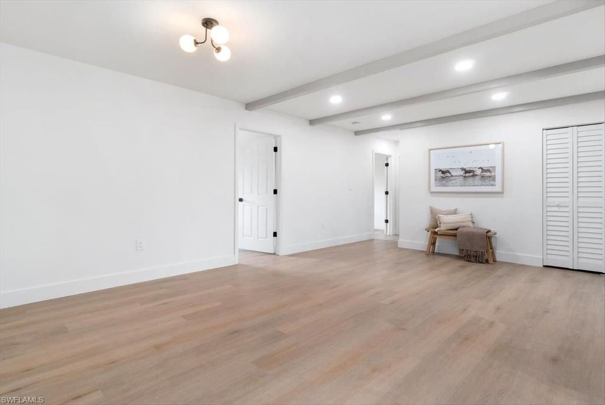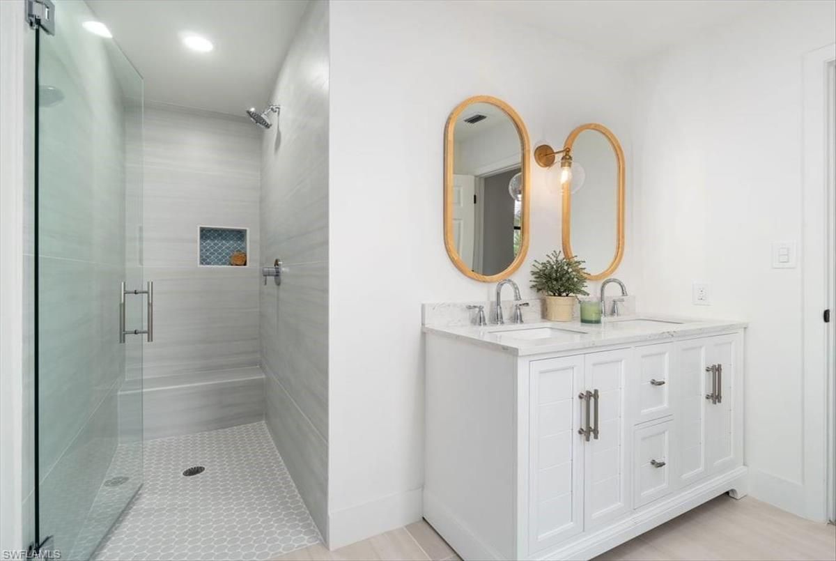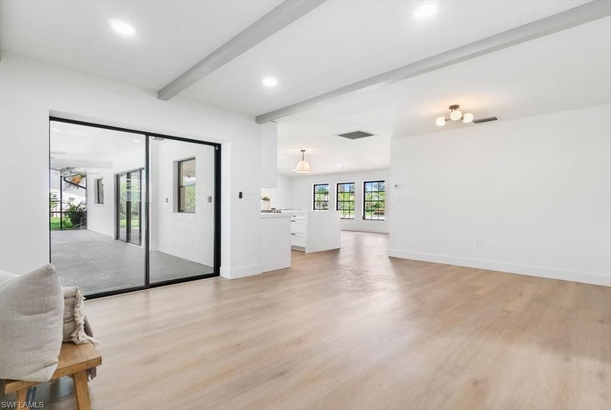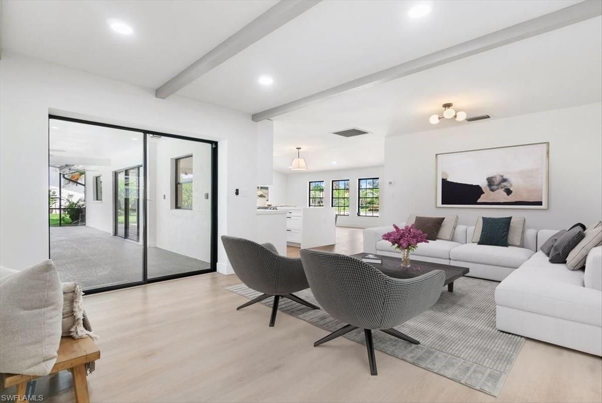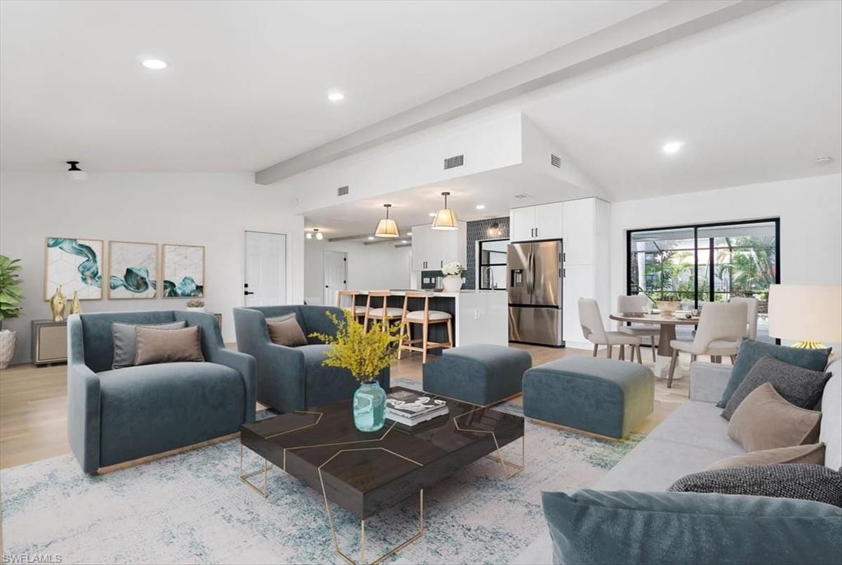 Welcome to your dream home in the sought-after Whiskey Creek community! This stunning 3-bedroom, 2-bathroom house offers a blend of modern elegance and comfortable living. Upon arrival, you'll appreciate the convenience of a circle driveway leading to a spacious 2-car garage. Step inside to discover a beautifully updated interior featuring luxury vinyl plank flooring throughout the living areas and pristine tile in the bathrooms. The heart of the home is the exquisite kitchen, complete with white shaker cabinets, a waterfall quartz countertop island, and new stainless-steel appliances. The open-plan design flows seamlessly into both the family and living rooms, each with sliding pocket doors that open to a screened-in lanai and sparkling pool—perfect for entertaining or relaxing. The primary bedroom is a true retreat, boasting a walk-in closet, dual sinks, and a walk-in shower. Guest bedrooms are thoughtfully located off the family room, providing privacy and convenience. The guest bathroom is equally impressive, featuring dual sinks and a combined tub and shower with a beautiful tile surround. Whiskey Creek is a deed-restricted community with a voluntary membership fee of just $125. Enjoy walking distance to the Whiskey Creek Country Club, ideal for golfers or those looking to dine at its fantastic restaurant. Located just 7 miles from downtown Fort Myers and 10 miles from Fort Myers Beach, this home offers the perfect blend of tranquility and accessibility. Don’t miss the opportunity to make this exquisite house your new home.