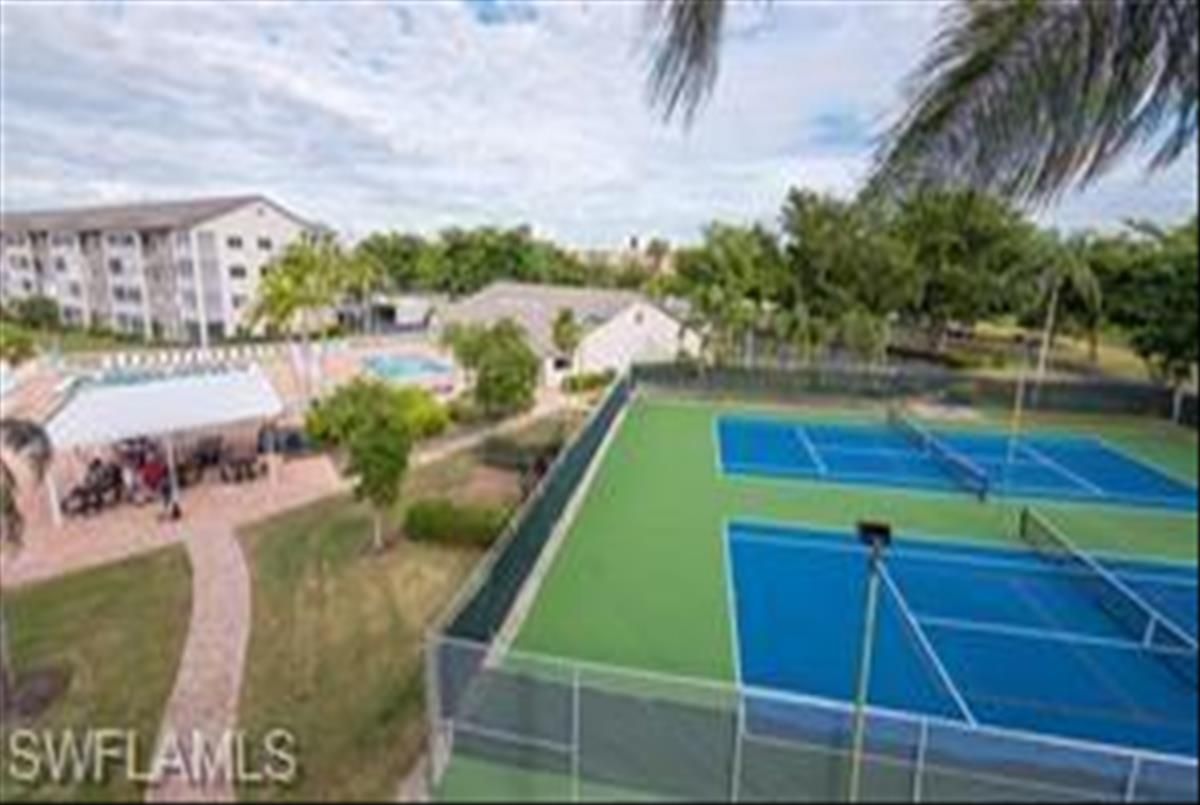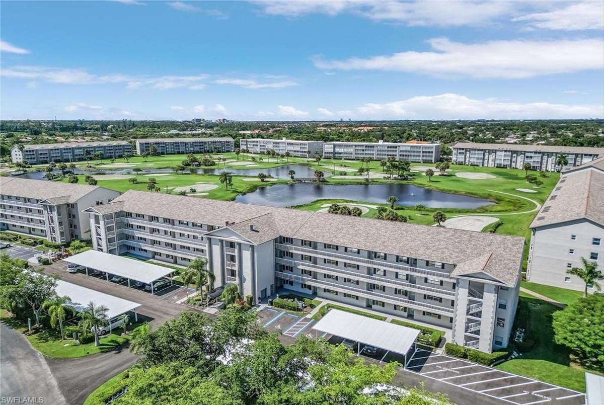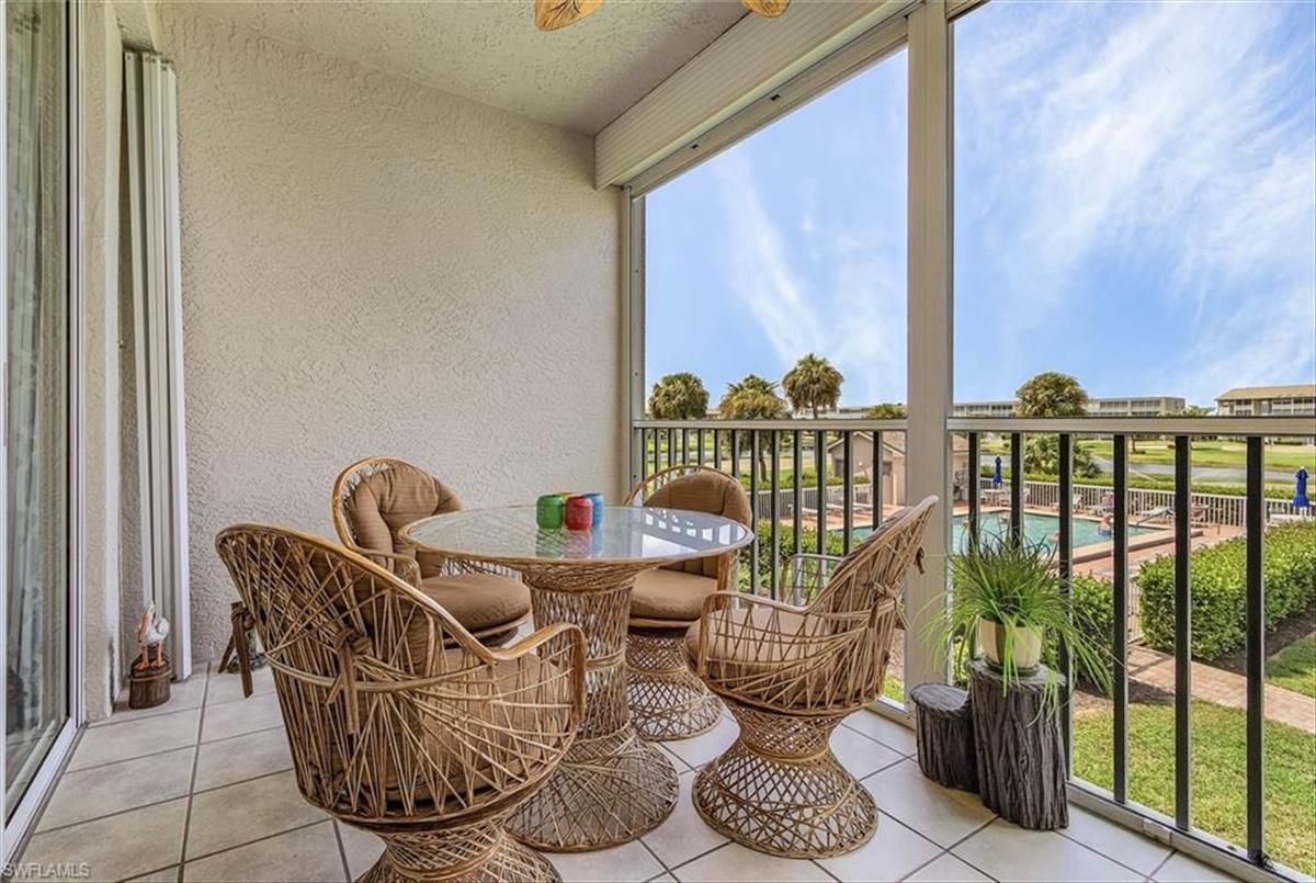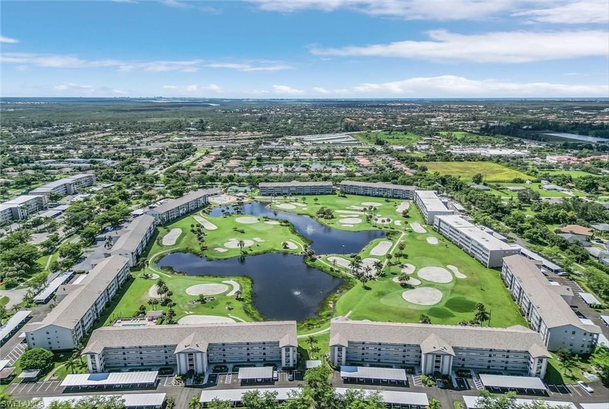 EXCEPTIONAL PRICE ON THIS 2ND FLOOR/3BR END/CORNER UNIT IN TURBERRY @ GOLFVIEW! Discover RESORT-STYLE living in this TURNKEY furnished & beautifully updated and appointed condo. The kitchen boasts wood cabinets with roll-outs, glass fronts, decorative wood ceiling, granite countertop, tile backsplash, undercabinet lighting, stainless steel appliances and more! The bamboo wood laminate flooring is throughout the kitchen, living and bedrooms. Furniture and decor is beachy/coastal. Extra windows allow in so much natural light. Master bedroom has high impact windows (2024) Tile can be found in the beautifully updated bathrooms. The view from your private, screened-in lanai is endless and overlooks the pool and the golf course; the vibrant sunsets are breathtaking! One assigned covered parking spot and extra storage is nearby.  Golfview is a bundled golf community with an recently renovated 9 hole par 3 course that is fun but challenging. Activities abound during season with lighted tennis & pickleball courts, shuffleboard, bocce, endless clubhouse gatherings and golf tournaments. Golfview is hidden gem in a fabulous location in SWFL. Only minutes away from FMB and Margaritaville and Sanibel & Captiva Beaches. Lakes Park is less than 1 mile away, BBMann PAH, world-class shopping and dining, houses of worship, medical facilities, library and more are short walks or quick drives. Reasonable HOA fees include cable, internet, water, sewer, golf, management, pest control, flood insurance, etc. New Parking structures and parking lot 2024. Strong financials. Agents, please see confidential remarks re: exclusions. Easy to show - click and go!