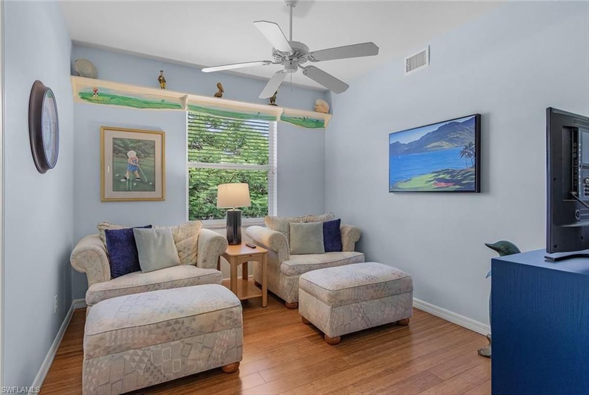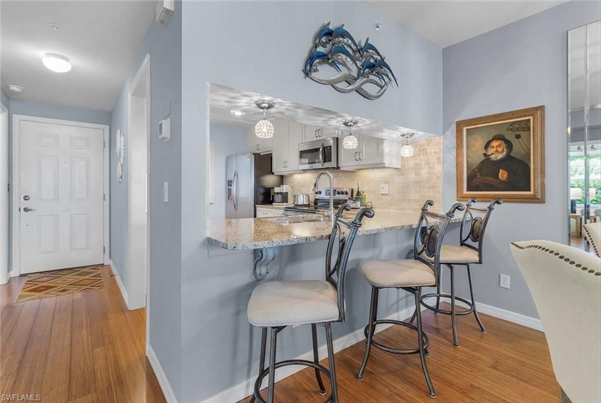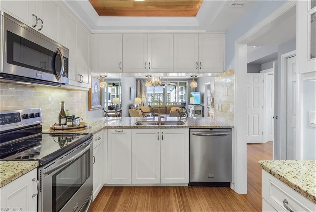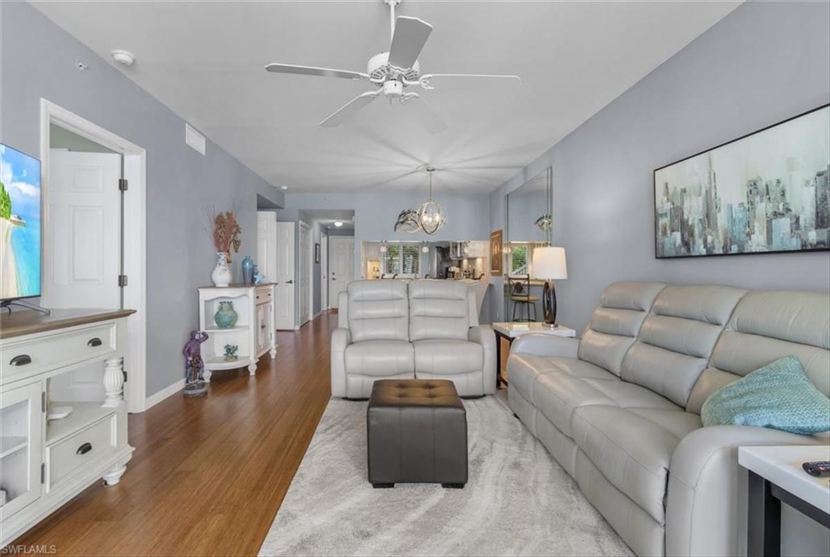 EXCEPTIONAL PRICE ON THIS 2ND FLOOR/3BR END/CORNER UNIT IN TURBERRY @ GOLFVIEW! Discover RESORT-STYLE living in this TURNKEY furnished & beautifully updated and appointed condo. The kitchen boasts wood cabinets with roll-outs, glass fronts, decorative wood ceiling, granite countertop, tile backsplash, undercabinet lighting, stainless steel appliances and more! The bamboo wood laminate flooring is throughout the kitchen, living and bedrooms. Furniture and decor is beachy/coastal. Extra windows allow in so much natural light. Master bedroom has high impact windows (2024) Tile can be found in the beautifully updated bathrooms. The view from your private, screened-in lanai is endless and overlooks the pool and the golf course; the vibrant sunsets are breathtaking! One assigned covered parking spot and extra storage is nearby.  Golfview is a bundled golf community with an recently renovated 9 hole par 3 course that is fun but challenging. Activities abound during season with lighted tennis & pickleball courts, shuffleboard, bocce, endless clubhouse gatherings and golf tournaments. Golfview is hidden gem in a fabulous location in SWFL. Only minutes away from FMB and Margaritaville and Sanibel & Captiva Beaches. Lakes Park is less than 1 mile away, BBMann PAH, world-class shopping and dining, houses of worship, medical facilities, library and more are short walks or quick drives. Reasonable HOA fees include cable, internet, water, sewer, golf, management, pest control, flood insurance, etc. New Parking structures and parking lot 2024. Strong financials. Agents, please see confidential remarks re: exclusions. Easy to show - click and go!