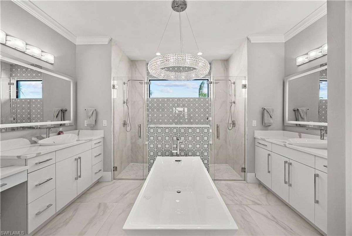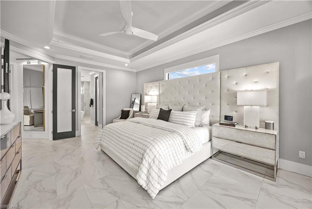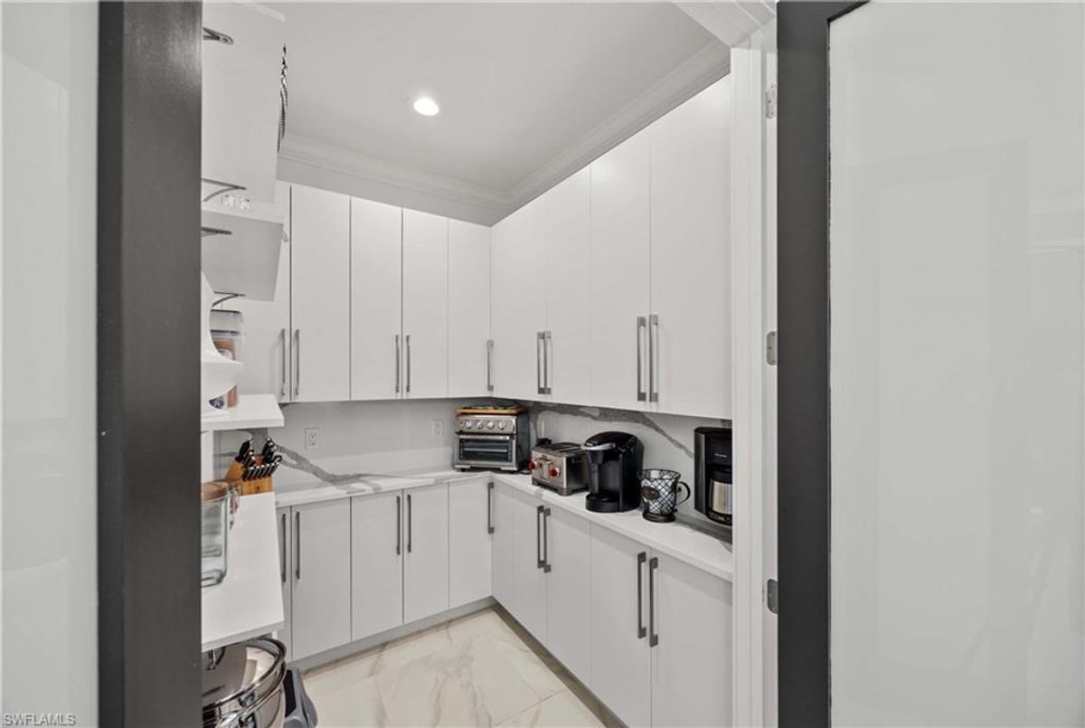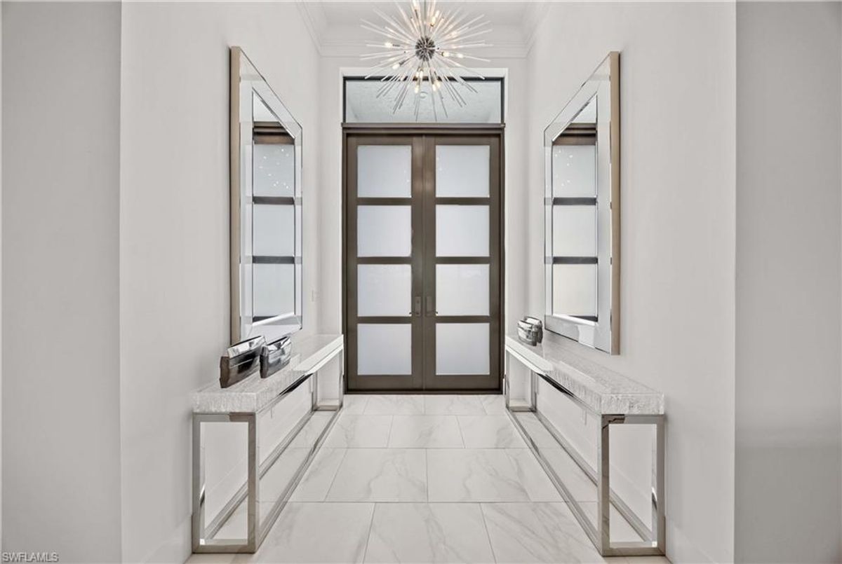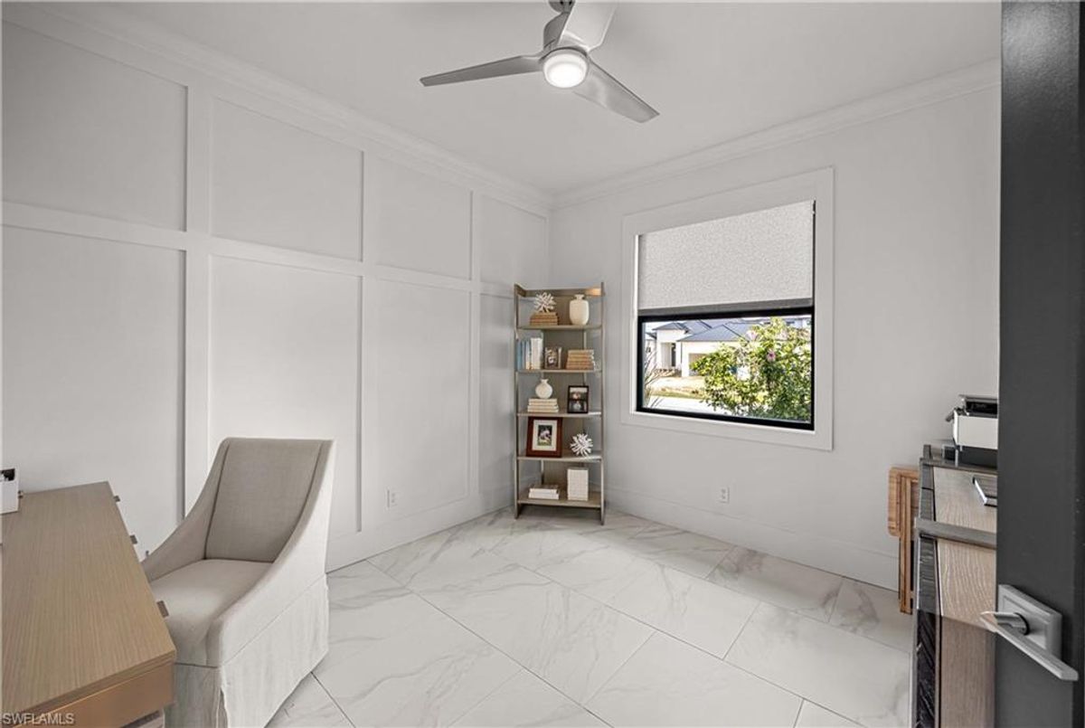 Located in the prestigious golf community of Cape Royal, this 2022 custom-built home showcases modern elegance and luxury at its finest.  Decorated with Bernhardt and Century furniture, mixed with exquisite lighting fixtures and distinctive artwork - each piece tastefully enhances the beauty of this home. Accented with QUARTZ COUNTERTOPS in the kitchen, bathrooms, laundry room and WALK-IN CHEF'S PANTRY, coupled with an oversized quartz waterfall kitchen island and white porcelain farmhouse sink, tie everything together. So many features included in this home: A 500 GALLON PROPANE TANK THAT OPERATES THE STOVE, OUTDOOR GRILL, HOT WATER TANK, POOL HEATER AND WHOLE HOUSE GENERAC GENERATOR. THE HALO 5 WATER SYSTEM, BRIDGEWOOD CABINETRY, THERMADOR APPLIANCES, DRY BAR, DESIGNER LED BATHROOM MIRRORS, OVER-SIZED CROWN MOLDING, BASEBOARDS AND TRIM ARE EXCEPTIONAL! CUSTOM CEILING DESIGNS, 90-DEGREE SLIDERS WITH CUSTOM REMOTE BLINDS IN EVERY ROOM AND A 72" ELECTRIC FIREPLACE CREATE A STUNNING AMBIANCE! The lanai boasts a CYPRESS WOOD CEILING, A full SUMMER KITCHEN WITH GAS GRILL, STORM SMART BLINDS, FULL CONCRETE POUR-UNDER PAVER POOL DECK, SUN SHELF AND PANORAMIC SCREENS to fully capture the golf course and water views! All HURRICANE IMPACT DOORS AND WINDOWS, TILE ROOF, 3-CAR GARAGE, INSULATED FLUSH PANEL GARAGE DOORS AND FLORATAM LAWN make this home truly astounding. ** This home is being sold FURNISHED **