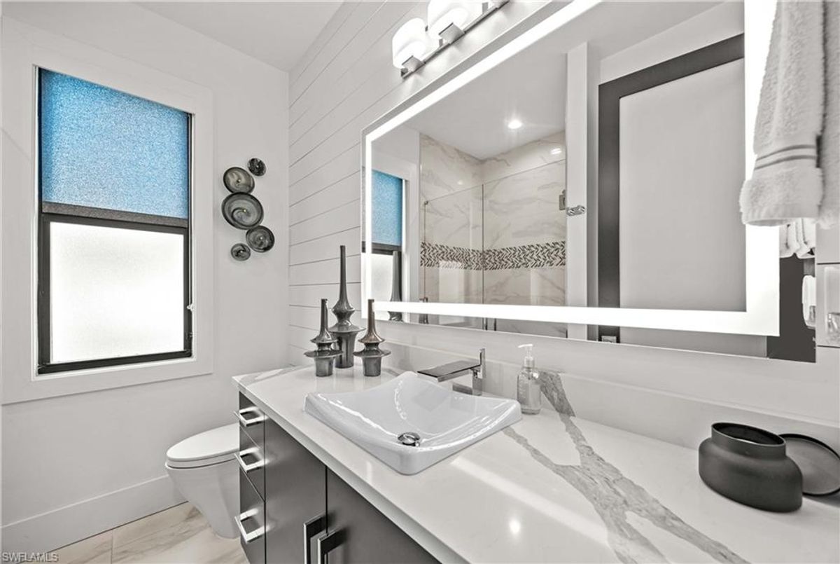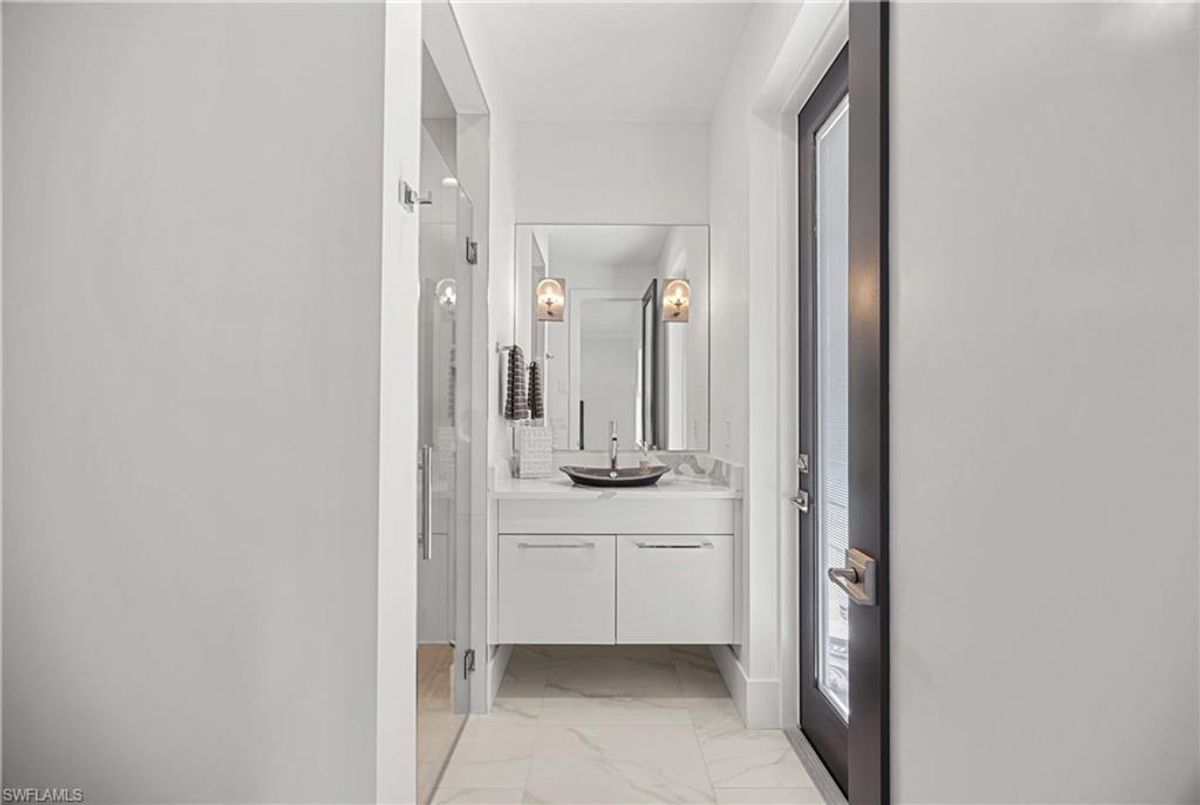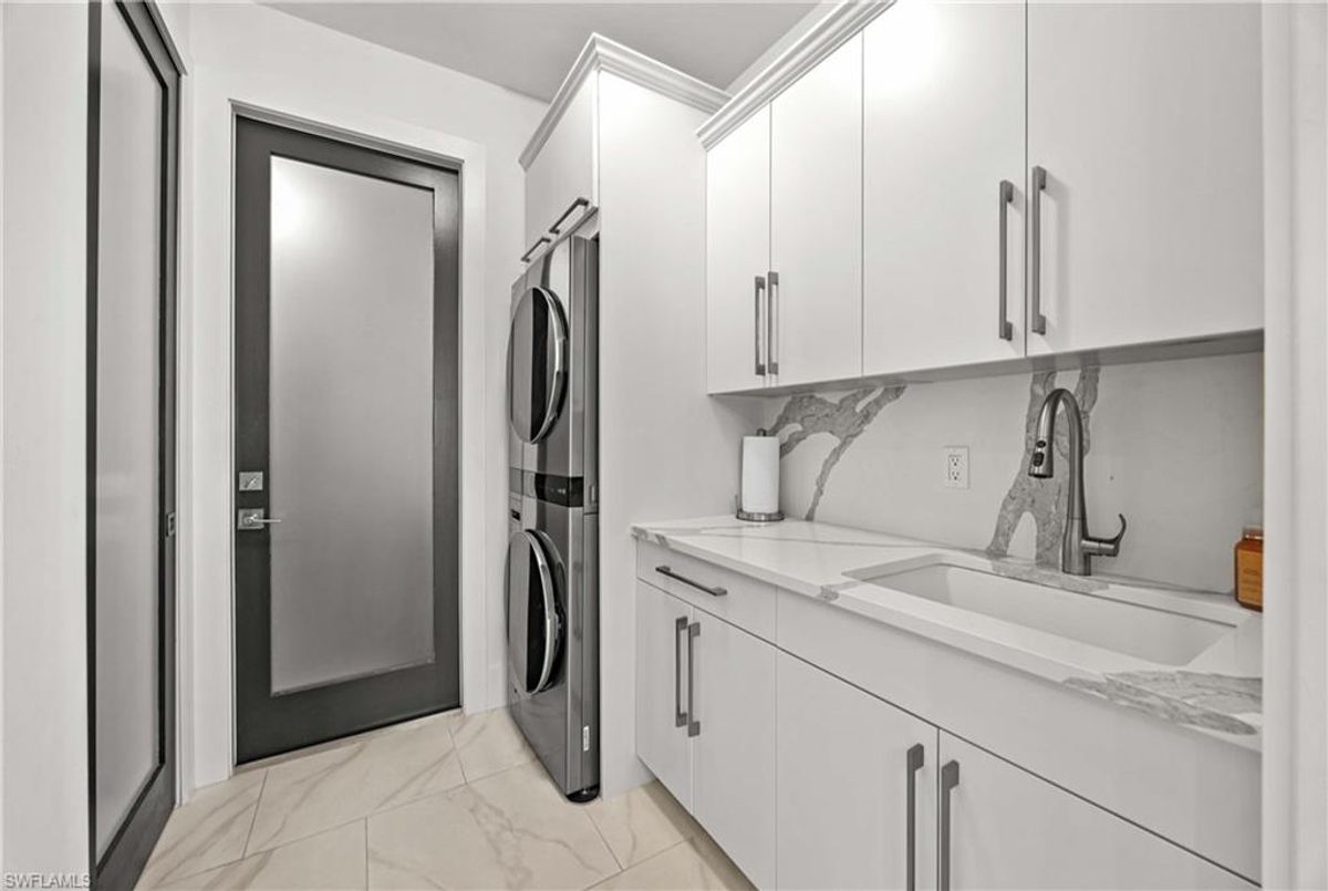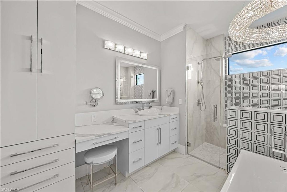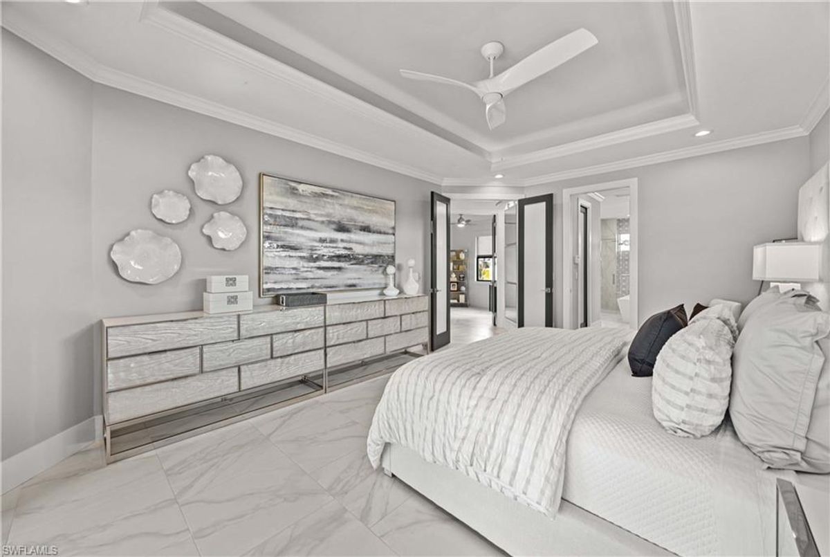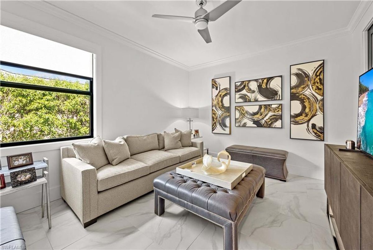 Located in the prestigious golf community of Cape Royal, this 2022 custom-built home showcases modern elegance and luxury at its finest.  Decorated with Bernhardt and Century furniture, mixed with exquisite lighting fixtures and distinctive artwork - each piece tastefully enhances the beauty of this home. Accented with QUARTZ COUNTERTOPS in the kitchen, bathrooms, laundry room and WALK-IN CHEF'S PANTRY, coupled with an oversized quartz waterfall kitchen island and white porcelain farmhouse sink, tie everything together. So many features included in this home: A 500 GALLON PROPANE TANK THAT OPERATES THE STOVE, OUTDOOR GRILL, HOT WATER TANK, POOL HEATER AND WHOLE HOUSE GENERAC GENERATOR. THE HALO 5 WATER SYSTEM, BRIDGEWOOD CABINETRY, THERMADOR APPLIANCES, DRY BAR, DESIGNER LED BATHROOM MIRRORS, OVER-SIZED CROWN MOLDING, BASEBOARDS AND TRIM ARE EXCEPTIONAL! CUSTOM CEILING DESIGNS, 90-DEGREE SLIDERS WITH CUSTOM REMOTE BLINDS IN EVERY ROOM AND A 72" ELECTRIC FIREPLACE CREATE A STUNNING AMBIANCE! The lanai boasts a CYPRESS WOOD CEILING, A full SUMMER KITCHEN WITH GAS GRILL, STORM SMART BLINDS, FULL CONCRETE POUR-UNDER PAVER POOL DECK, SUN SHELF AND PANORAMIC SCREENS to fully capture the golf course and water views! All HURRICANE IMPACT DOORS AND WINDOWS, TILE ROOF, 3-CAR GARAGE, INSULATED FLUSH PANEL GARAGE DOORS AND FLORATAM LAWN make this home truly astounding. ** This home is being sold FURNISHED **