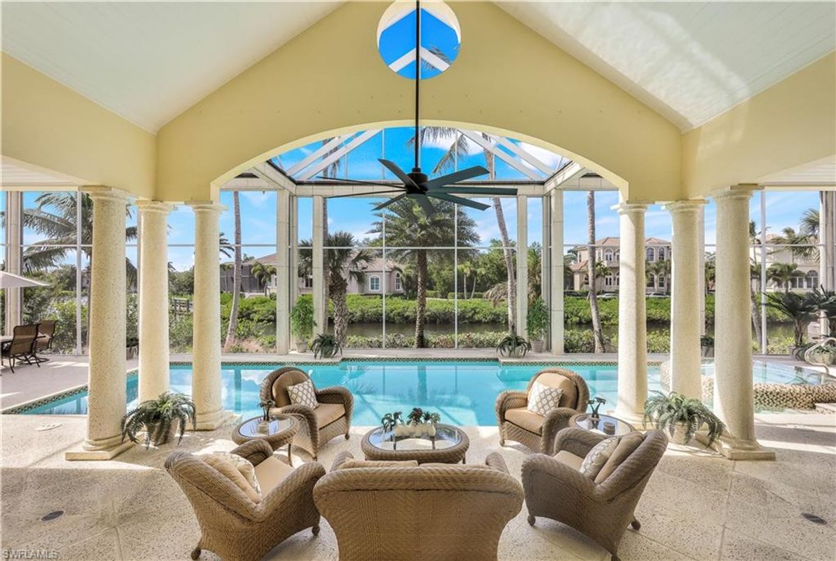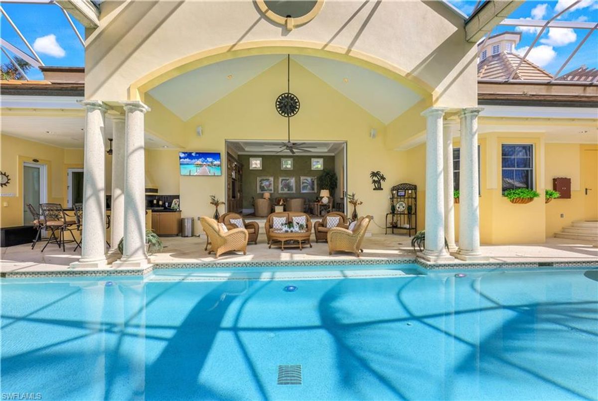 If you have enjoyed a boat ride from the Bonita Bay marina to the SWFL waterways, you have surely already fallen in love with this renowned home! Breathtaking with panoramic gulf views, this home is one of true distinction. Known as "Villa Windhaven" - this home offers many large spaces for family and friends to gather. There are also numerous intimate and private spaces where guests can relax and rejuvenate. This home is an exceptional masterpiece, set at the pinnacle of Marina Pointe at Bonita Bay, offering over 300 feet of pristine waterfront along the Imperial River leading directly to Estero Bay and the Gulf of Mexico. Positioned at the most western point of Marina Pointe Drive on a peaceful cul-de-sac, this home offers the ultimate in luxury waterfront living. The distinctive design is complemented by panoramic water views from nearly every room, creating a serene and captivating atmosphere. The second-floor guest suites, adjoined by more than 200 feet of luxurious living space, provide breathtaking views of the waterways. For added privacy, the guest cabana offers exclusive quarters, perfect for visitors or extended family. The property also boasts a private boat dock and lift, providing direct Gulf access, making Villa Windhaven the ultimate sanctuary for those seeking both elegance and effortless access to the natural beauty of Southwest Florida. The property also boasts beautifully renovated indoor and outdoor kitchens, ideal for dining and entertaining guests in style. In addition, the private boat dock, rebuilt in 2023 with a new boat lift and new lift motors, provides direct Gulf access, offering boaters convenience and waterfront enjoyment. This home truly captures the essence of refined living with added features like a wood-burning fireplace for cozy evenings and a private pool and spa (heated, with a pool bath). The new roof (2021) ensures peace of mind for years to come. Bonita Bay offers an array of exceptional amenities, including a private beach club, kayaking, canoeing, pickleball, tennis, and multiple community parks. Explore over 12 miles of walking and biking paths, or take advantage of the full-service marina and restaurant. Golf enthusiasts will appreciate the FIVE on-site courses, complemented by several dining options, a state-of-the-art fitness center, and more—all available with club membership (additional fees apply). Located just a short drive from world-class dining, shopping, beaches, and nature preserves, you’ll also enjoy easy access to the burgeoning downtown Bonita Springs and downtown Naples. RSW International Airport is conveniently nearby! This is a once in a lifetime opportunity to own one of Bonita Bay’s most iconic and exceptional properties. ...