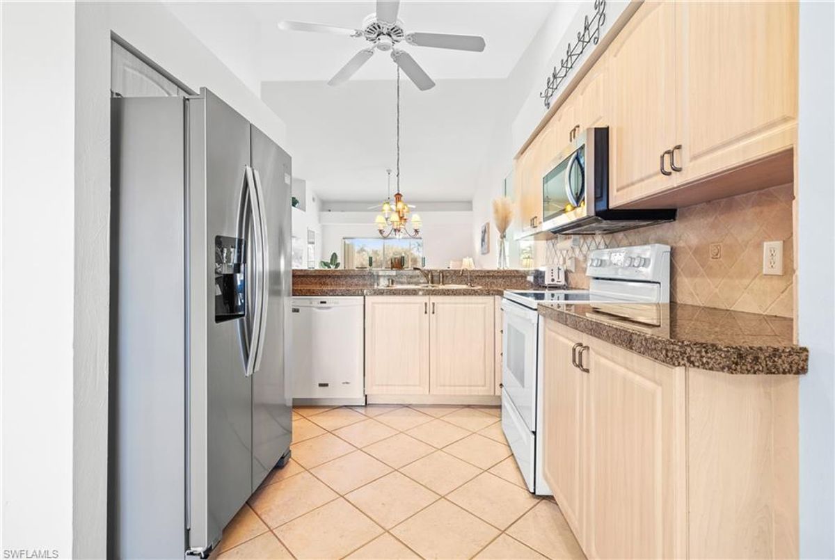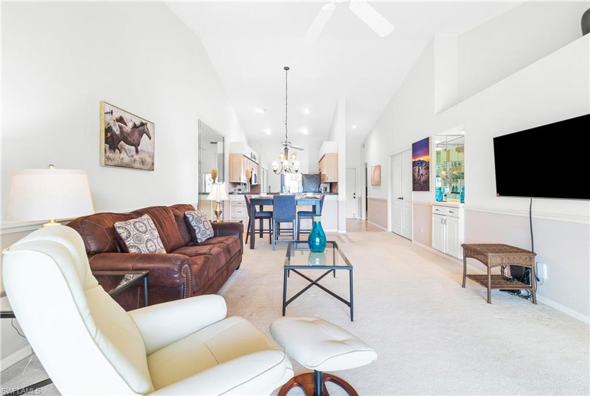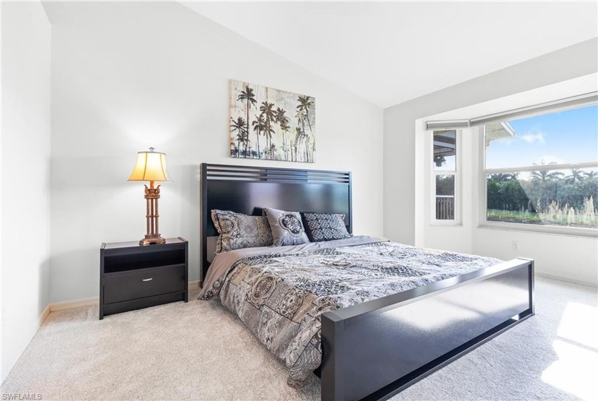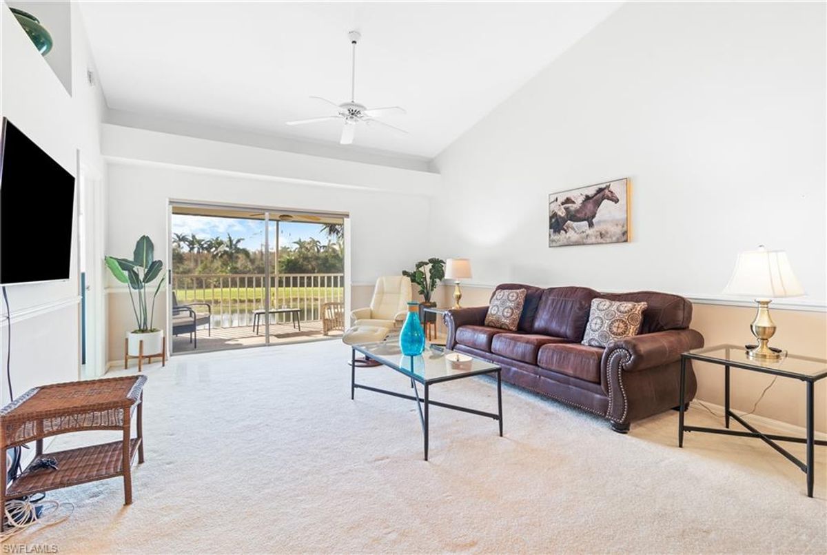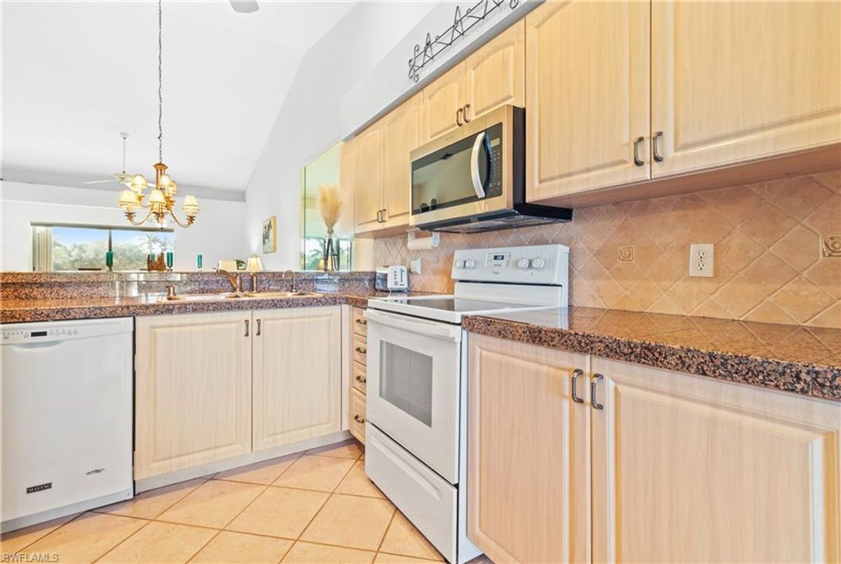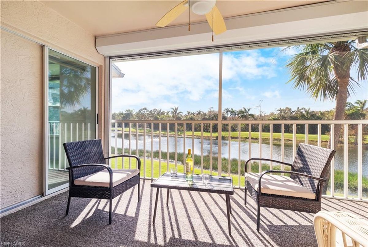 WATERVIEWS-WOODS-GARAGE-GOLF= Priced at only $200k's FURNISHED! MOTIVATED SELLER WILL CREDIT BUYER $1500 for closing costs with acceptable offer! Walking distance to the Hickory Ct POOL & not too far from the resort style community amenities. Sliding glass doors lead to two oversized screened-in lanais for enjoying paradise breezes (one with electric hurricane shutters). Serene sunsets & nature/lake views of both holes #7 & #8. Your garage is just steps away. "Move in condition" This 2 bedroom+DEN, 2 bath offers an open, breezy floorplan with vaulted ceilings & plant ledges. Owners retreat with waterviews offers new flooring & paint, 2 walk-in closets & 2nd full baths. Attractive kitchen with granite counters & dining area with plenty of storage. Updated: washer, dryer, A/C & some paint/flooring. Olde Hickory Golf and Country Club offers bundled golf & all homes come with a membership to enjoy all the privilages including a challenging 18 hole golfing on a well manicured course. Easy tee times to enjoy year-round. Beautiful, recently renovated clubhouse has a bar with tv's to enjoy all the games, beautiful air conditioned restaurant & open-air dining in the screened terrace. Fun social activities & clubs, state of the art fitness, pickleball, tennis, card room, large community pool. Off the beaten path, yet conveniently located to medical facilities, I-75, International airport, shopping, dining, Jetblue and Hammond Stadiums and the BEACHES! **CHECK OUT OLDE HICKORY WEBSITE: https://www.oldehickory.cc/