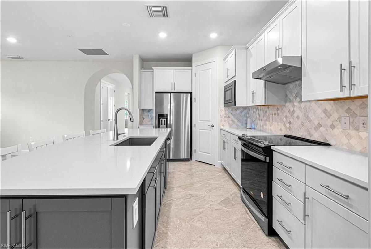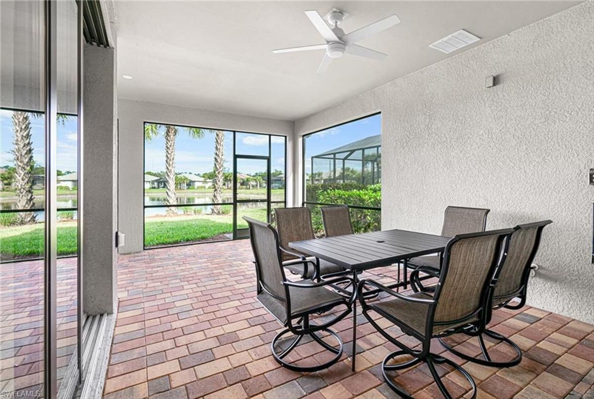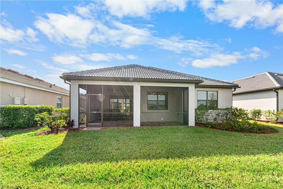 BRAND NEW GOLF CART INCLUDED!! Practically new, you will fall in love with this Summerwood model the moment you step through the front door. This stunning home boasts three spacious bedrooms, two full bathrooms, a private den/study, and a two car garage, all designed for comfort and style. The bright and open floor plan is perfect for entertaining, with a chef’s dream kitchen at its heart. Featuring two-toned shaker cabinets, quartz countertops, and a tile backsplash this kitchen is a culinary delight. Equipped with premium stainless steel appliances. The kitchen seamlessly flows into the living and dining areas, making gatherings with family and friends effortless. Retreat to your spacious primary bedroom, complete with a tray ceiling, large walk-in closet, and ensuite bathroom. The primary bathroom offers a luxurious experience with dual sinks and a large walk-in shower. Your guests will enjoy their privacy with well-appointed guest bedrooms located on the opposite side of the home, alongside a full guest bathroom. Need a versatile space? The den is ideal as an office or study and can easily be transformed into a fourth bedroom if needed. Step outside to the extended screened lanai and soak in breathtaking lake views—perfect for relaxing and enjoying Florida's beautiful weather. Additional upgrades include porcelain tile on the diagonal, upgraded carpeting in the bedrooms, Zero-corner sliding doors, spacious laundry room with laundry tub, and shiplap accent wall in the living room. Located in the highly desirable River Hall Country Club, a bundled golf course community featuring 18 holes of championship golf designed by Davis Love III. Other amenities include a lagoon style resort pool, cabanas, Bunker Tiki Bar, Caloosa Bar & Grill, two bocce courts, two Har-Tru tennis courts, four pickleball courts, fitness center, and fitness classes. Come experience everything this beautiful gated community has to offer - your new lifestyle awaits!