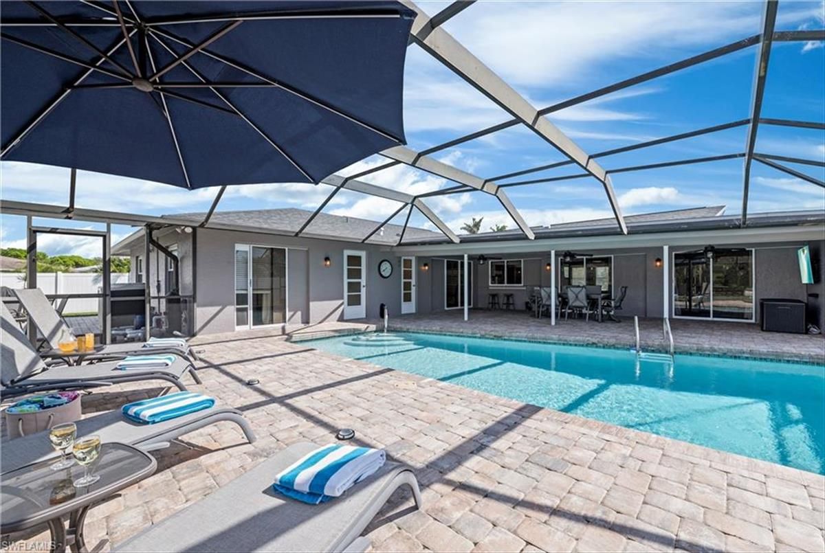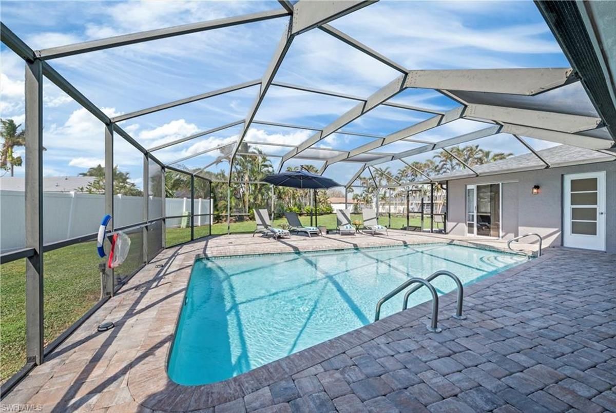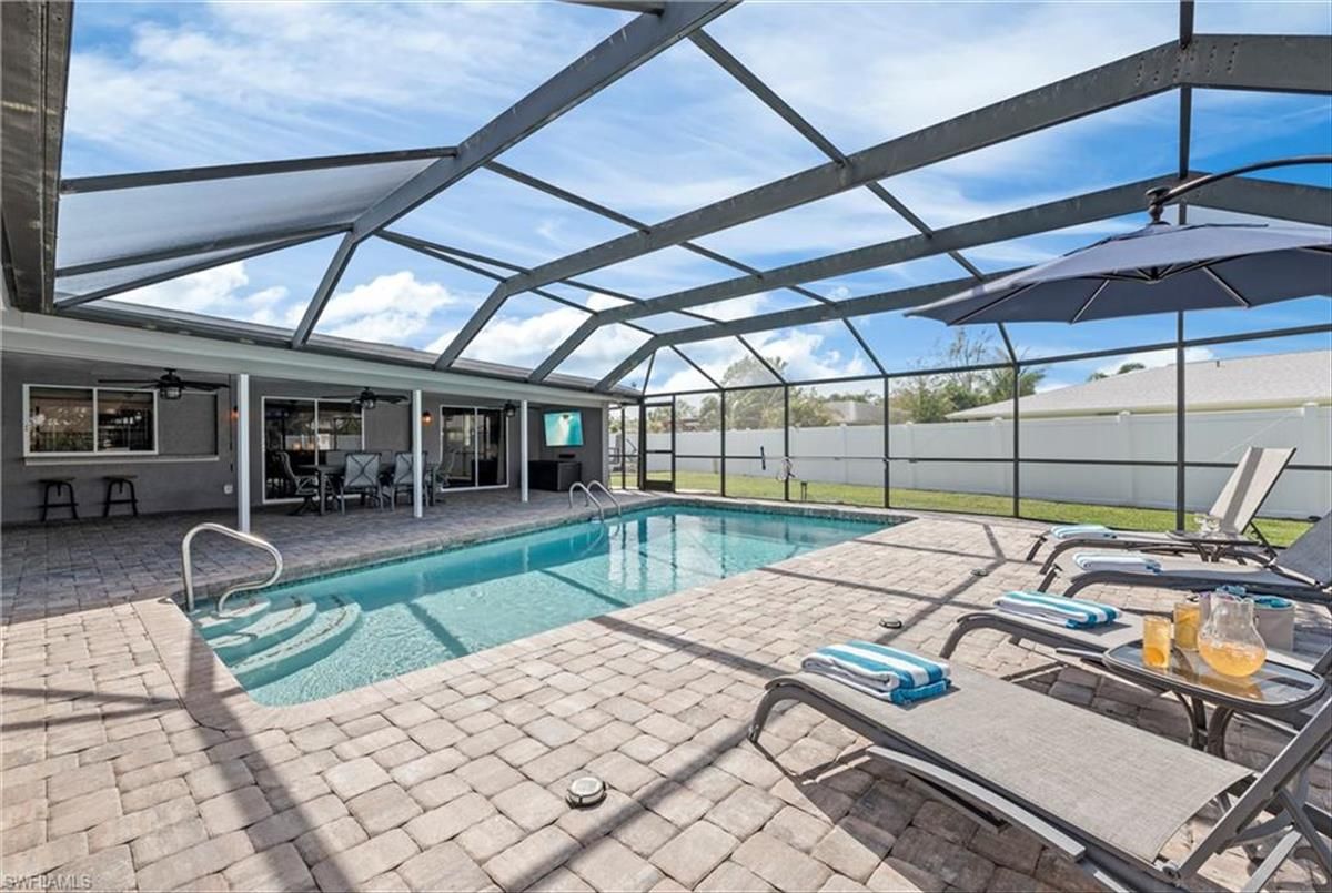 This home is a spacious 4 bedroom, 2-bathroom retreat, is ideal for those who enjoy extra room to spread out. It features two separate living areas, offering flexibility for entertaining or creating distinct relaxation spaces. An oversized two car garage provides ample parking and storage, while the large, fenced acre-sized lot ensures plenty of room for outdoor activities and privacy. The home boasts a sparkling pool, perfect for cooling off during warm days or hosting gatherings, and the surrounding land offers a serene, secluded atmosphere. The new beautifully paved pool deck creates a seamless outdoor living space that extends beyond the pool and wraps behind the house. A fresh concrete pad has been installed to store all your outdoor toys.Recent upgrades include impact windows that enhance energy efficiency and natural light, as well as a newer roof for peace of mind. Privacy abounds in this thoughtfully designed property, blending modern conveniences with tranquil outdoor living. Inside, plantation shutters give each room a timeless, sophisticated look while allowing you to control natural light with ease. The remodel has touched every corner of this home, making it feel fresh and contemporary while maintaining a sense of warmth. This property combines privacy, luxury, and functionality in a serene setting, perfect for both everyday living and hosting family and friends.