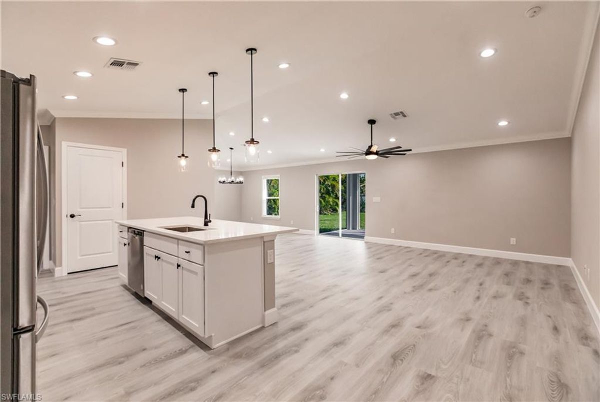 SYNERGY HOMES, a Better House a Better Value! This stunning new construction home has City Water & Sewer and is located in Cape Coral which has some of the highest ratings for quality of life, retirement, outdoor activities, and overall livability. The Cape ranks particularly high in terms of cost of living and safety. With a generous 1,809 square feet of living space, this 4-bedroom, 2-bath home is close to shopping, dining and has plenty of extra room to build a pool just outside your large 10x16 under-truss lanai. Lounge in your peaceful backyard behind your upscale vinyl privacy fence. Builder's preferred lender is currently offering 5.75 FHA with 3.5 down for 30 years fixed. Photos of pool have been virtually staged and do not represent the current standing of the property. This home also includes a generous 2-Car garage with epoxy flooring. ALL at a competitive price! Currently slated for completion in March 2025. Photos and virtual tour are of a similar home. Comes with a full Builders 2-10 warranty. Builder has other homes available at varying stages of completion.  Call us to set up a time to discuss options including color schemes and timeframe.