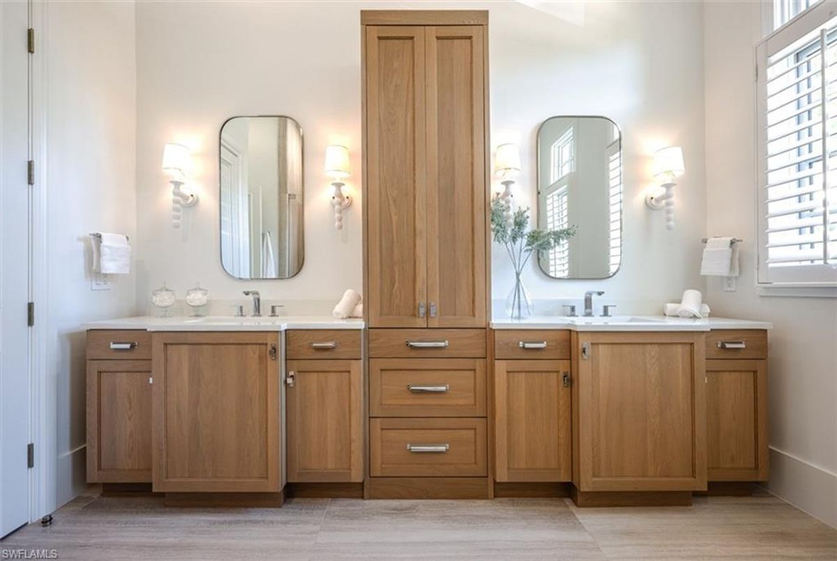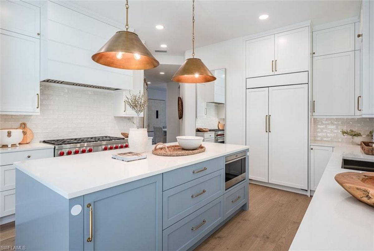 Experience the pinnacle of resort-style living in the highly sought-after Grey Oaks community with this breathtaking, fully updated 2-story residence in the exclusive Avila at Grey Oaks. Just a short walk from the clubhouse, community amenities, and engaging activities, this home combines luxury, comfort, and convenience in an unparalleled setting. The meticulously redesigned floor plan offers a seamless flow between the formal living room and the inviting family room, where abundant natural light pours through new hurricane-impact sliders, creating an atmosphere of warmth and sophistication. The open-concept design ensures an ideal space for both everyday living and entertaining. Step outside to the spacious screened lanai, where a newly renovated pool and spa with Southwestern exposure provide a tranquil oasis. The outdoor space is a true highlight, featuring elegant pavers, artificial turf, landscape lighting, and a beautifully refreshed landscape. An exquisite outdoor kitchen offers the perfect spot for al fresco dining, making this the ultimate retreat for relaxation and entertaining. The expansive master suite, along with a versatile 5th bedroom/den, is conveniently located on the first floor, providing privacy and convenience. Upstairs, three generously sized bedrooms offer ample space for family and guests. Every detail has been thoughtfully considered. Recent upgrades include two new A/C units, a tankless hot water heater, New plumbing, and new upgraded pool equipment, complete with new tile and finishes. Inside, the home boasts a chef’s kitchen with sleek new cabinets, hardware, countertops, backsplashes, and high-end Subzero and Wolf appliances. The bathrooms have been transformed with new plumbing fixtures, elegant tile work, and designer finishes, while new wood floors, custom trim, stylish light fixtures, LED lighting and a newly crafted staircase add sophistication throughout the home. Custom closet build-outs offer a refined touch and added storage space. At Grey Oaks Country Club, you’ll enjoy unparalleled amenities including 54 holes of championship golf, a newly renovated wellness center, a lagoon-style pool, tennis, pickleball, bocce, and gourmet dining options, all just minutes from downtown Naples' world-class shopping, fine dining, and pristine white sand beaches. This fully updated home offers the ultimate in luxury living—schedule a showing today to experience it for yourself.