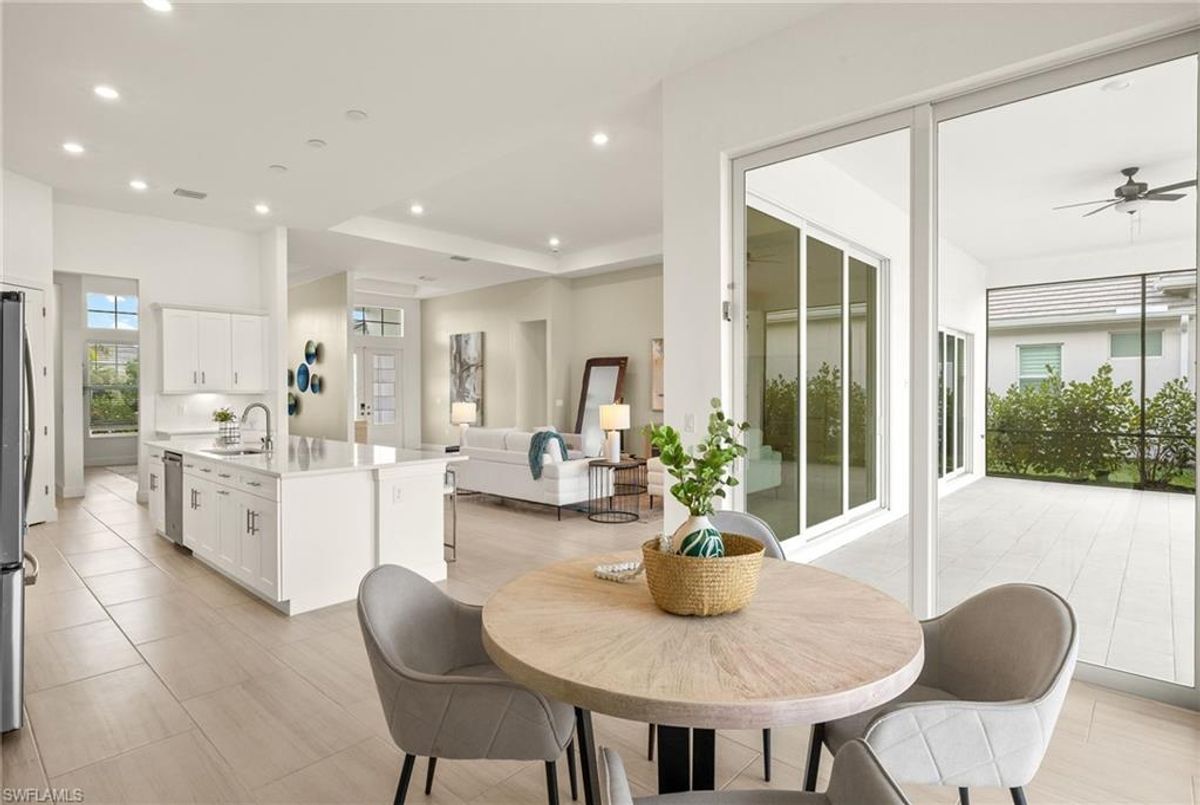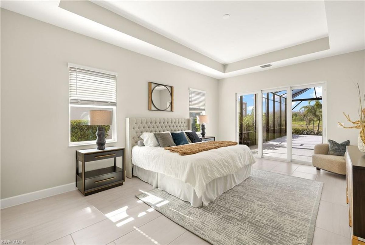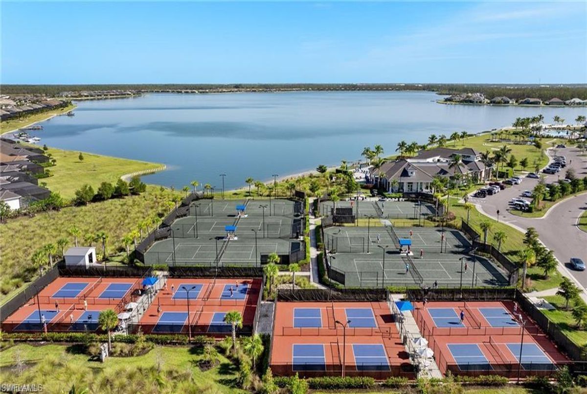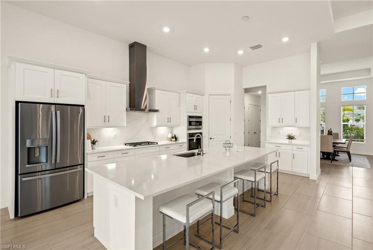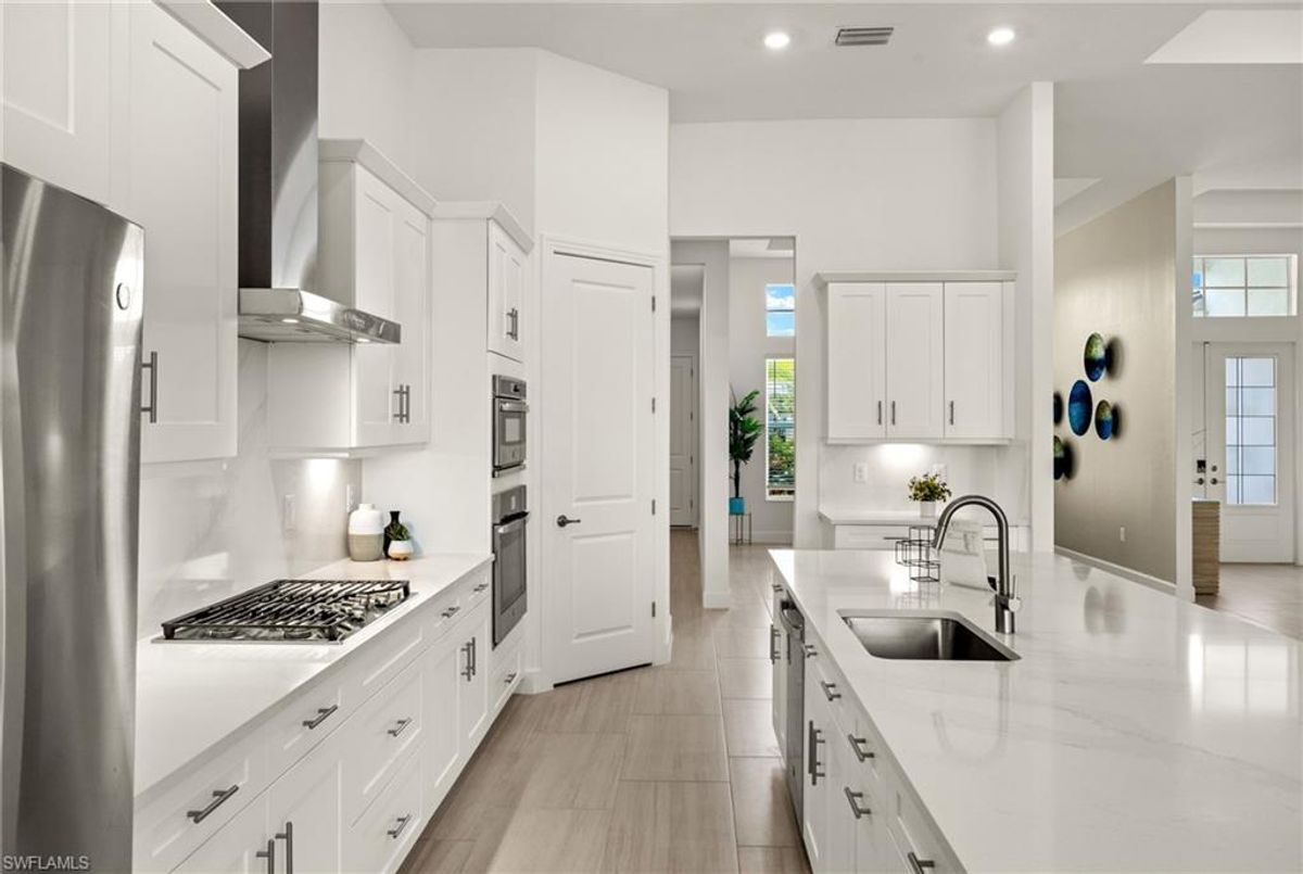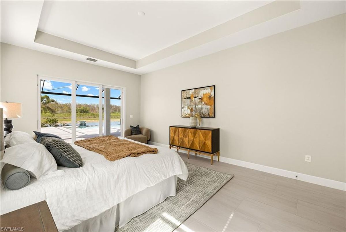 BEST PRICED and highly sought-after IRIS Model in absolute prime location! This new estate home features 4 spacious bedrooms, 3 baths, a 3-car garage - and a huge lanai! The waterfront residence has never been lived in and shows like a model, showcasing superior quality and numerous upgrades added by the owner. This home really stands out for its prime location and peacefulness. Enjoy the proximity - walking distance - to the incredible 20-acre amenity center boasting all you are looking for! This property is ideal for those that love expansive outdoor living, featuring an oversized 799-square-foot lanai and an open-concept design that seamlessly blend the great room, dining room, kitchen, and outdoor pool oasis. The pool deck offers a beautiful infinity pool and spa with breathtaking water features, an outdoor kitchen area, generous seating spaces, and spectacular views of the water and nature preserve. From the moment you enter, you will appreciate the spacious, open-concept layout and fresh, modern feel. The chef’s kitchen is equipped with a large island, soft-close cabinetry, modern white cabinets, high-end Calacatta Gold quartz countertops, stainless steel appliances, and a gas cooktop. Elegant large-format porcelain tile flooring extends throughout the home, adding a touch of sophistication. The owner’s suite offers a separate soaking tub and shower, dual sinks, two spacious walk-in closets, and more, while all guest bedrooms provide ample storage, large walk-in closets, and stylish modern bathrooms. World-class amenities and a vibrant, active lifestyle await in WildBlue, featuring over 800 acres of panoramic freshwater lakes, ideal for boating and water sports. The 20-acre amenity center includes a beautiful clubhouse with a large resort-style pool, indoor and outdoor restaurants, a pub, and a private sand beach. Additional amenities include a professional lap pool, full-service spa, top-notch fitness center, locker rooms with saunas, pickleball courts with an on-site pro and pro shop, a basketball court, bocce, a playground, and three boat ramps providing access to the pristine lakes. One of the many advantages of this property is its location in the lowest-risk flood zone in Lee County, offering peace of mind and insurance savings. A video tour is available to showcase this masterpiece, making it easy to fall in love with this exceptional home. EXCEPTIONAL PRICE, LOWEST FLOOD ZONE, BEST LOCATION IN WILDBLUE and MOVE-IN READY! ...