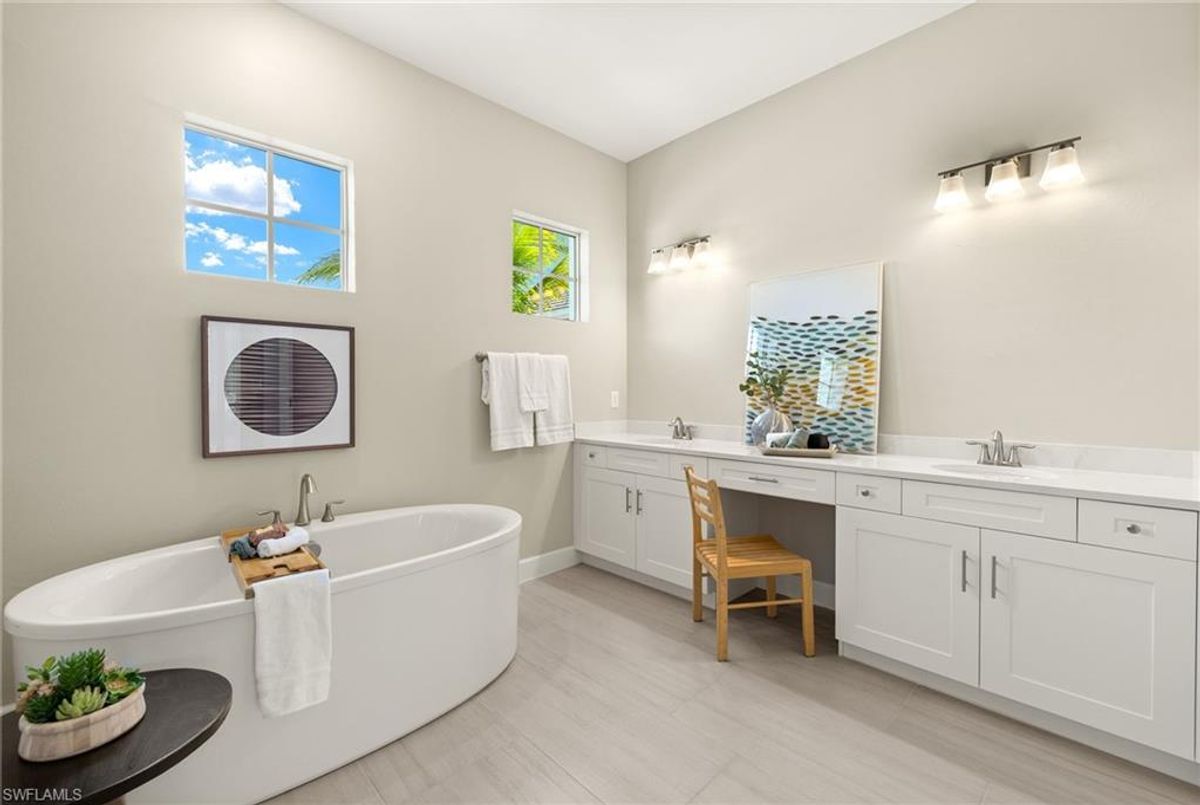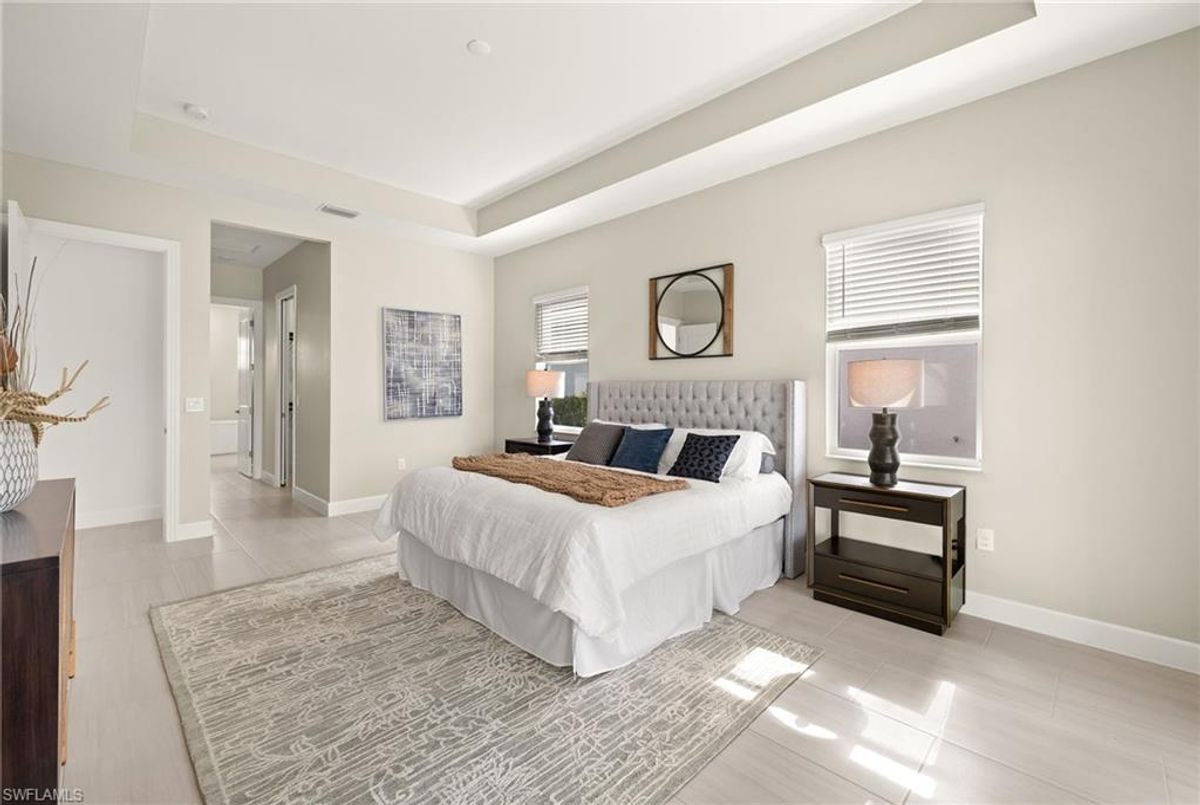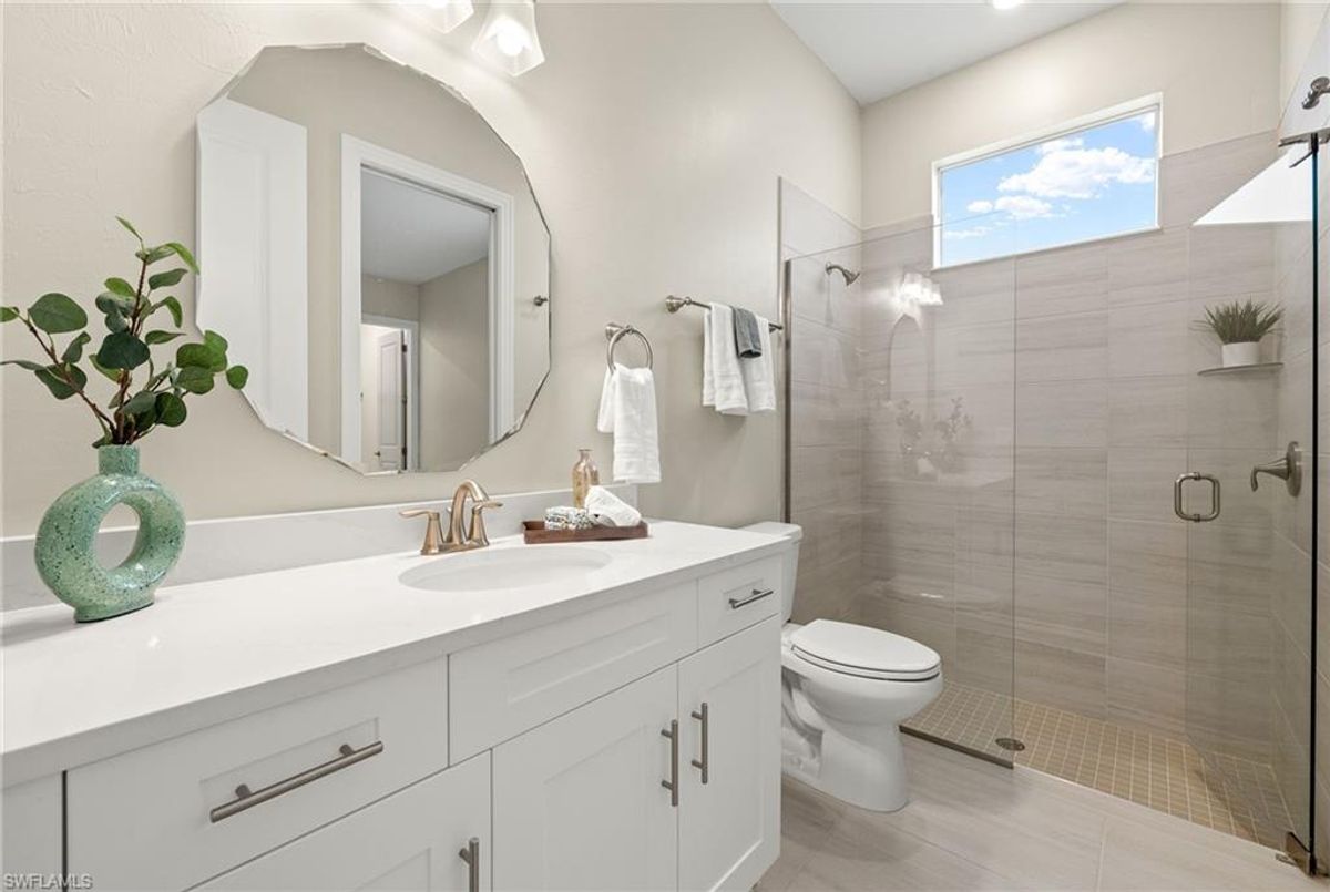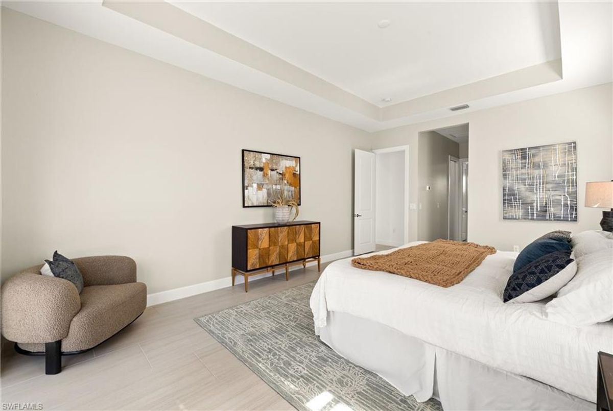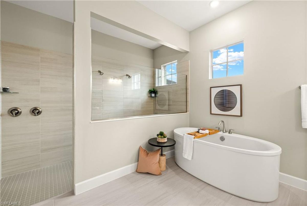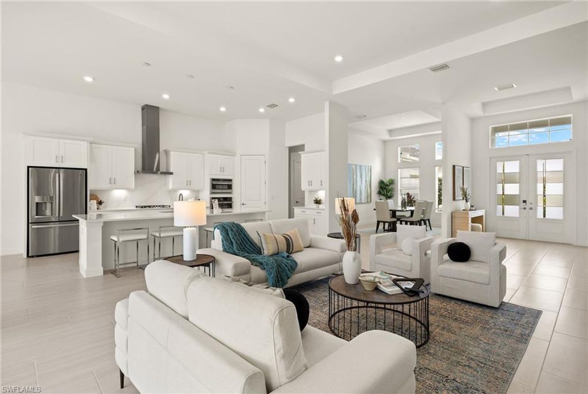 BEST PRICED and highly sought-after IRIS Model in absolute prime location! This new estate home features 4 spacious bedrooms, 3 baths, a 3-car garage - and a huge lanai! The waterfront residence has never been lived in and shows like a model, showcasing superior quality and numerous upgrades added by the owner. This home really stands out for its prime location and peacefulness. Enjoy the proximity - walking distance - to the incredible 20-acre amenity center boasting all you are looking for! This property is ideal for those that love expansive outdoor living, featuring an oversized 799-square-foot lanai and an open-concept design that seamlessly blend the great room, dining room, kitchen, and outdoor pool oasis. The pool deck offers a beautiful infinity pool and spa with breathtaking water features, an outdoor kitchen area, generous seating spaces, and spectacular views of the water and nature preserve. From the moment you enter, you will appreciate the spacious, open-concept layout and fresh, modern feel. The chef’s kitchen is equipped with a large island, soft-close cabinetry, modern white cabinets, high-end Calacatta Gold quartz countertops, stainless steel appliances, and a gas cooktop. Elegant large-format porcelain tile flooring extends throughout the home, adding a touch of sophistication. The owner’s suite offers a separate soaking tub and shower, dual sinks, two spacious walk-in closets, and more, while all guest bedrooms provide ample storage, large walk-in closets, and stylish modern bathrooms. World-class amenities and a vibrant, active lifestyle await in WildBlue, featuring over 800 acres of panoramic freshwater lakes, ideal for boating and water sports. The 20-acre amenity center includes a beautiful clubhouse with a large resort-style pool, indoor and outdoor restaurants, a pub, and a private sand beach. Additional amenities include a professional lap pool, full-service spa, top-notch fitness center, locker rooms with saunas, pickleball courts with an on-site pro and pro shop, a basketball court, bocce, a playground, and three boat ramps providing access to the pristine lakes. One of the many advantages of this property is its location in the lowest-risk flood zone in Lee County, offering peace of mind and insurance savings. A video tour is available to showcase this masterpiece, making it easy to fall in love with this exceptional home. EXCEPTIONAL PRICE, LOWEST FLOOD ZONE, BEST LOCATION IN WILDBLUE and MOVE-IN READY! ...