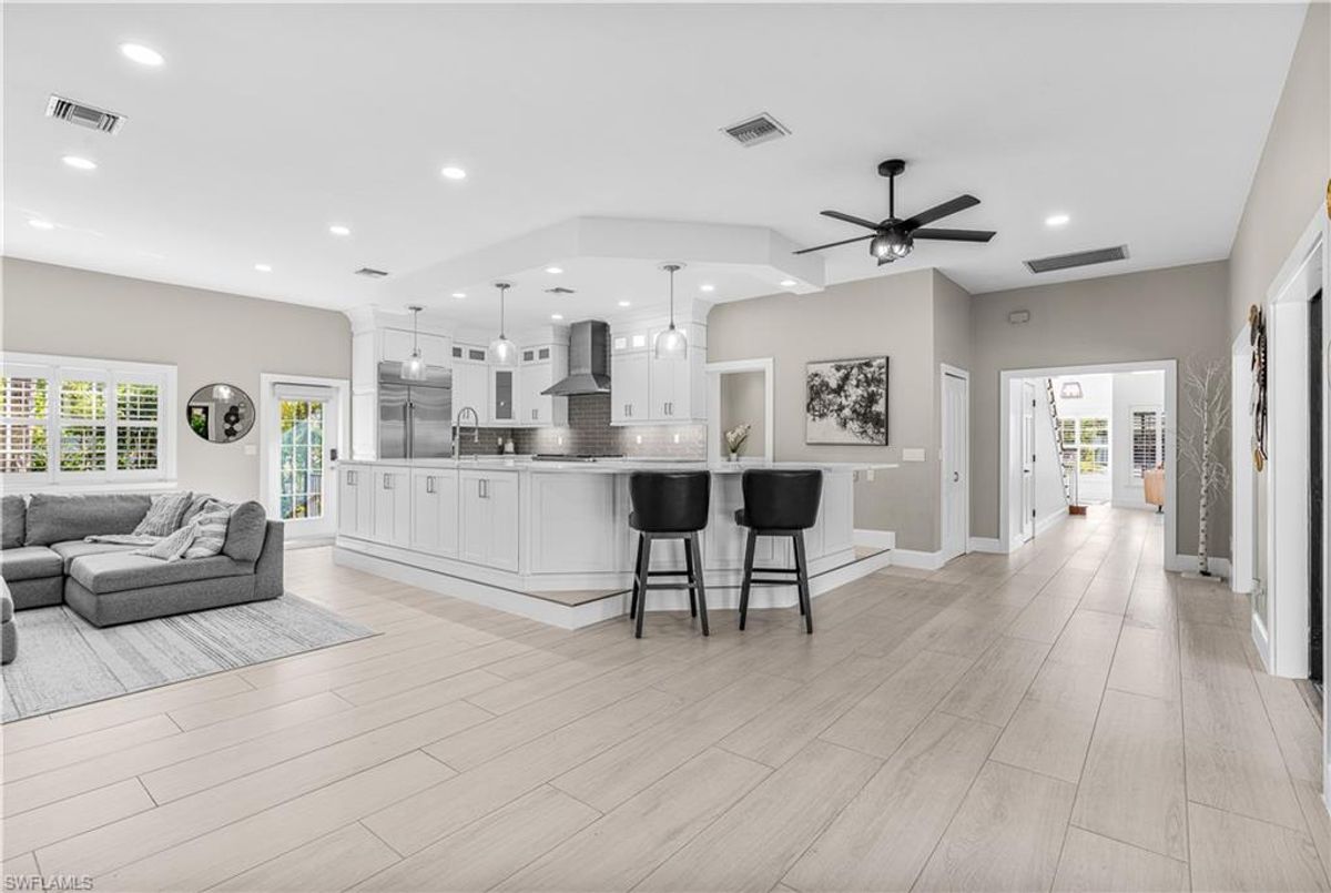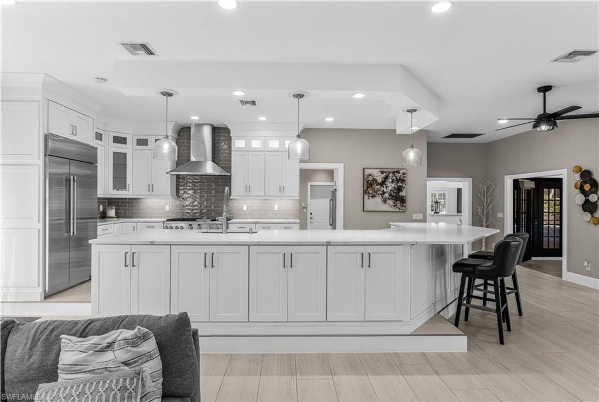 Dreaming of living under the palms of Historic McGregor BLVD? Just a short stroll from the Caloosahatchee River on prestigious Coconut Drive you will live the very best of the coveted SW Florida Old Fort Myers lifestyle with this 5 Bedroom 4 Full Bath nearly 3,800 SqFt home! You hear the words “ENTERTAINER’S DREAM” all the time but this home truly is the epitome of it. Awesome recently renovated kitchen with stunning quartz countertops, breakfast bar, High End GE Monogram appliances including GAS RANGE with double oven, plenty of cabinet space & huge BUTLER’S PANTRY with wine cooler, additional dishwasher, sink, refrigerator & oven perfect for large gatherings & holiday parties! The kitchen flows perfectly into the massive family room with fireplace while transitioning nicely to the outdoors with French Doors opening up to your newly renovated pool area with massive brick paver patio, luxurious pool bath & screened lanai…you will never want to leave your personal oasis under the sunshine & palm trees! More recent upgrades include stunning wood-like throughout the 1st floor, BRAND NEW ROOF (2023), LED lights, high end fixtures, & so much more! HIGH ELEVATION in X-Flood Zone so Flood Insurance is not required! 2 spacious bedrooms downstairs that share a bath plus 2 more spacious suites upstairs with Jack & Jill bathroom. Awesome master suite complete with huge shower & tub plus double sinks & massive walk-in closet. When not enjoying your personal paradise take a stroll to the end of the street to take in breathtaking sunrise & sunset views or walk down to Snell Park just a couple streets down! If you are sick of “cookie cutter” homes & love the SW Florida lifestyle & Old Florida Architecture there is no better place to bask in the sunshine than Coconut Drive! Schedule your showing today & get started living your best life under the Palms!