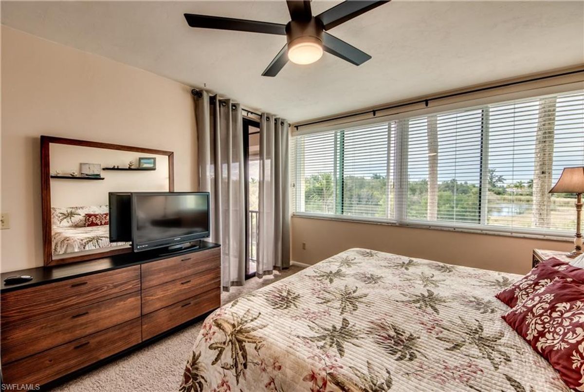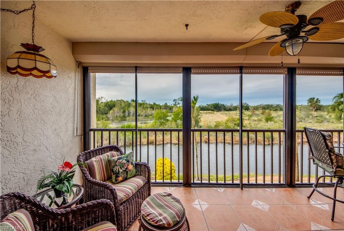 Calling all nature and wildlife enthusiasts spend your days in tranquility watching the wonderful landscape from your lanai that backs onto Lakes Park. Welcome to the Ashland at Lakeridge one of South Fort Myers best kept secrets, a superb location discreetly tucked away behind US41, you’ll never know your just minutes away from everything! This turnkey 2 bedroom 2 bathroom condo with den, flex room or potential 3rd bedroom has breathtaking views overlooking Lakes Park and affords the ability to enjoy beautiful sunsets .Relish in the tranquil setting and enjoy the onsite amenities ;heated pool , tennis, pickle ball, walking and biking trails , launch for kayaking , fishing deck with BBQ area, clubhouse with library, exercise room ,kitchen etc. This beautiful condo has some great features to enjoy; bright white cabinets and quartz countertops in kitchen and bathrooms , wet bar area off the dining room to serve up those sunset cocktails , inside laundry room with sink and extra cabinets, raised panel interior doors, crown molding, newer refrigerator, ceiling fans, smart thermostat, impact windows in bedrooms and electric shutters on lanai . Come and take a look today or check out the virtual tour and drone footage ! You will instantly discover the beauty and wonderful lifestyle the Ashland has to offer.