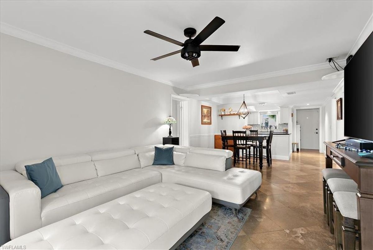 Nestled in a highly sought-after area, this beautifully maintained 4-bedroom, 2-bathroom condo offers the perfect blend of comfort and convenience. Just under 7 miles from the stunning Gulf Coast beaches and the vibrant charm of 5th Avenue and 3rd Street South, you'll enjoy easy access to some of the best shopping, dining, and entertainment the area has to offer. Four Fountains is surrounded by trendy local favorites, serene parks, and convenient shopping plazas, making everyday life a breeze. Inside, this condo features a versatile fourth bedroom, ideal for accommodating guests, setting up a home office, or transforming it into your own personal gym. The inviting interior is full of character, with crown molding, tray ceilings, and elegant plantation shutters, creating a warm and welcoming ambiance. The open layout allows for effortless entertaining, and the spacious bedrooms ensure comfort for everyone. A rare find, the extended single-car garage provides extra storage space for beach gear, bikes, or other essentials. The community itself is rich with amenities, including a heated pool for year-round relaxation, a well-appointed clubhouse for gatherings, a billiards room for friendly competition, plus tennis courts and shuffleboard for outdoor fun. This hidden gem offers everything you need for the perfect Southwest Florida lifestyle.