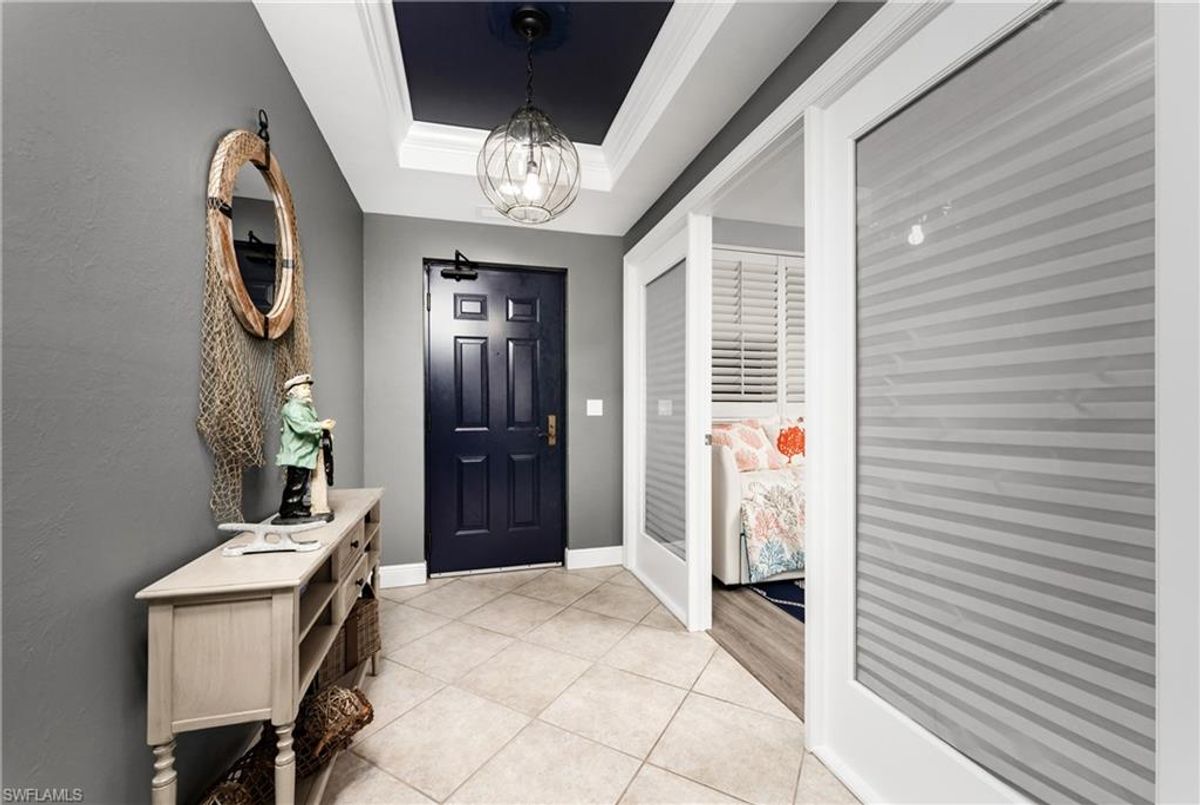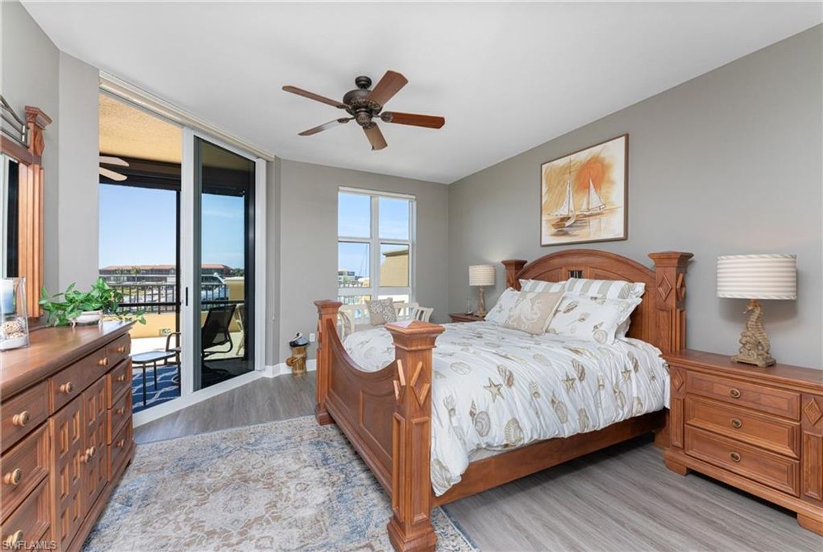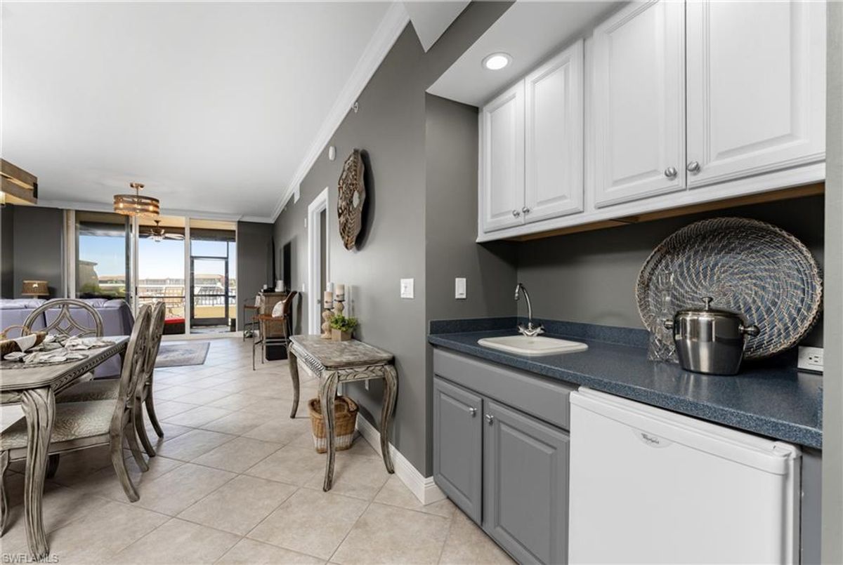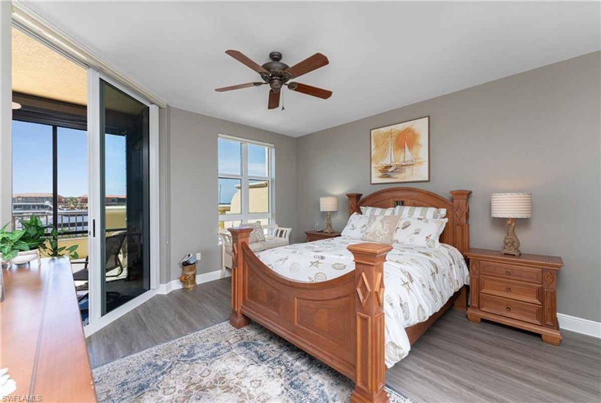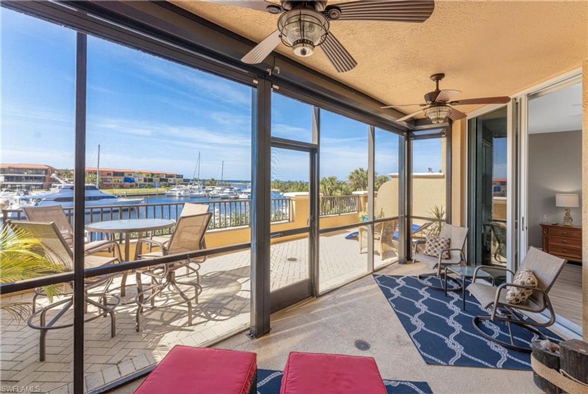 The Epitome of Marina Front Living awaits! This unique condo boasts a location like no other, with a spectacular open-air balcony perched above the marina and overlooks the marina’s main channel entrance. Talk about front row seats to the daily boat parade… the excitement of watching boats sail in and out will never fade. The screened lanai is a wonderful lounging option when you want to get out of the sun. This waterfront oasis is offered turnkey-furnished and welcomes you with tasteful coastal decor that effortlessly captures the essence of seaside living. As you enter the main living space, you’ll notice the diamond-set tile flooring leading you into the main living space, where crown molding finishes off the freshly painted interior. The open kitchen features a wide breakfast bar, two-tone cabinetry, a cooktop stove, and a built-in oven - making it a hub for social gatherings. From this vantage point, you'll witness the ebb and flow of boats, creating a picturesque backdrop that's exclusive to first-floor residences. In addition to the captivating views, this home offers remote-controlled Kevlar storm shutters, plus impact doors and windows, ensuring both safety and peace of mind during stormy weather. New wide luxury vinyl plank flooring was added to the bedrooms, while plantation shutters adorn the guest wing, offering privacy and style. The master bedroom provides sweeping views of the marina through sliding doors and windows, creating a serene retreat. The master bath features dual sinks, a garden bath, and a frameless shower, epitomizing luxury and relaxation. The two guest bedrooms, well-appointed bathroom, and utility room, provide both comfort and convenience for family and friends. From the thoughtful fixtures to the impeccable coastal decor, every detail of this Grande Isle gem invites you to experience the essence of waterfront living. The resort-style amenities are like no other in the community, where residents enjoy access to an Olympic-sized swimming pool and spa, fitness center, theater room, grilling area, steam and sauna rooms, and a grand salon. Come for the lifestyle…stay for life. Room Feature: Linen Closet In Bath (Primary Bedroom).